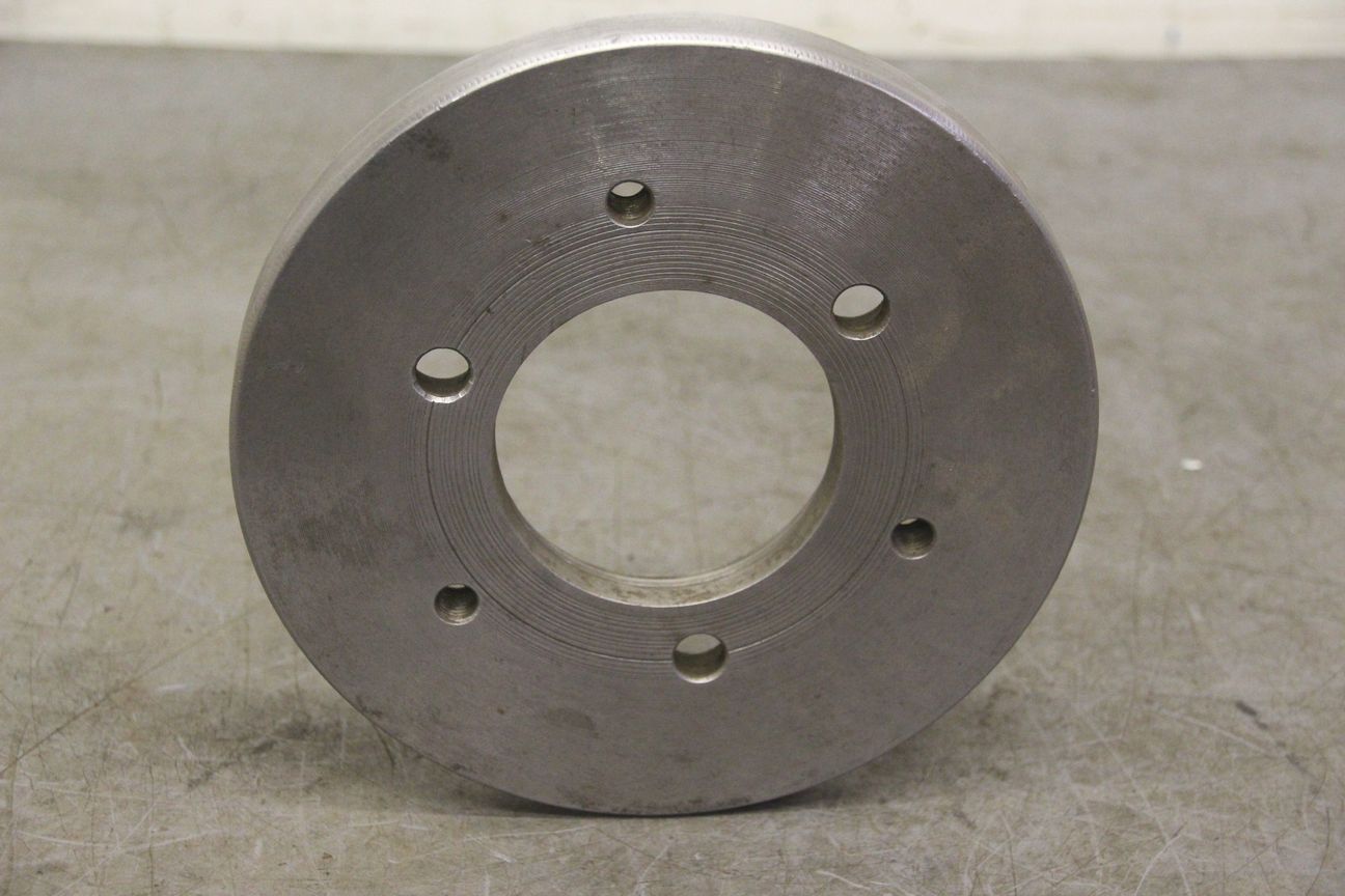 Three-jaw chuck, three-jaw lathe chuck -Three-jaw chuck: from a Meuselwitz lathe, chuck size 315 mm diameter -Passage: Ø 103 mm / Cone Ø 120 mm -Bolt circle: Ø 190 mm -Weight: 49 kg