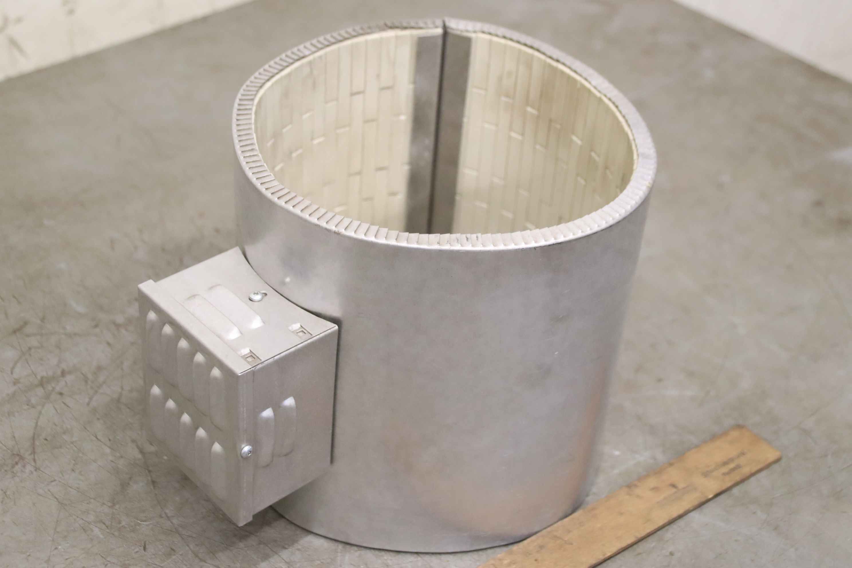 Tubular heater, heating tape, heating sleeve, mica heater, cylinder heater, heating cylinder, ceramic heating tape-Manufacturer: Erge, heating tape heating sleeve-Type: Ø200 x 210 mm-Item no.: 843 329 65-Heating power: 7000 W-Voltage: 230-400V-Dimensions: 285/215/H185 mm-Weight: 3.4 kg
