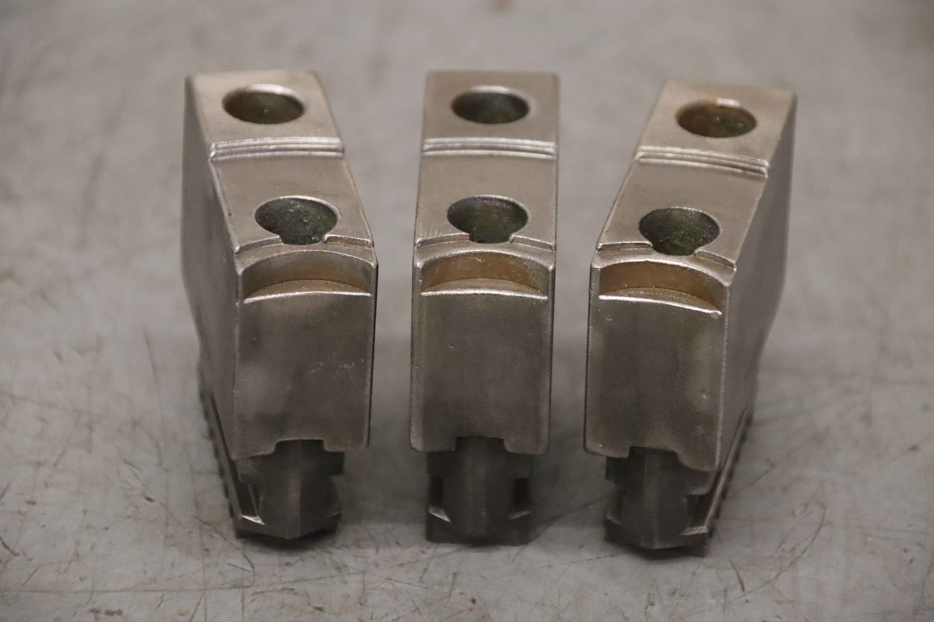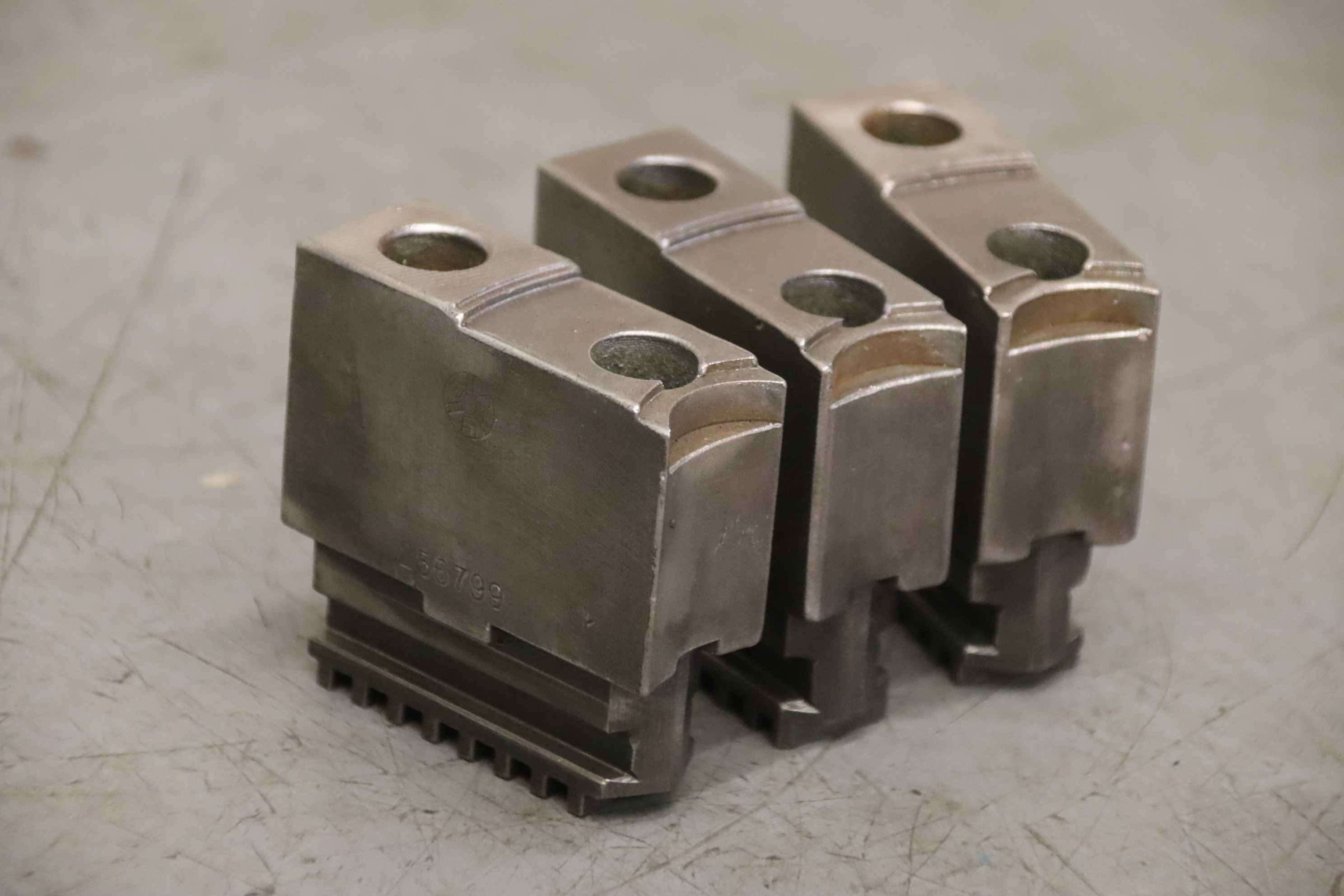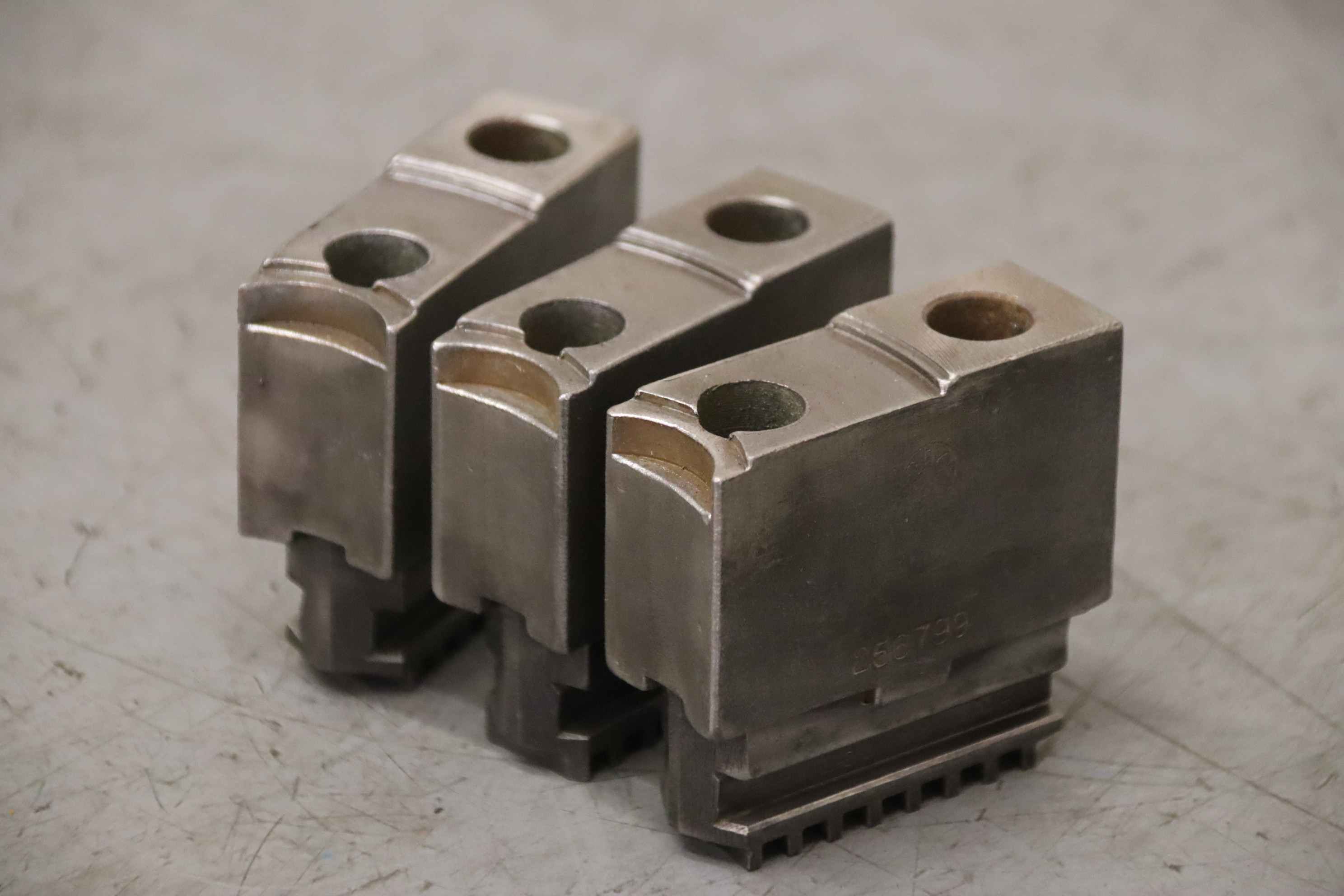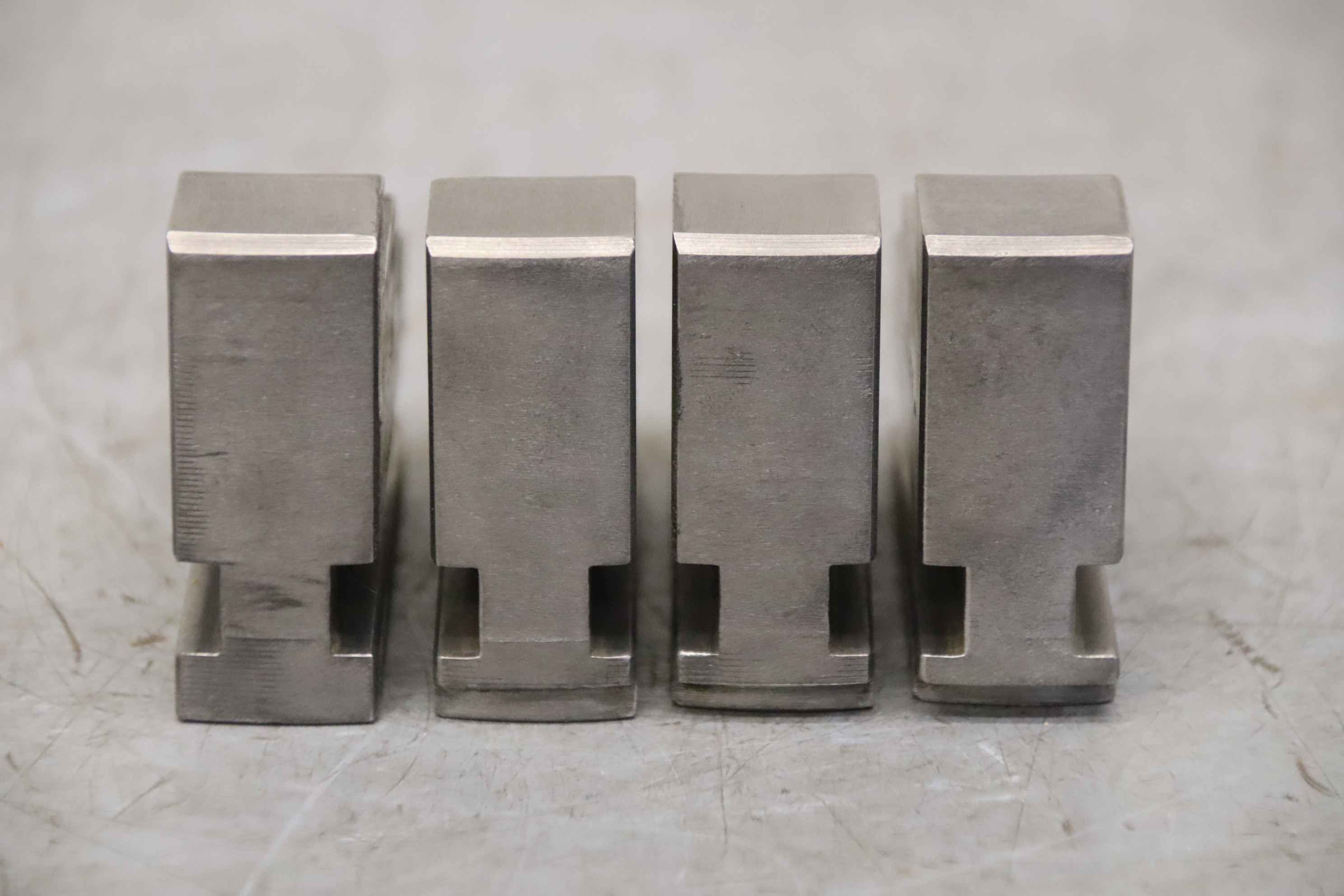 Interchangeable jaws, top jaws, three-jaw chucks, segment jaws, clamping jaws, step block jaws, step top jaws, block jaws, base jaws, 4-jaw set-Top jaws: 4-piece hard rotating jaw set-Jaw width: 21 mm-Dimensions: see photo technical. drawing-Quantity: 2 sets of interchangeable jaws available-Price: per set-Total dimensions: 76/85/H53 mm / 77/85/H51 mm-Total weight: 1.6 kg / 1.5 kg