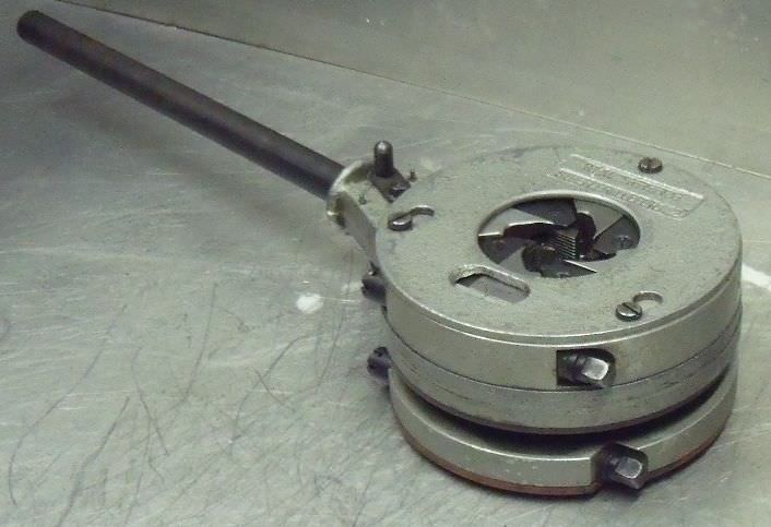 Thread cutting head with Strehler jaws, thread cutting die, thread cutting machine, pipe thread cutter, cutting head, bolt cutting head -Manufacturer: Ridgid, Thread cutting head model 5008 -Pipe size: 1/4 to 1 -built-in cutting jaws: 1 -Dimensions: 190/240/H75 mm -Weight: 3.4 kg