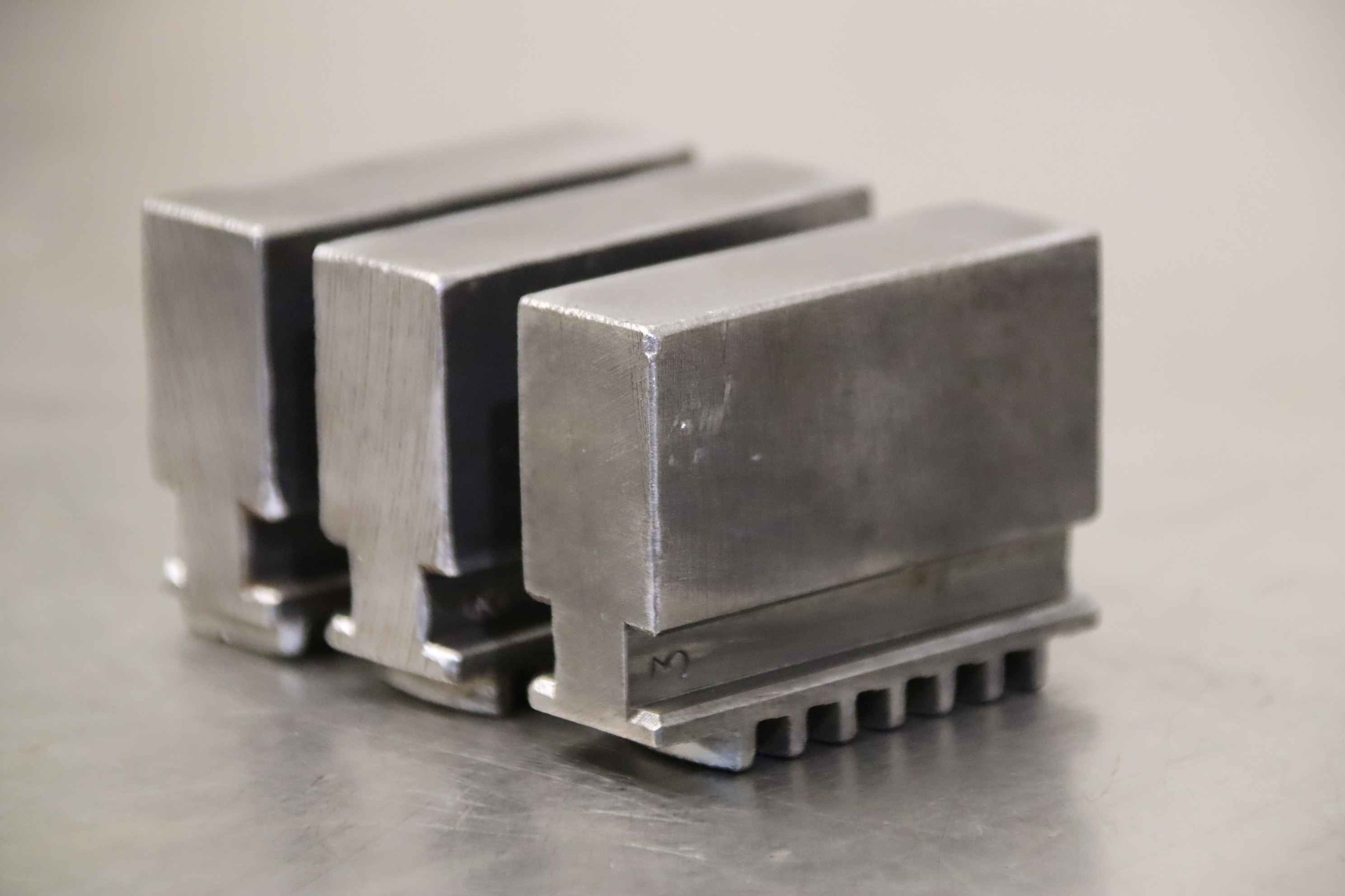 Interchangeable jaws, top jaws, three-jaw chucks, segment jaws, clamping jaws, stepped block jaws, stepped top jaws, block jaws-Interchangeable jaws: 3-piece soft top jaw set-Width: 20 mm-Dimensions total: 84/63/H38 mm-Total weight: 1.1 kg