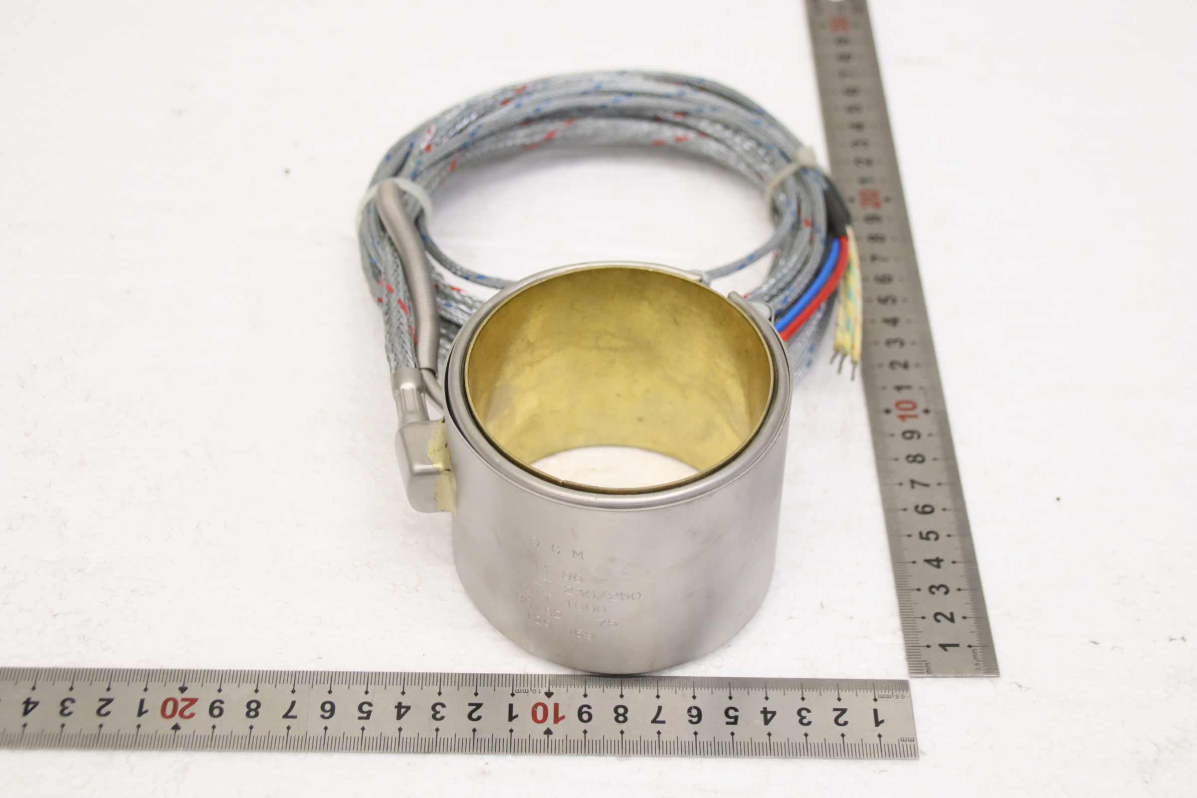 Tubular heater, heating tape, heating sleeve, mica heater, cylinder heater, heating cylinder, ceramic heating tape -Manufacturer: Erge, heating tape, heating sleeve -Type: 80/82 Ø 75 -Item No.: 129 069 -Heating power: 1000 W -Voltage: 220 V -Quantity: 1x heating cable included -Transport dimensions: 250/160/H80 mm -Weight: 1.2 kg