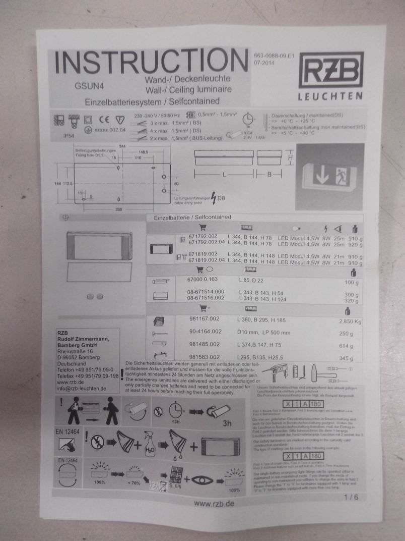 Emergency exit sign, escape route light, emergency and escape route lighting, emergency lights, escape routes, emergency lighting -Dimensions: 340/140/H80 mm -Connection: 230 V -Number: 1x light available -Weight: 1.0 kg