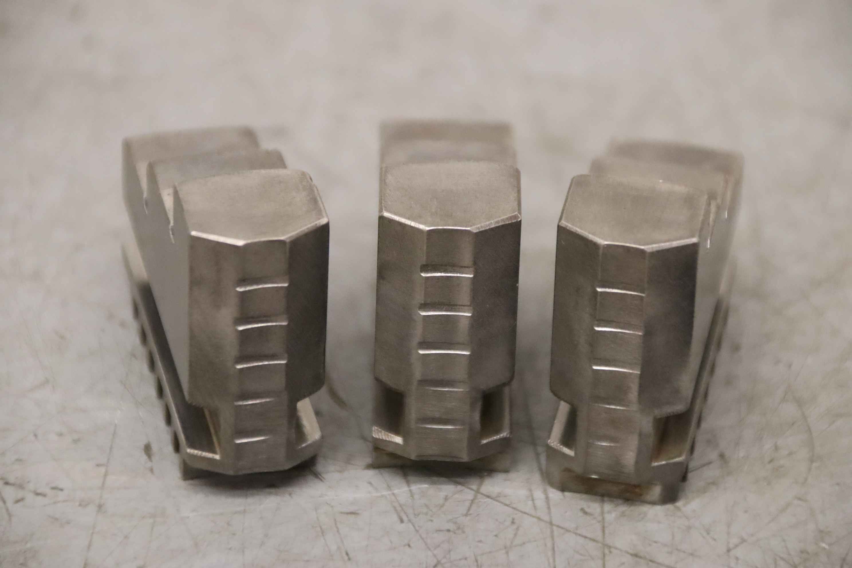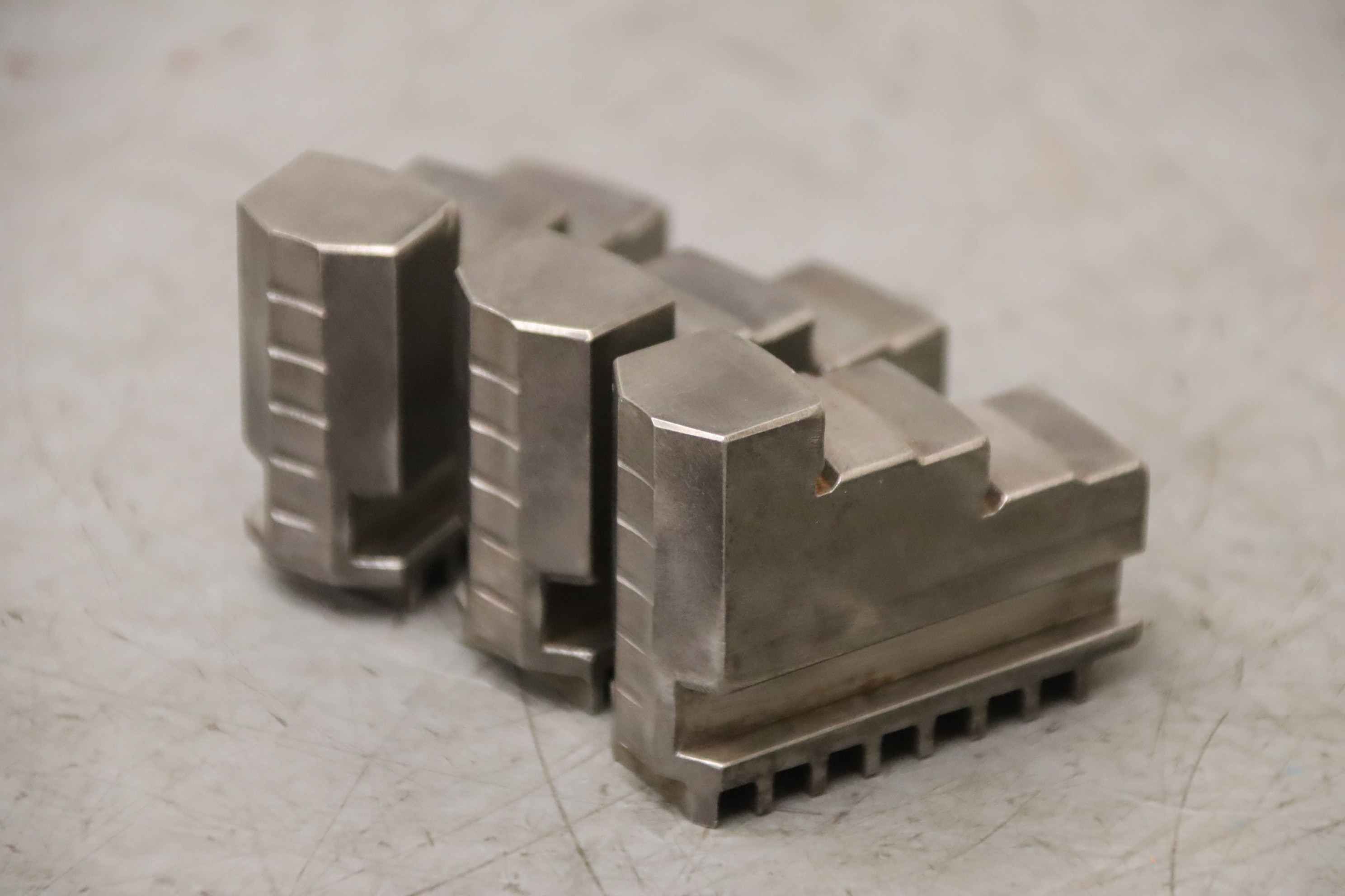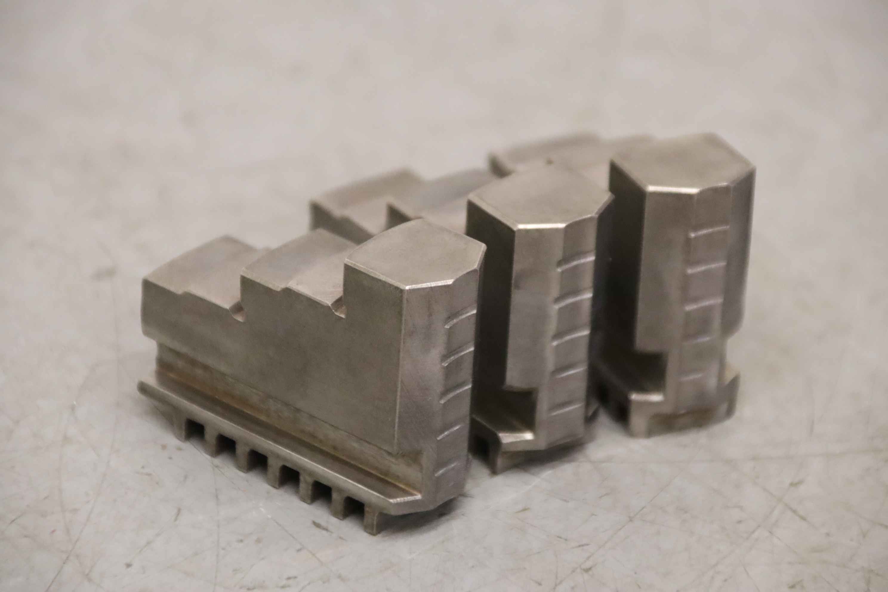 Interchangeable jaws, top jaws, three-jaw chucks, segment jaws, clamping jaws, step block jaws, step top jaws, block jaws, base jaws-Top jaws: for three-jaw lathe chucks, soft-Jaw width: 20 mm-Dimensions: see photos-Total dimensions: 85/60/H40 mm-Total weight: 1.0 kg