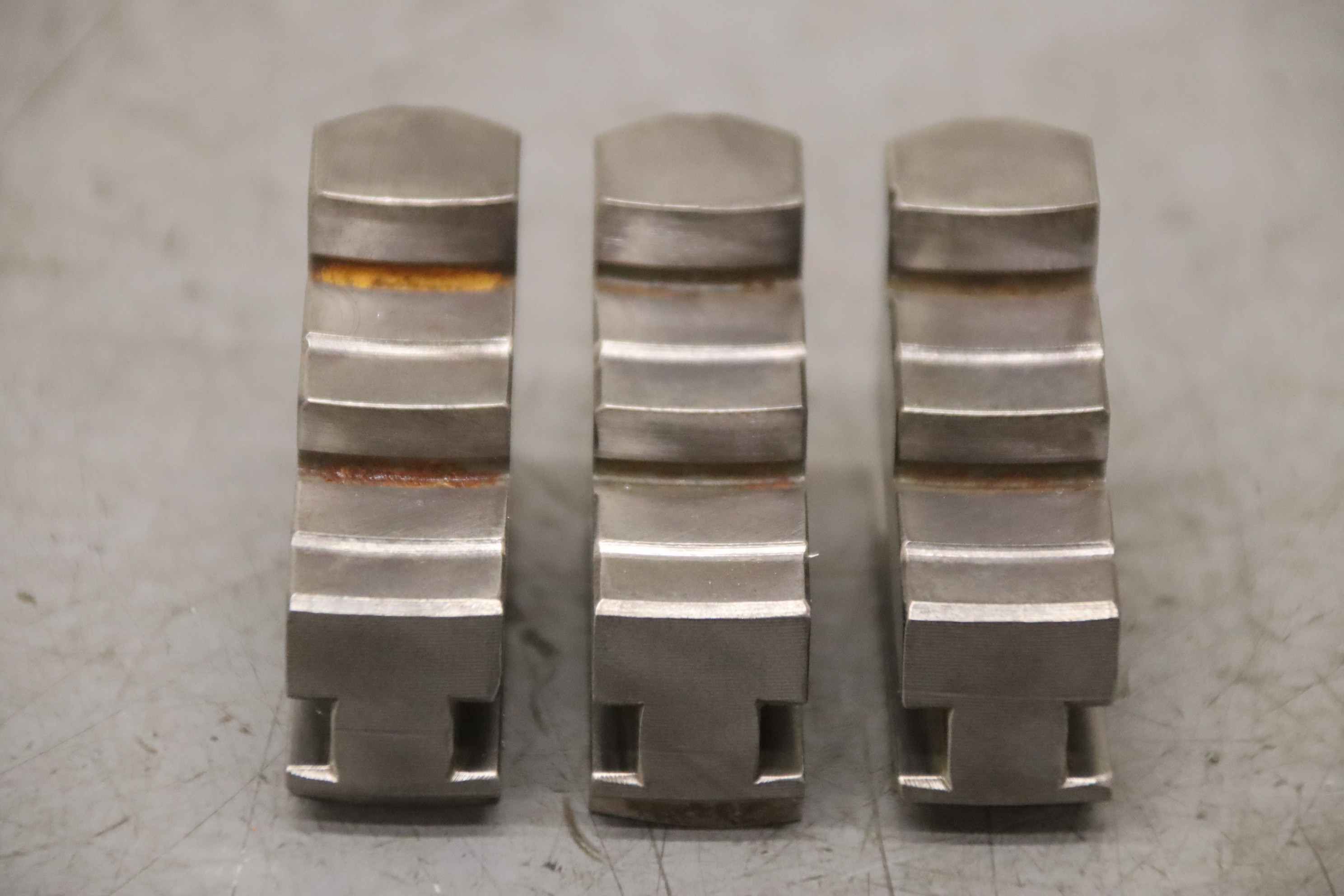 Interchangeable jaws, top jaws, three-jaw chucks, segment jaws, clamping jaws, step block jaws, step top jaws, block jaws, base jaws, 4-jaw set-Top jaws: Jaw set for three-jaw lathe chucks-Jaw width: 18 mm-Dimensions: see photo technical. drawing-Total dimensions: 52/55/H42 mm-Total weight: 0.6 kg