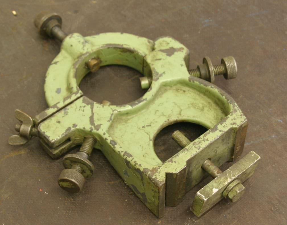 Bezel, steady rest, lynette -Bezel: max. passage O 90 mm -Center height: 155 mm -Condition: Gunmetal -technical drawing: with the photos -Dimensions: mm -Weight: 6kg