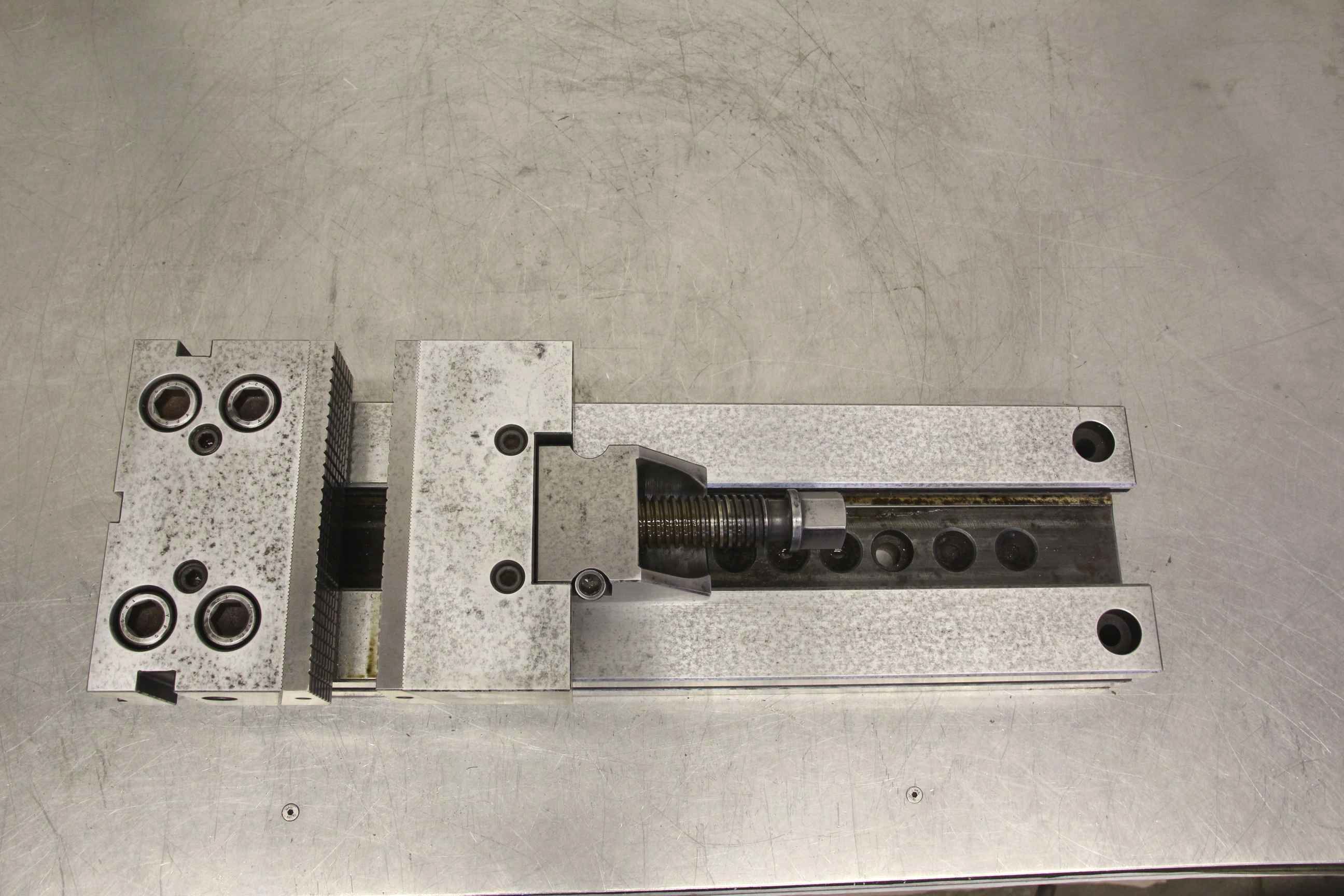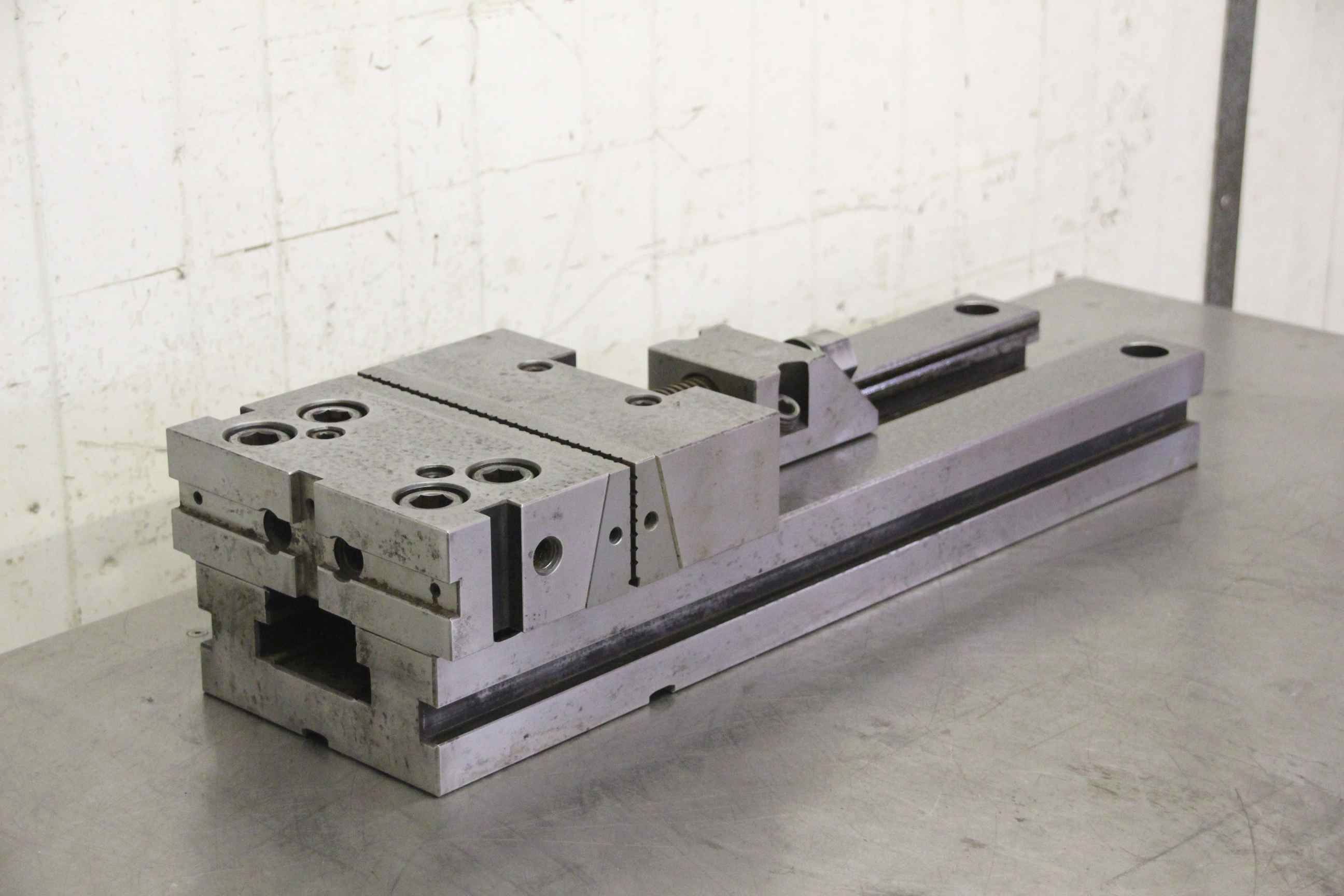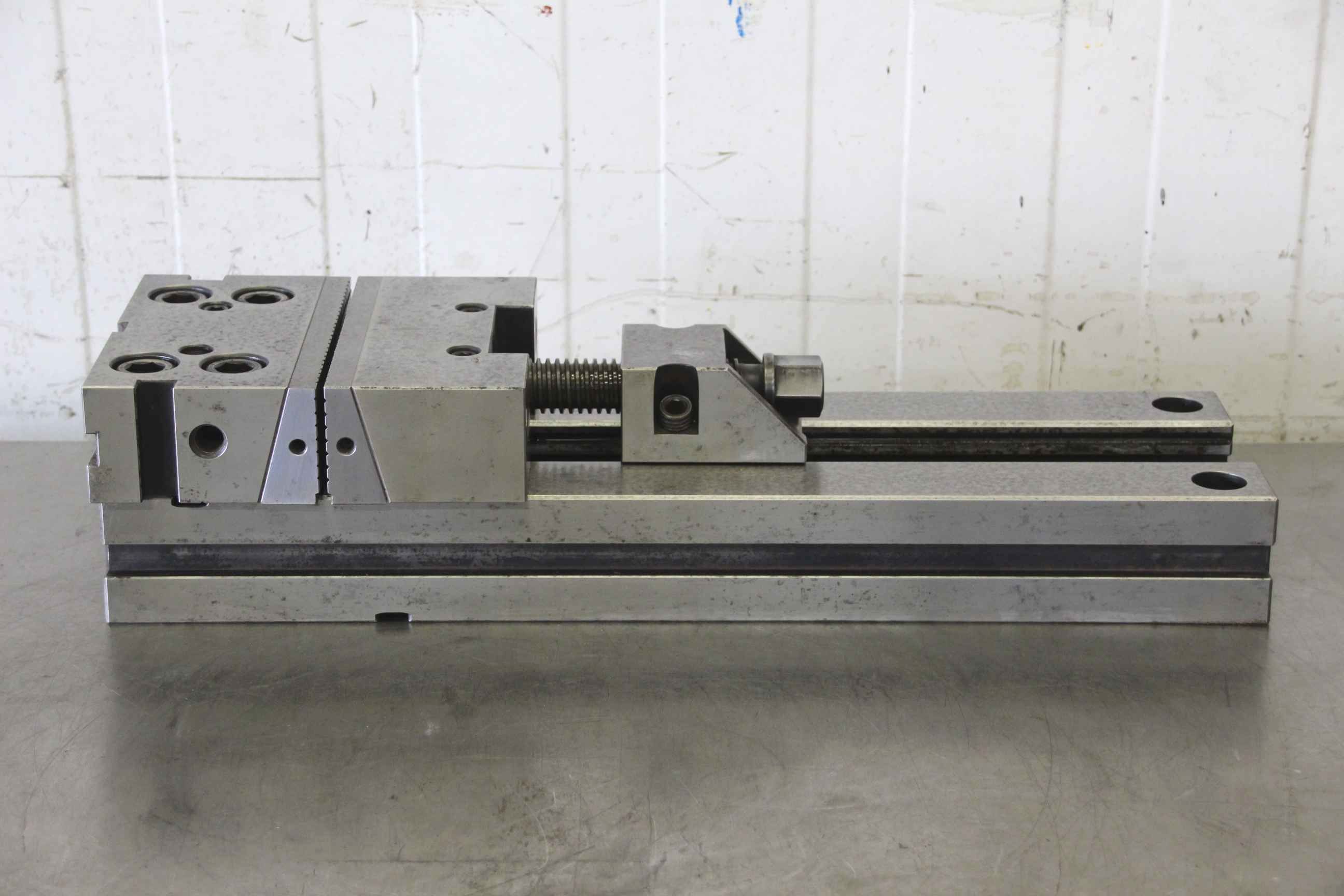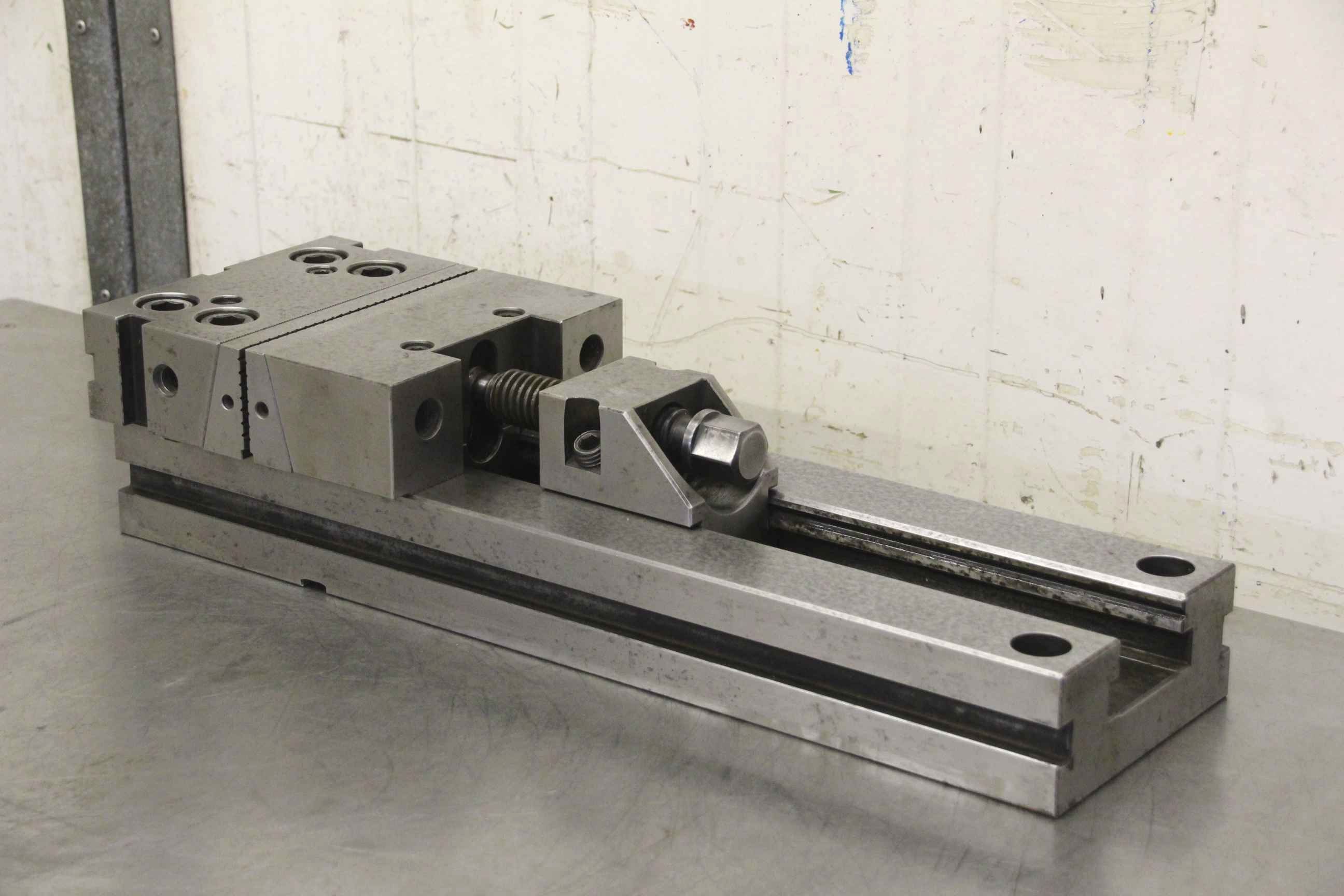 Machine vise, stable vise, milling machine vise, modular vise -Manufacturer: Gerardi, Modular Vise - Jaw width: 195 mm - Jaw height: 60 mm -Clamping range: 345 mm -Total dimensions: 595/195/H130 mm -Quantity: 1 piece available -Weight: 63kg