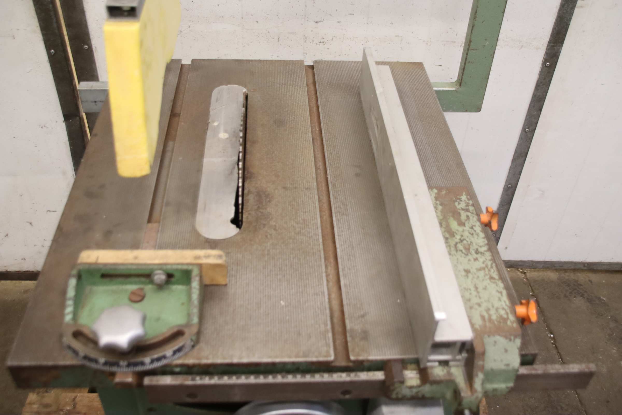 Underfloor circular saw, crosscut saw, pull saw, chop saw, sliding table saw, circular table saw, circular saw-Manufacturer: White Paisley, table saw on solid base-Motor power: 6.3 kW / 1430 rpm-Saw blade: Ø 550 mm-Max. Cutting height 180 mm-Cutting width: up to 455 mm-Table height: 850 to 1000 mm-Chip extraction: Extraction system can be supplied at an additional cost-Dimensions 1240/1100/H1500 mm-Weight: 762 kg