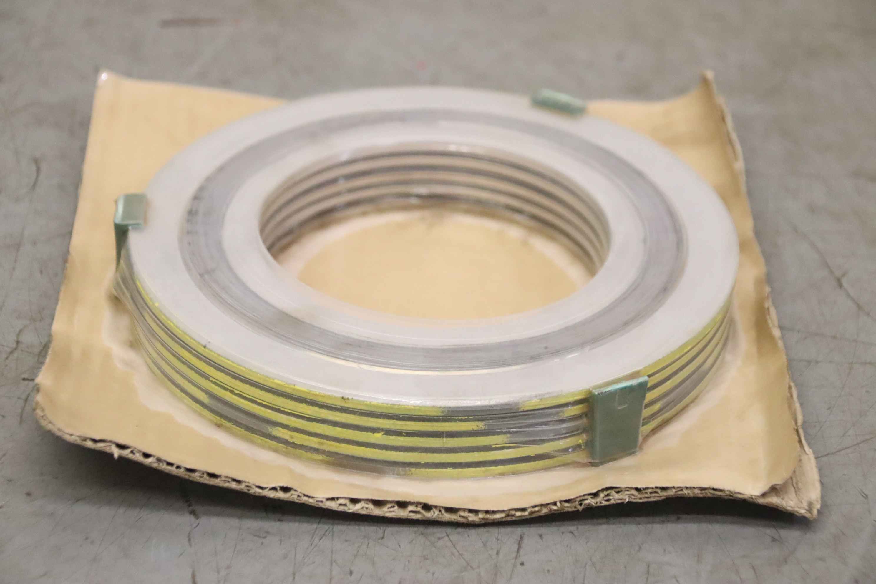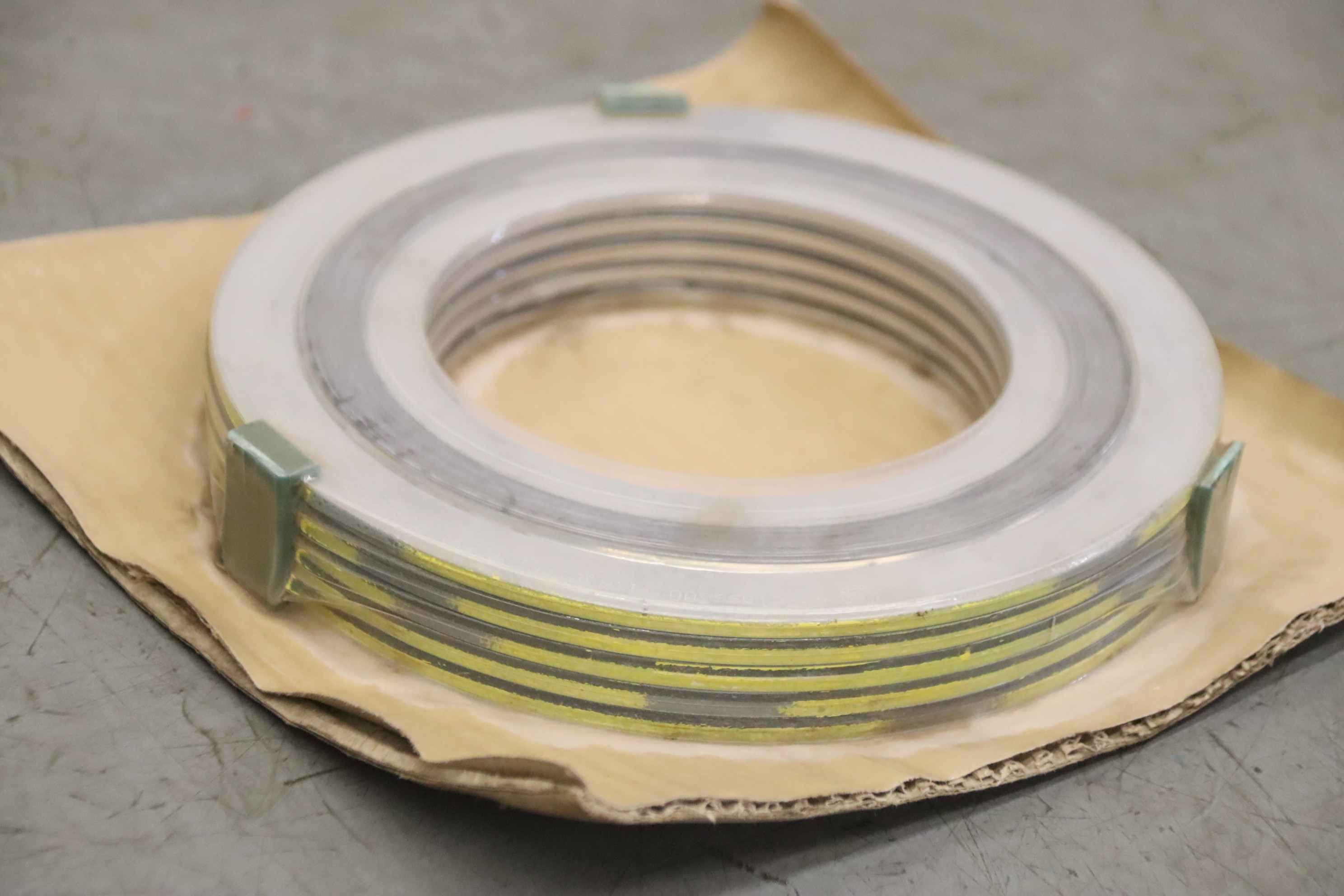 Spiral seal, labyrinth housing seal, flange seal-Manufacturer: ISW, spiral seal: flange seal 5 pieces/package-Type: 4 Class 300 lbs like Spiraltherm 304SS with inner and outer ring-Quantity: 4 packages available-Price: per package-Dimension package: Ø180 x 30 mm-Weight: 1.8kg/package