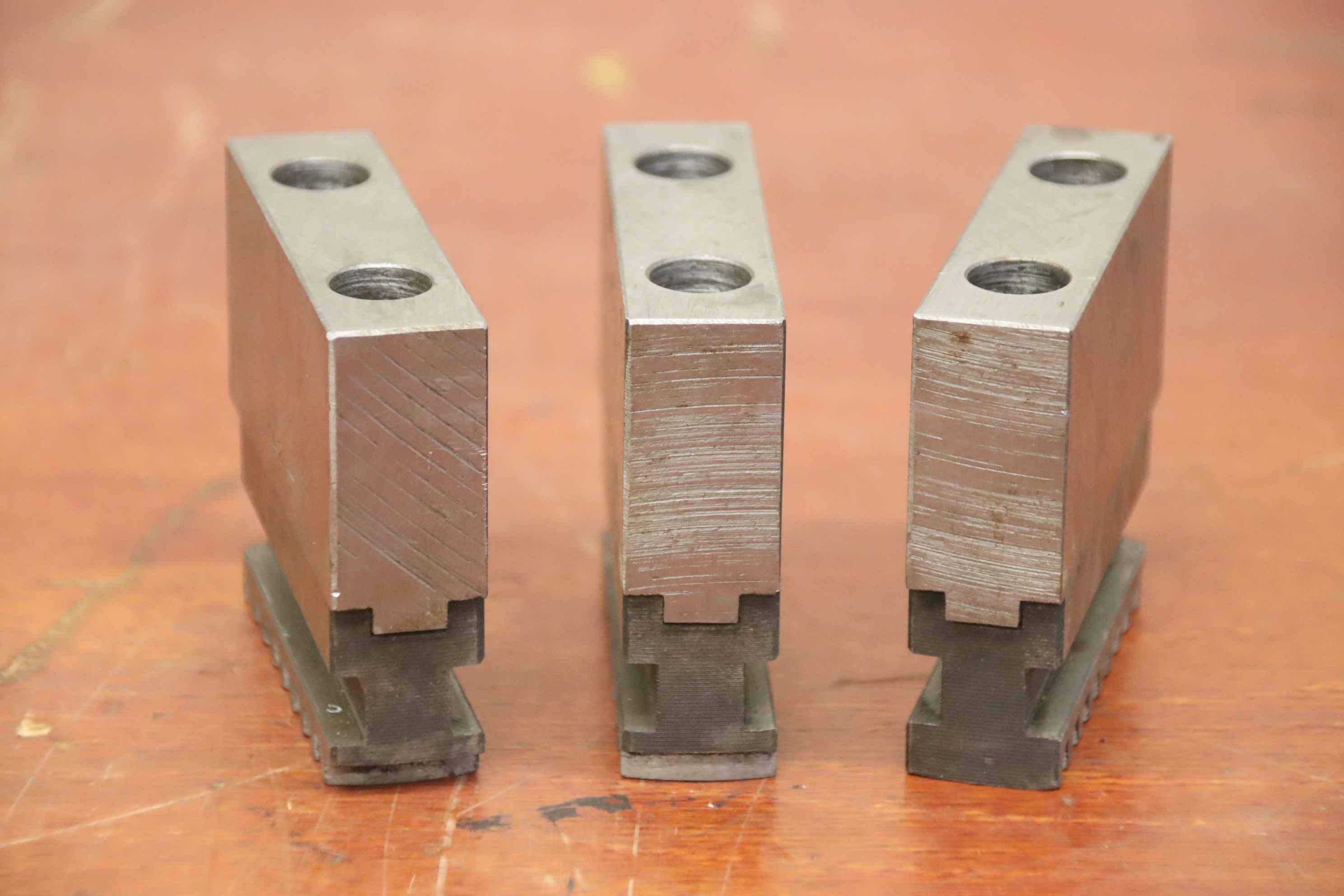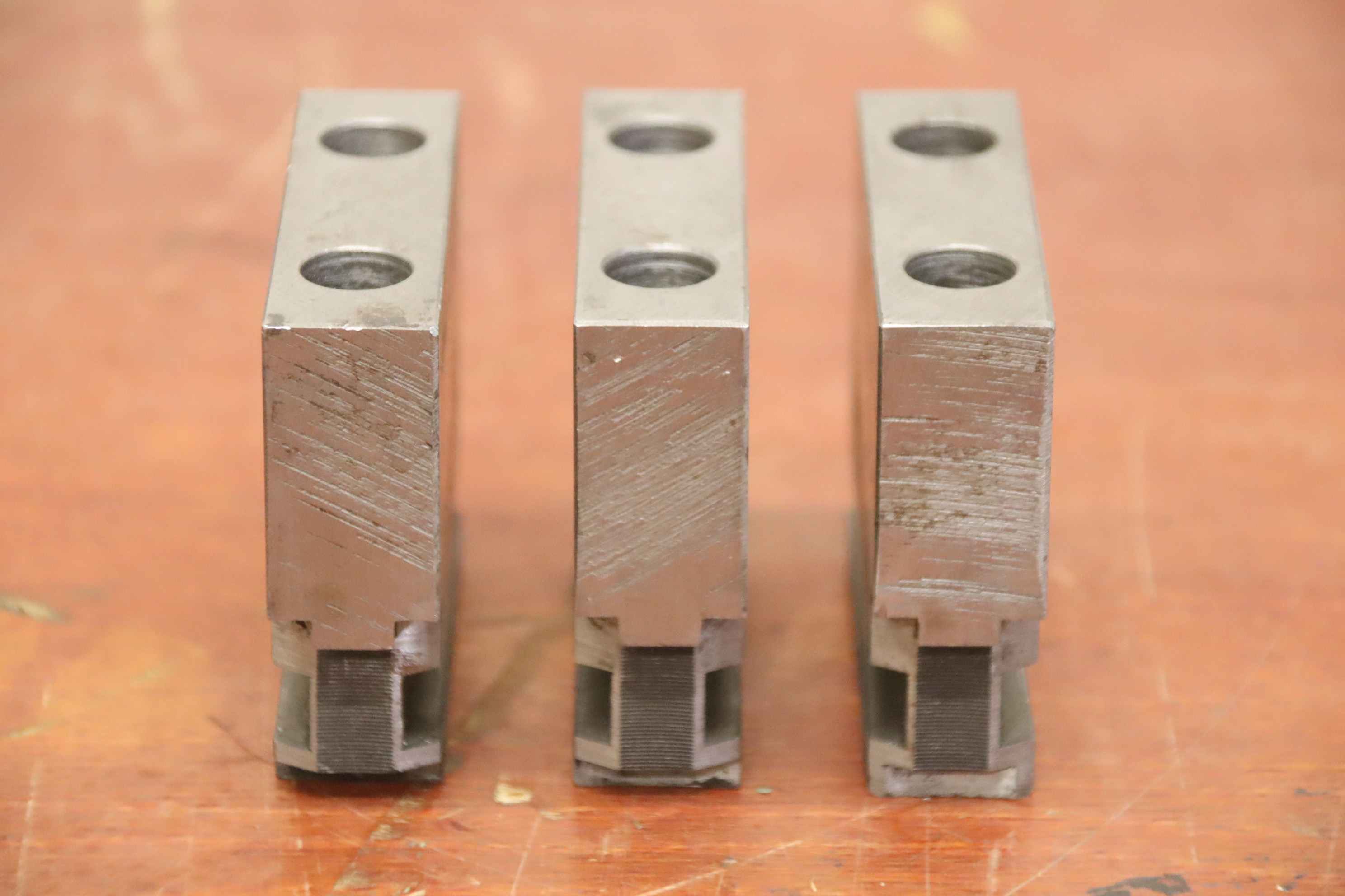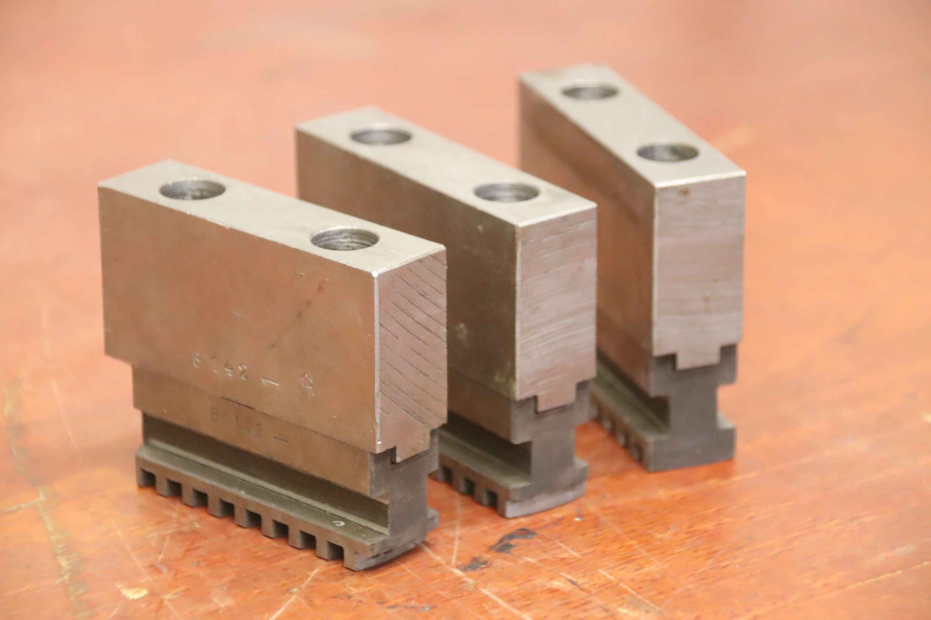 Interchangeable jaws, top jaws, three-jaw chucks, segment jaws, clamping jaws, step block jaws, step top jaws, block jaws, base jaws-Top jaws: Jaw set for three-jaw lathe chucks -Jaw width: 21 mm-Dimensions: see photo technical. drawing-Total dimensions: 80/63/H67 mm -Total weight: 2,1 kg