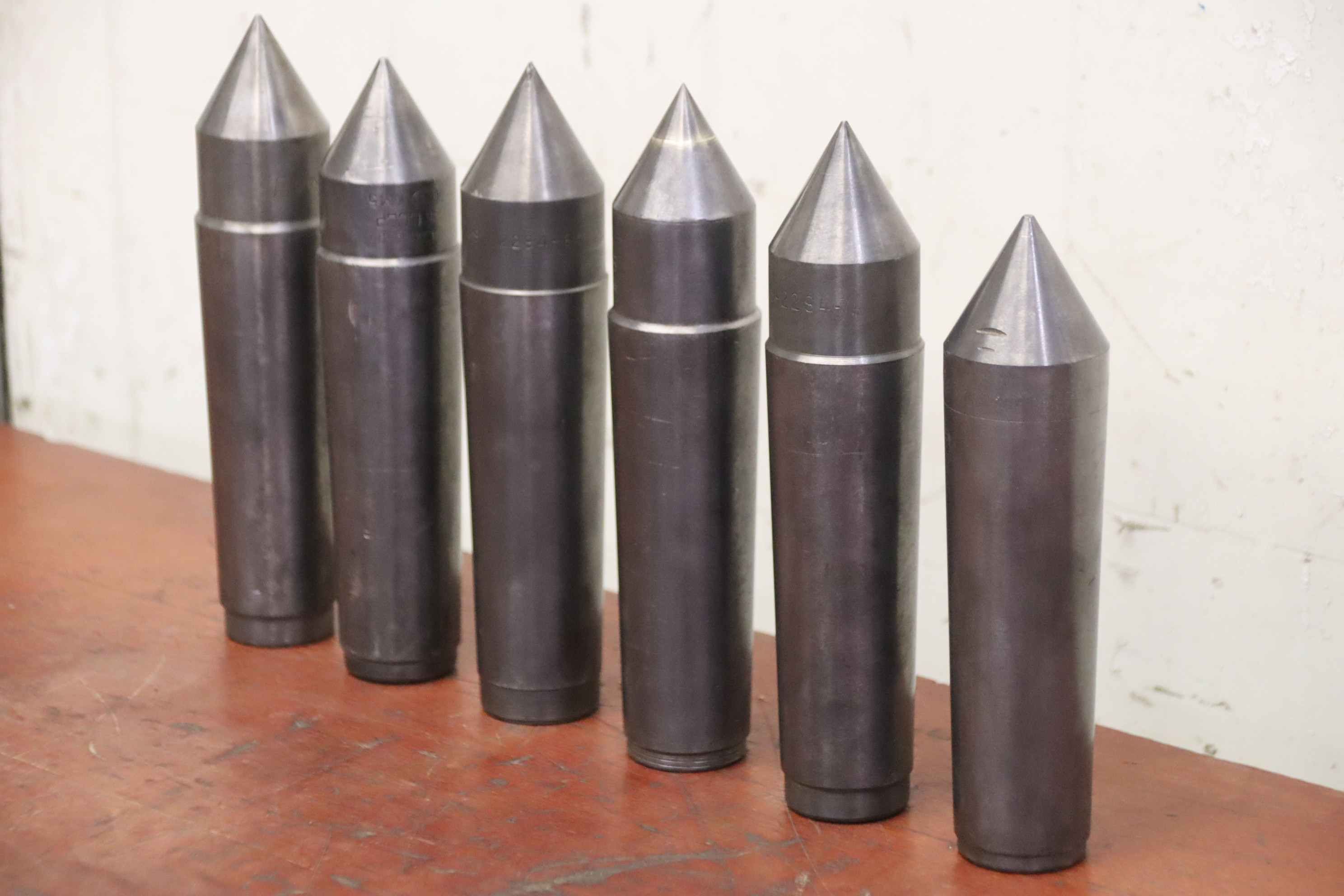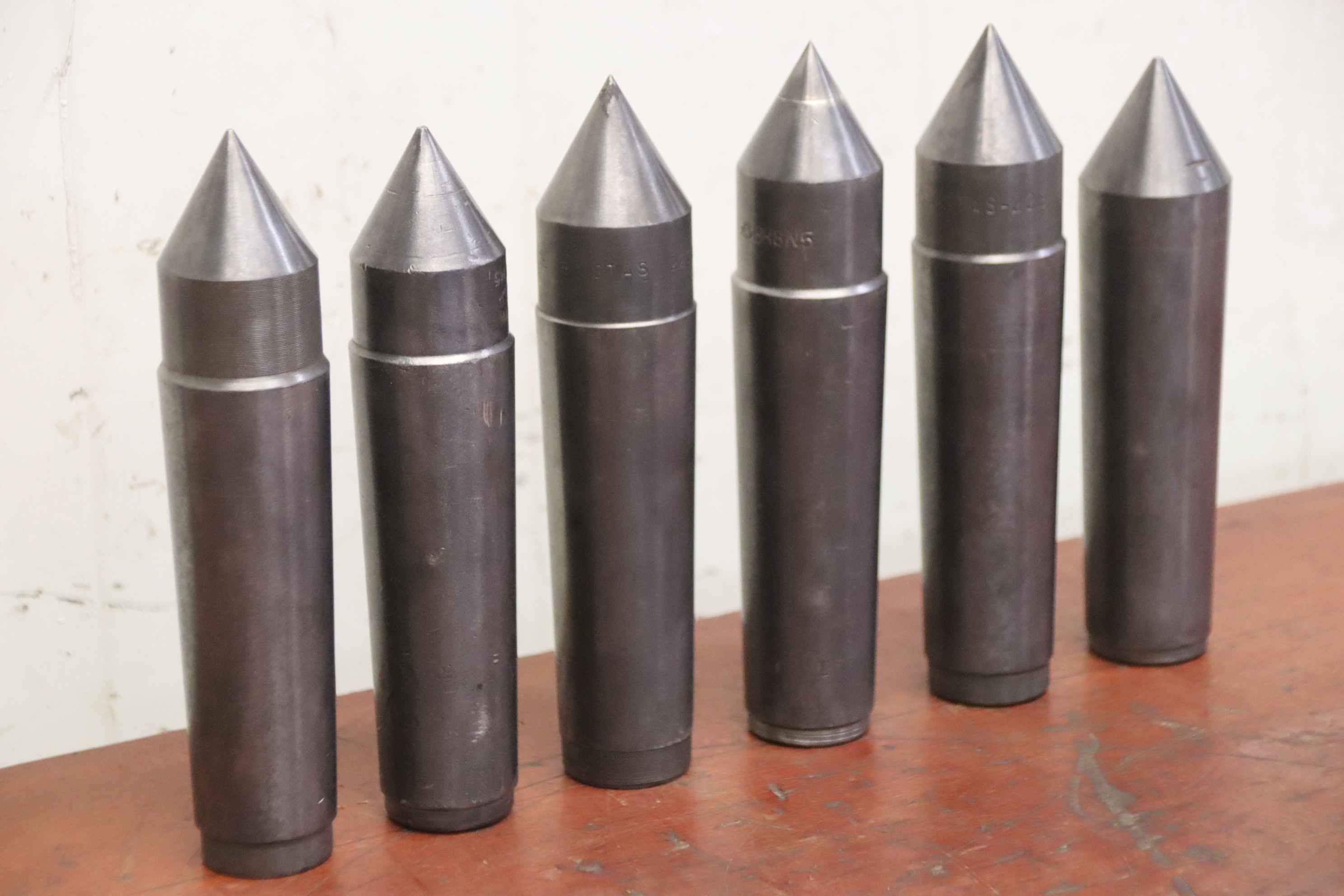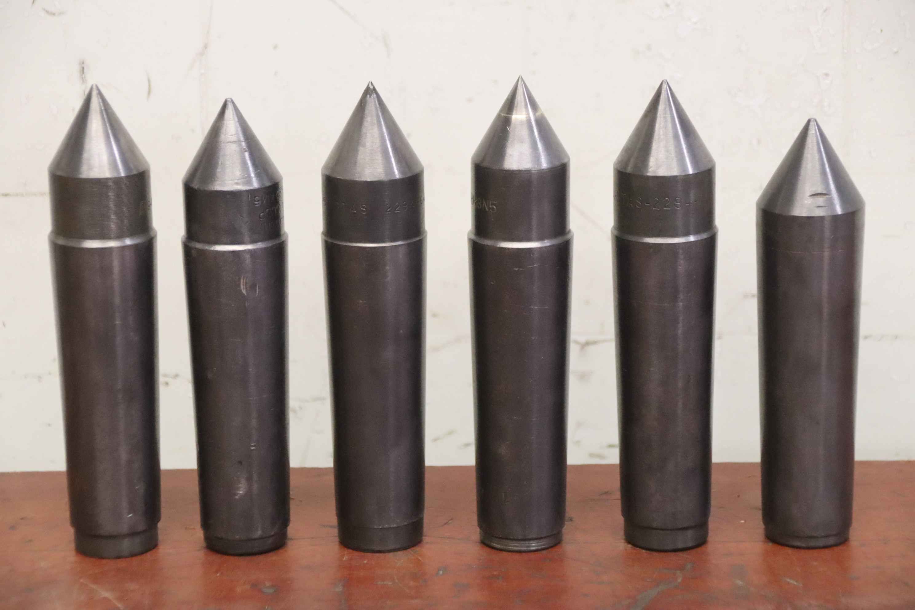 fixed center, fixed punch center, fixed Morse taper, fixed centering center, centering centers -Fixed centering tip: 6 pieces -Morse taper MK5 -Shipping/Price: complete -Dimensions each: approx. Ø 46/200 mm -Transport dimensions: 200//140/H10 mm -Total weight: 11 kg.