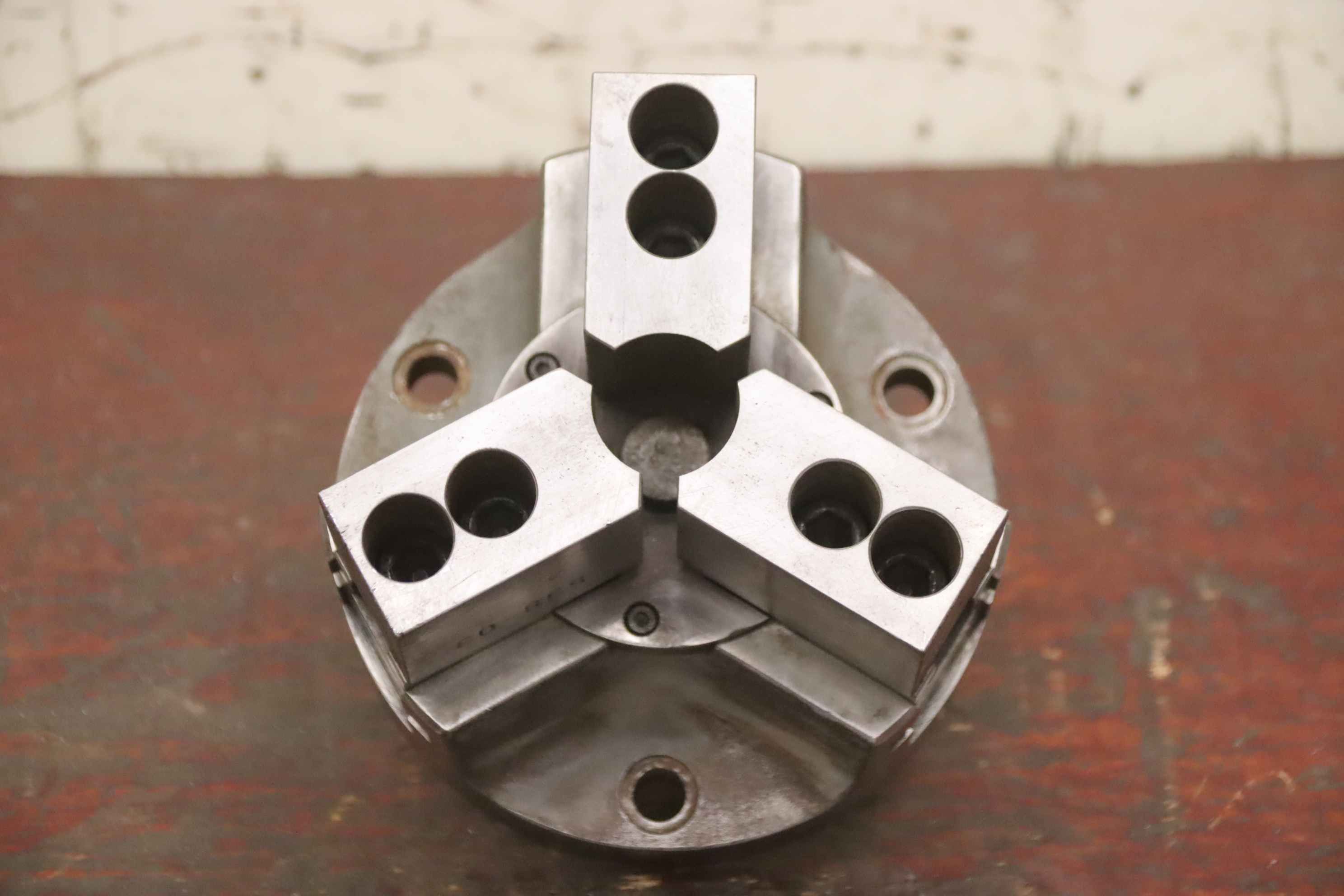 4-Application chuck, key bar chuck, three-jaw chuck, three-jaw lathe chuck, power chuck, hydraulic chuck-Power chuck: chuck size Ø 160 mm-Thread: M16-Bolt circle: Ø 133 x 13 mm-Dimensions: Ø 160 x 210 mm-Weight: 10.7 kg