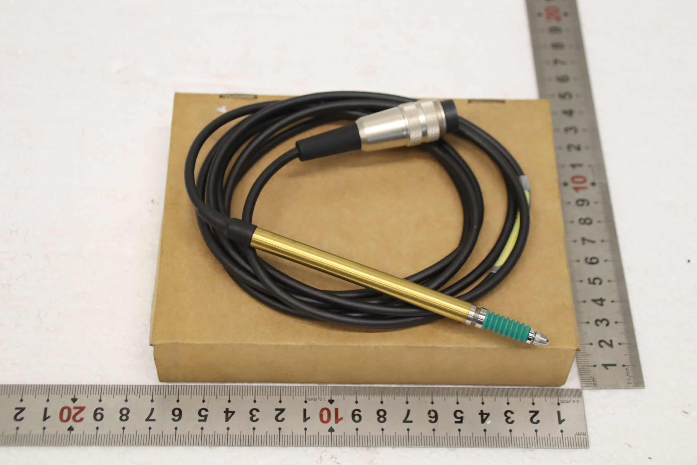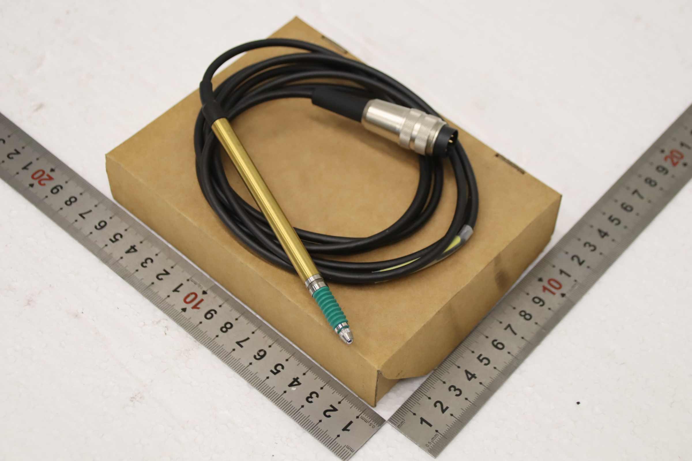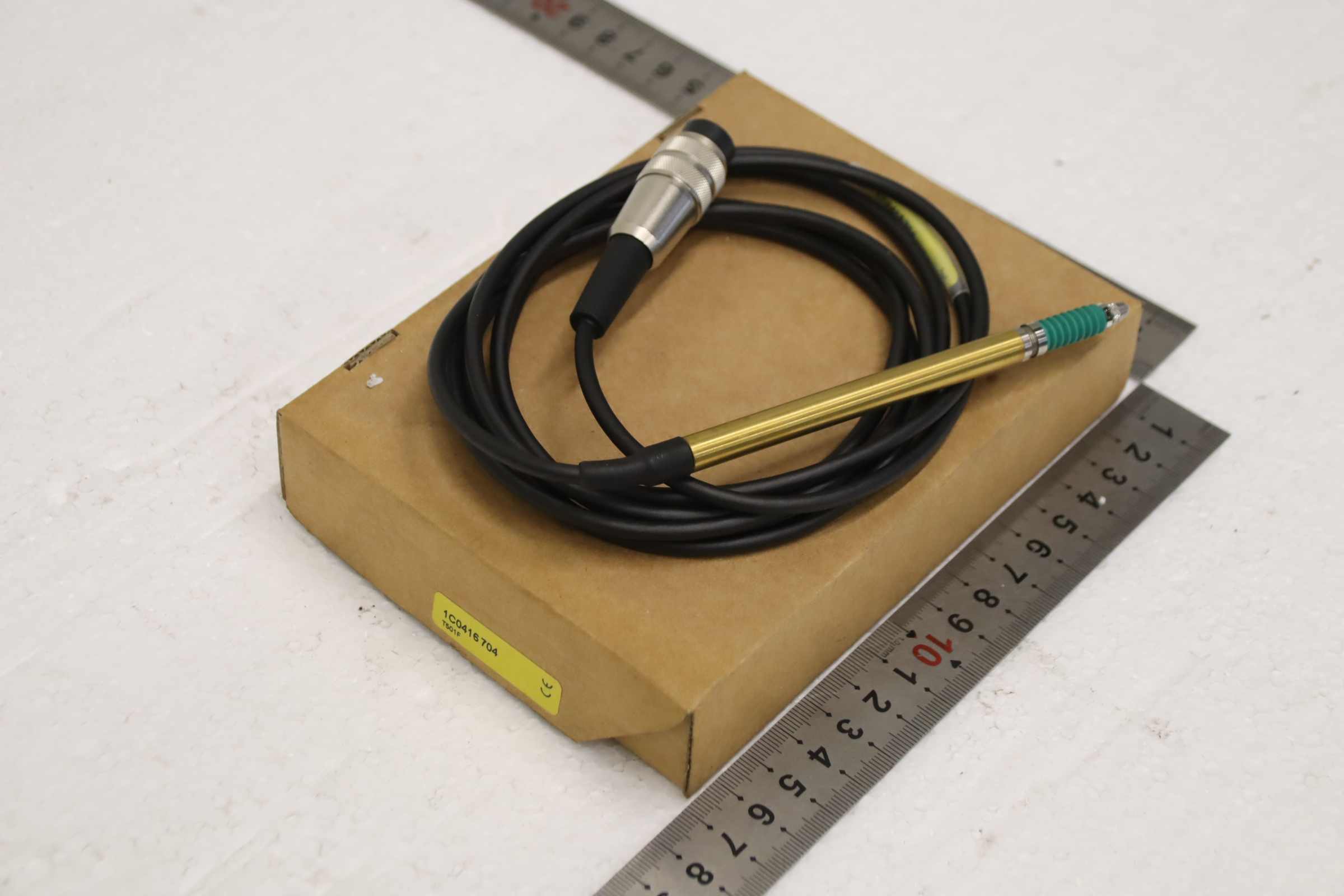 Probe, 3D probe, probe insert, probe head, Digimatic Indicator, scanning head, measuring head, inductive displacement sensor -Manufacturer: Peter Hirt, Inductive displacement sensor with measurement protocol, original packaging -Type: T501F -Number: 4x measuring probes available -Price: per piece -Cardboard dimensions: 160/120/H30 mm -Weight: 0.2 kg