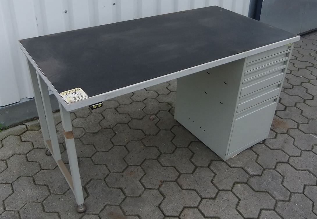 Workbench, work table, assembly bench, drawer cabinet, tool cabinet -Width: 1500 mm -Depth: 750 mm -Height: 780 mm -Drawers: 5 -Weight: 80 kg -Conductive tabletop with: Anka-Plast coating