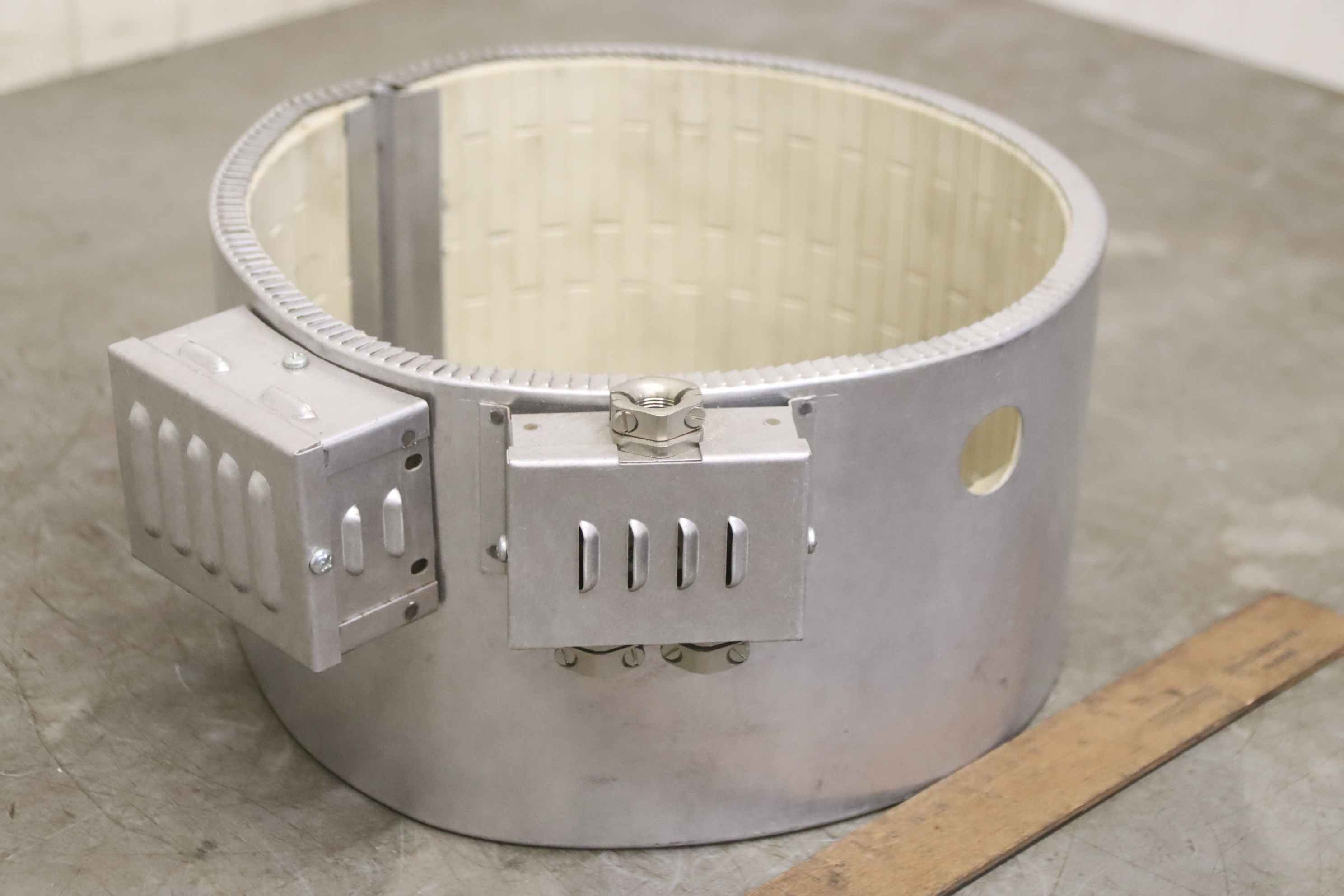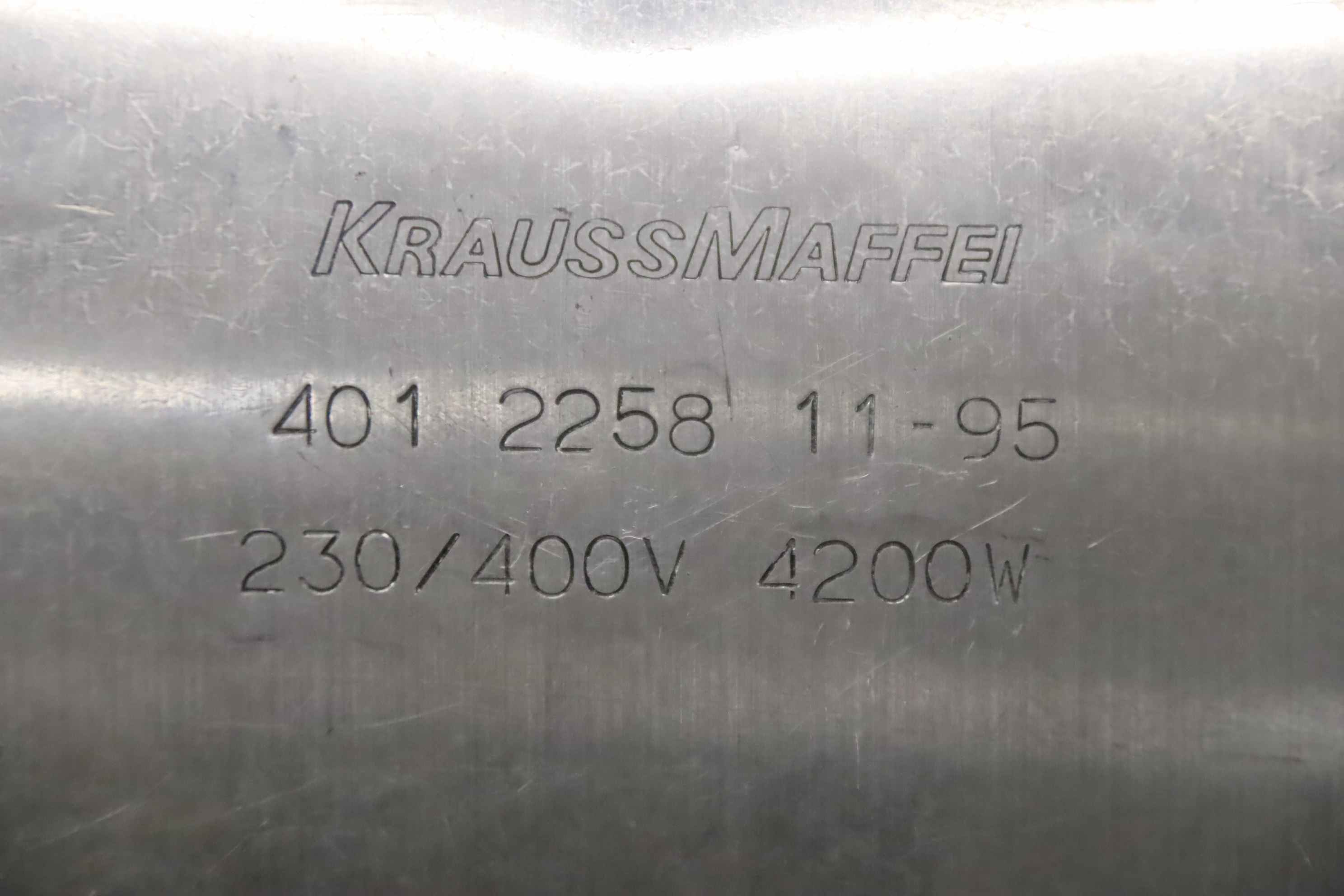 Tubular heater, heating tape, heating sleeve, mica heater, cylinder heater, heating cylinder, ceramic heating tape -Manufacturer: Krauss Maffei, heating tape, heating sleeve -Type: Ø240 x 135 mm -Item No.: 401 2258 -Heating power: 4200 W -Voltage: 230/400 V -Quantity: 2x heating tape available -Price: per piece -Dimensions: 290/255/H135 mm -Weight: 2.8 kg