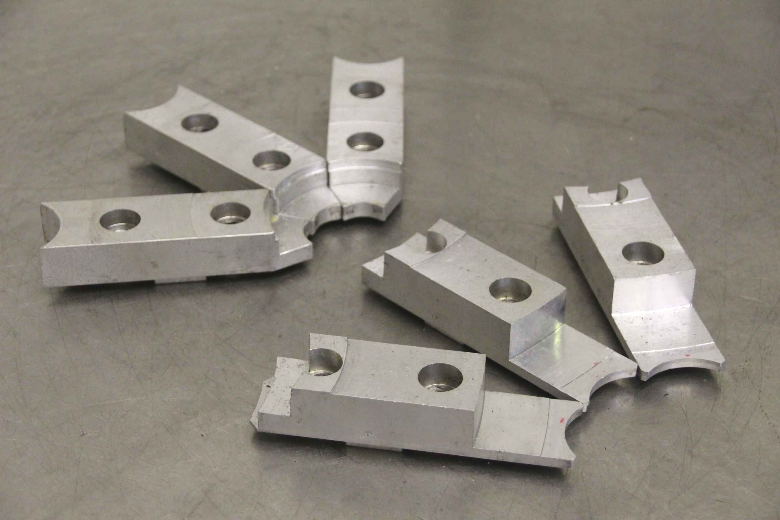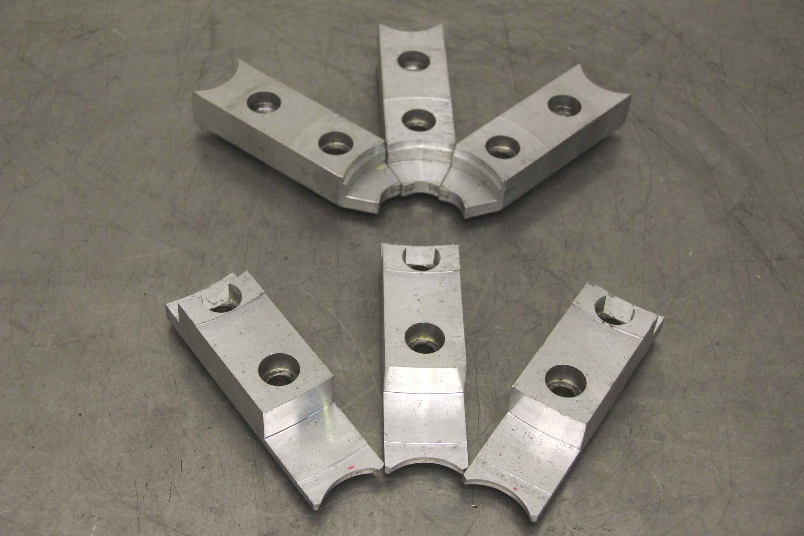 Interchangeable jaws, top jaws, three-jaw chucks, segment jaws-Top jaws: for power chucks-2 set: soft jaws, aluminum-Hole spacing: 54 mm-Price/sale: only complete-Dimensions: 135/170/H80 mm-Weight: 1.8 kg