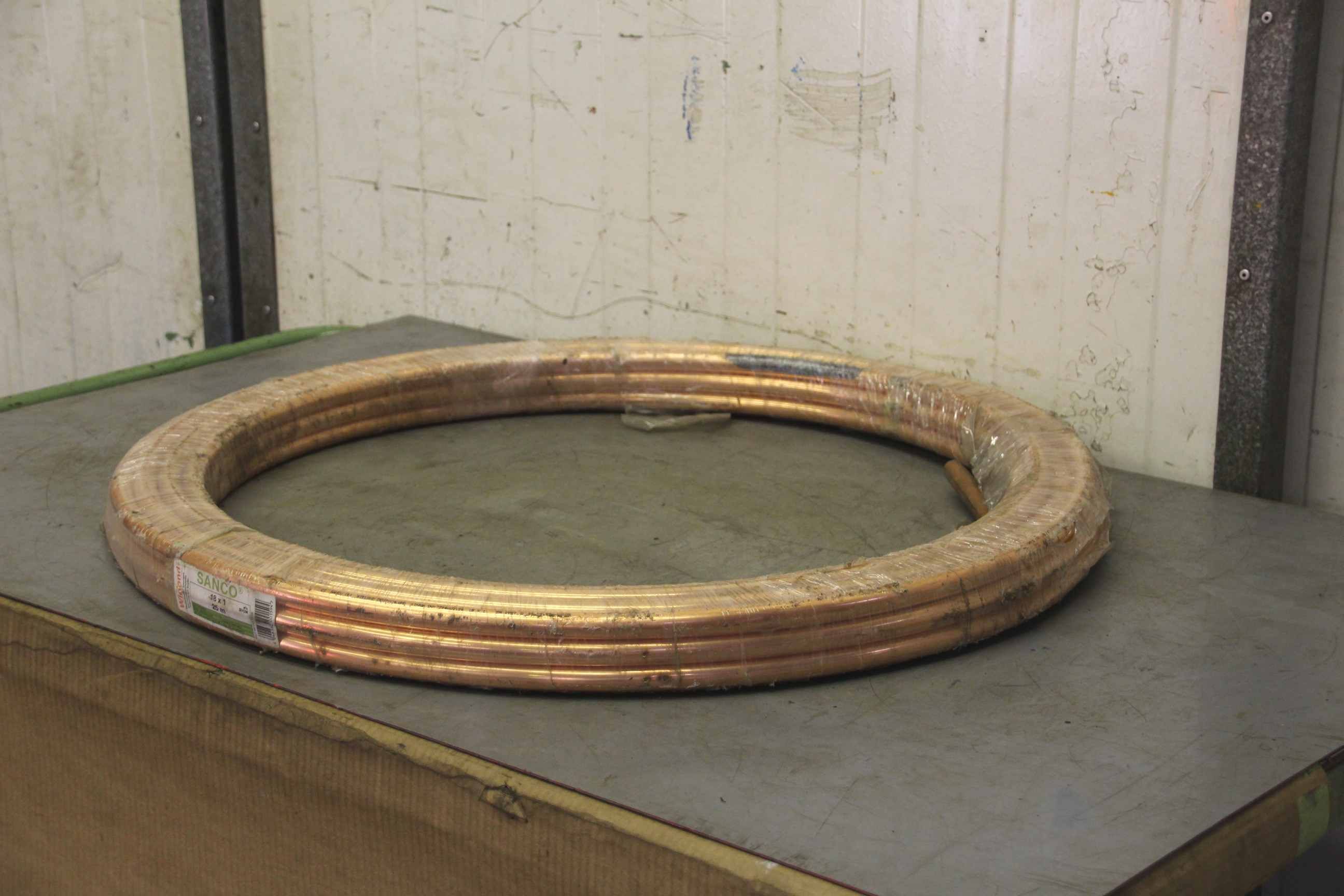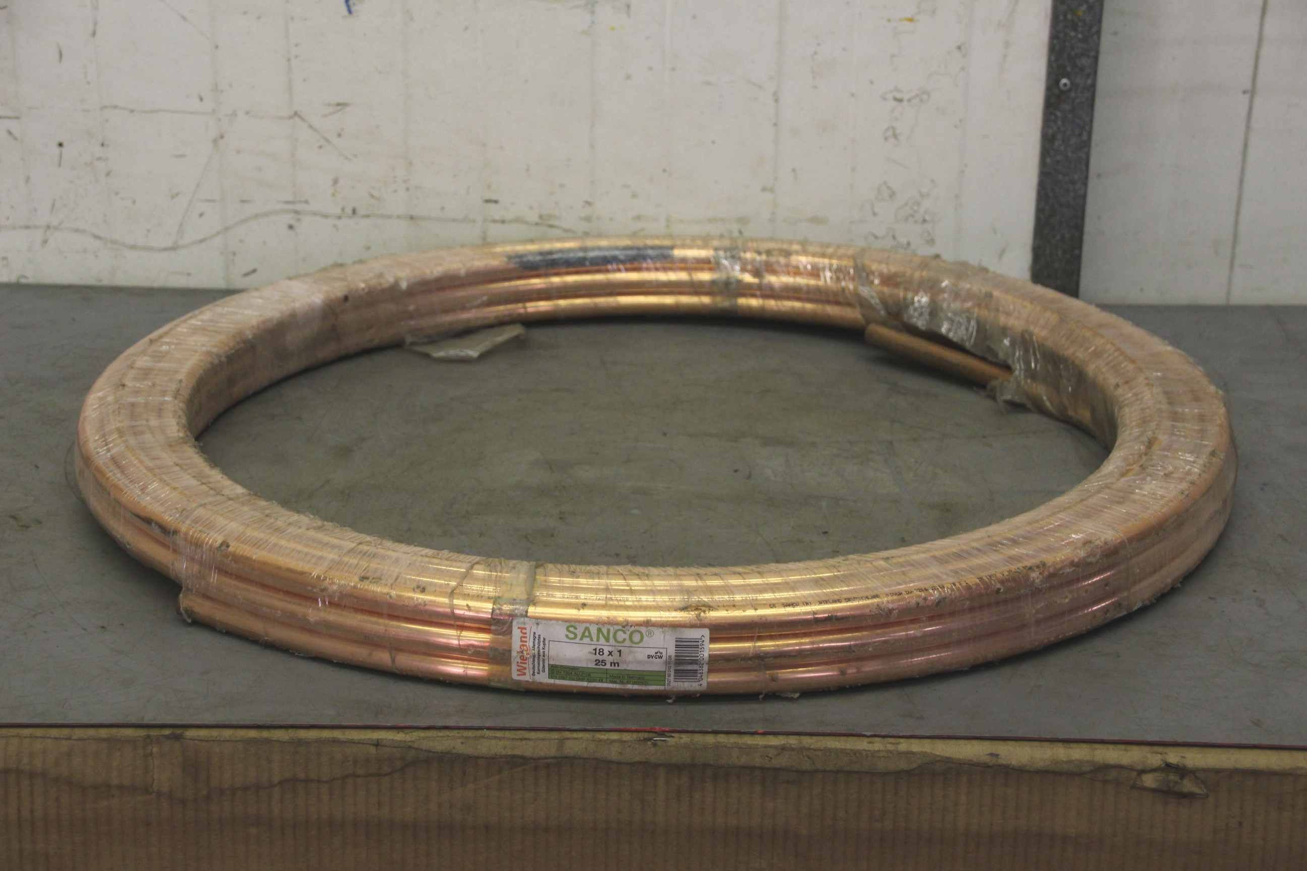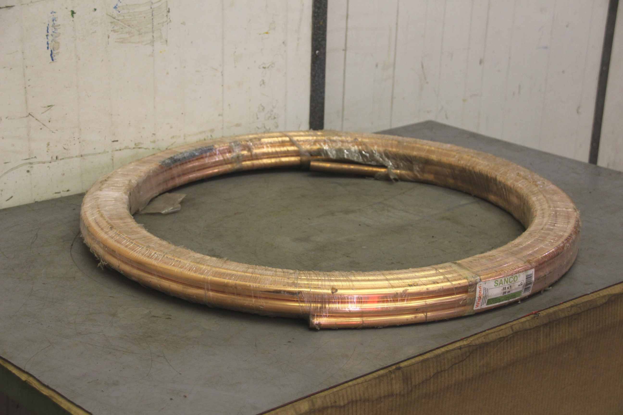 Copper pipe-Sanco copper pipe: EN 1057-18x: 1-Roll: 25 m-Number: 2 rolls available-Price: per roll-Dimensions: Ø 760/60 mm-Weight: 10.7 kg