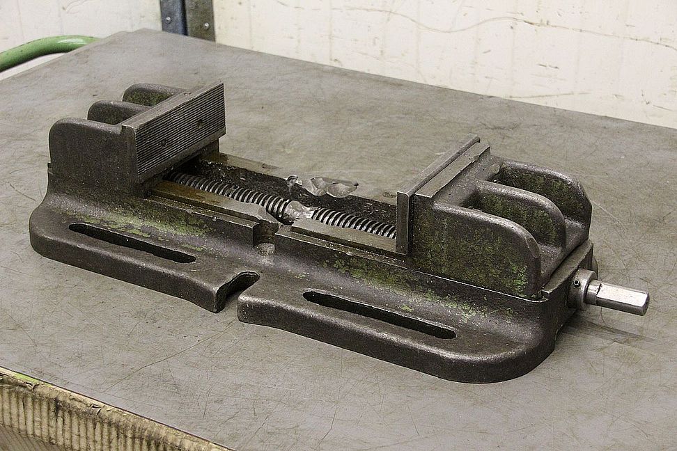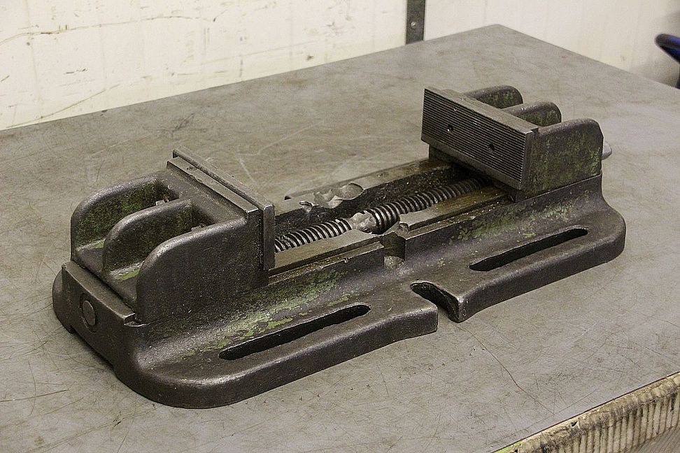 Machine vice, sturdy vice, drill press vice -Jaw width: 150 x 60 mm -Clamping depth: max. 285 mm -centric clamping -Dimensions: 620/275/H135 mm -Weight: 41 kg