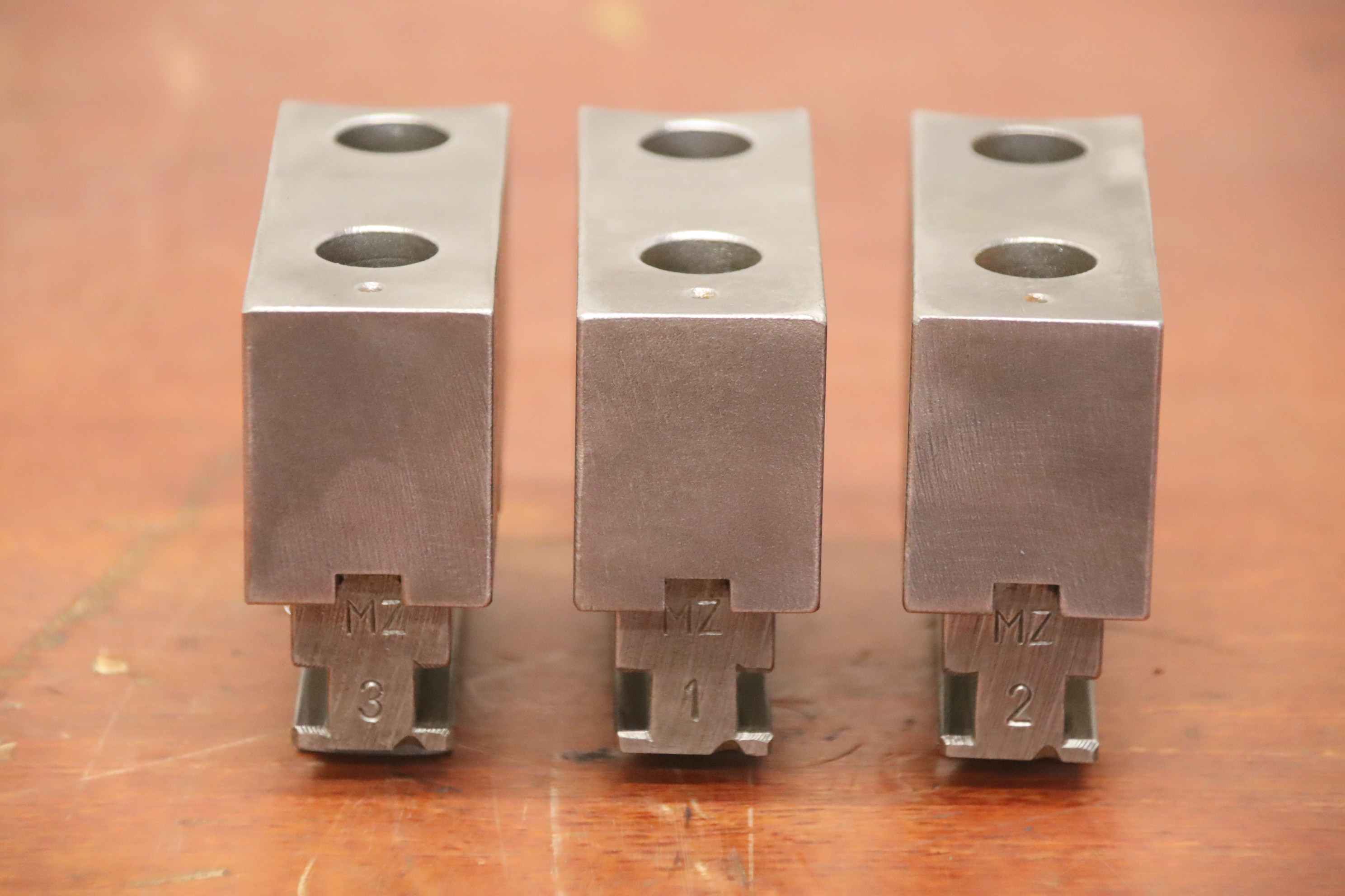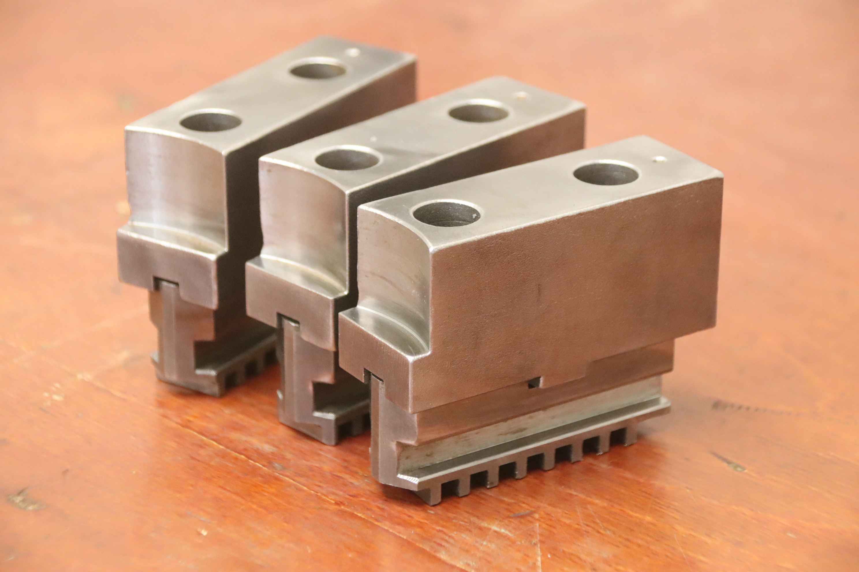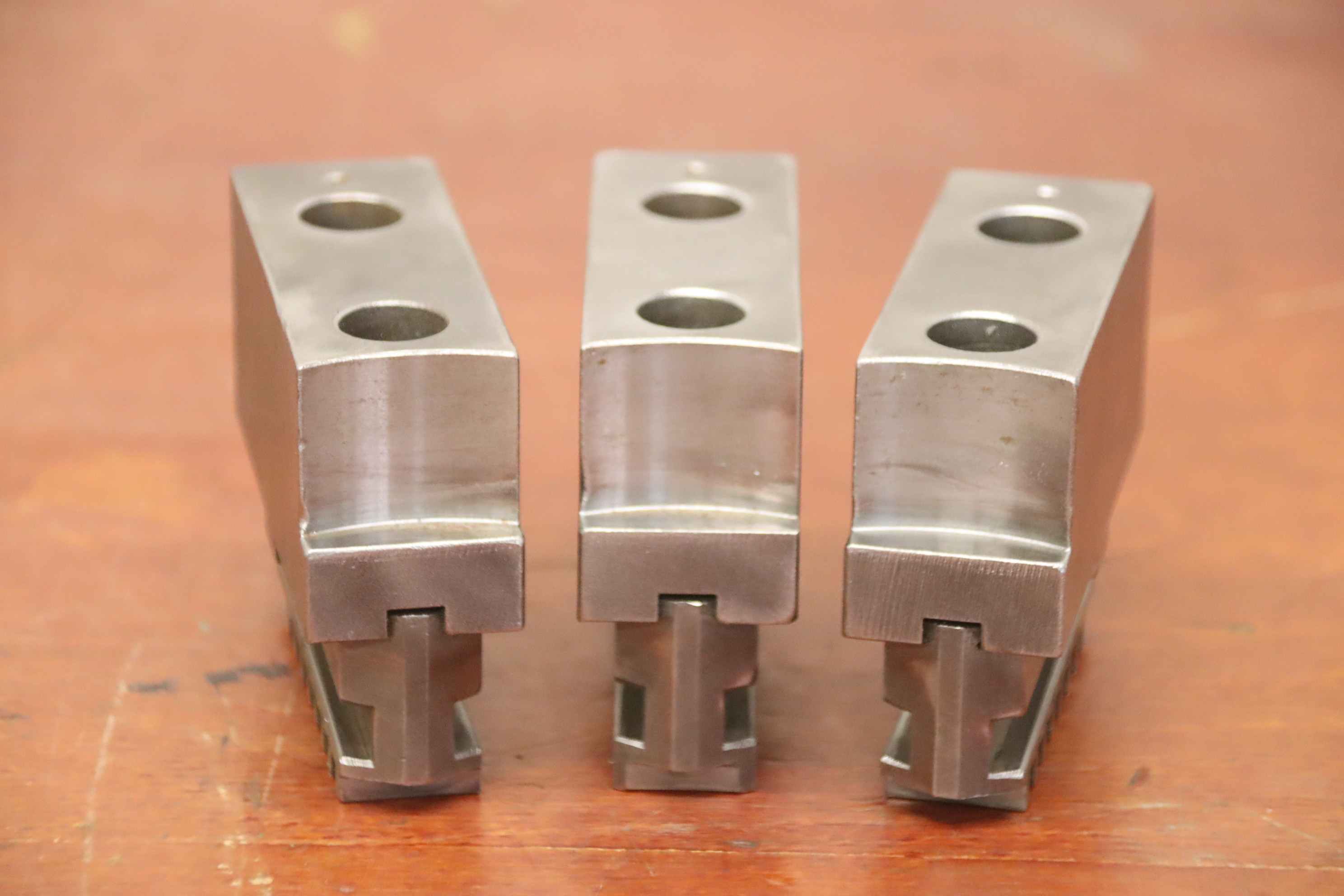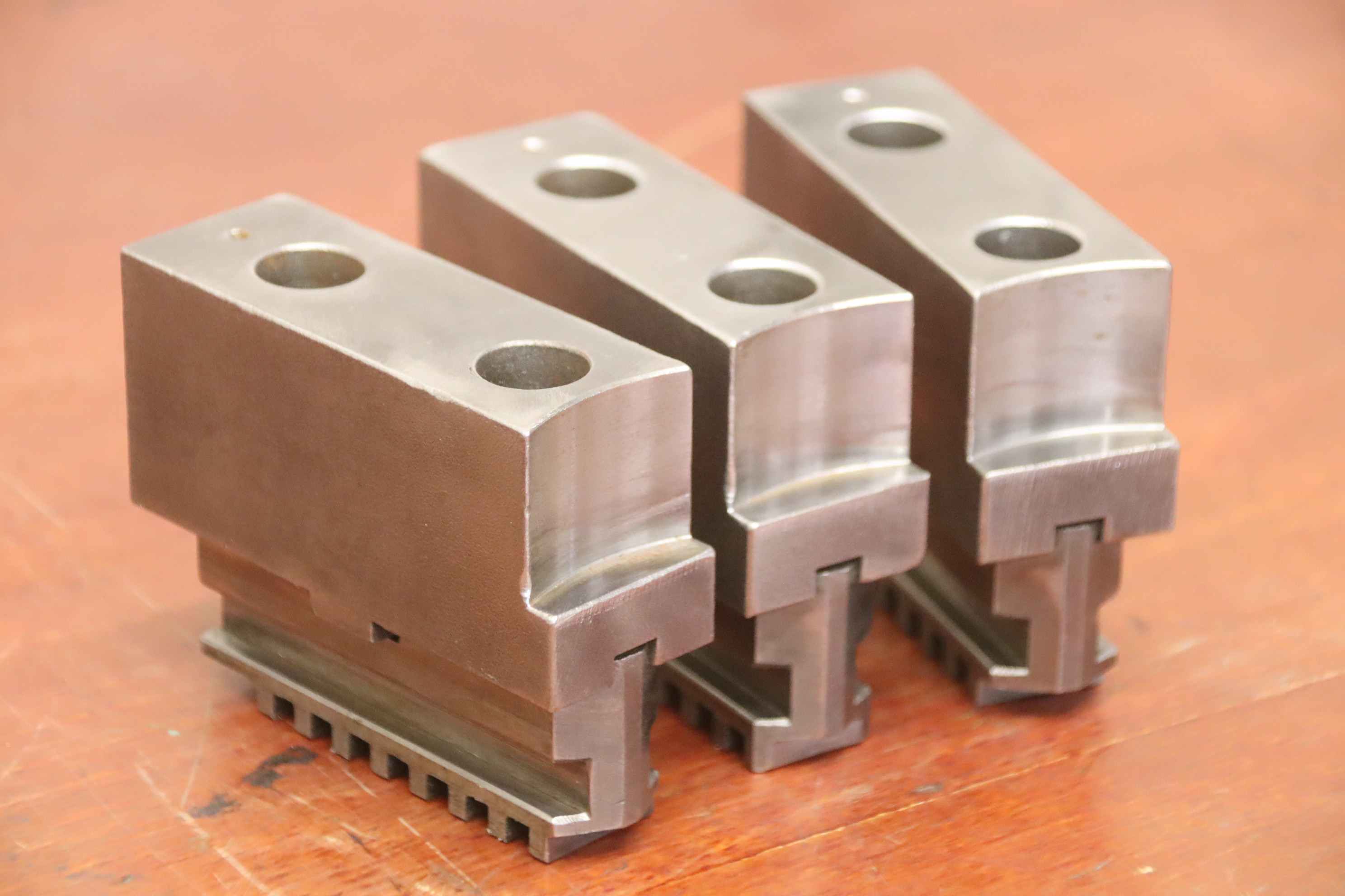 Interchangeable jaws, top jaws, three-jaw chucks, segment jaws, clamping jaws, step block jaws, step top jaws, block jaws, base jaws-Top jaws: Jaw set for three-jaw lathe chucks, soft-Jaw width: 20 mm-Dimensions: see photo technical. drawing-Quantity: 3 sets of interchangeable jaws available-Price: per set-Total dimensions: 90/90/H70 mm / 87/90/H65 mm-Total weight: 2.7 kg/ 2.8 kg