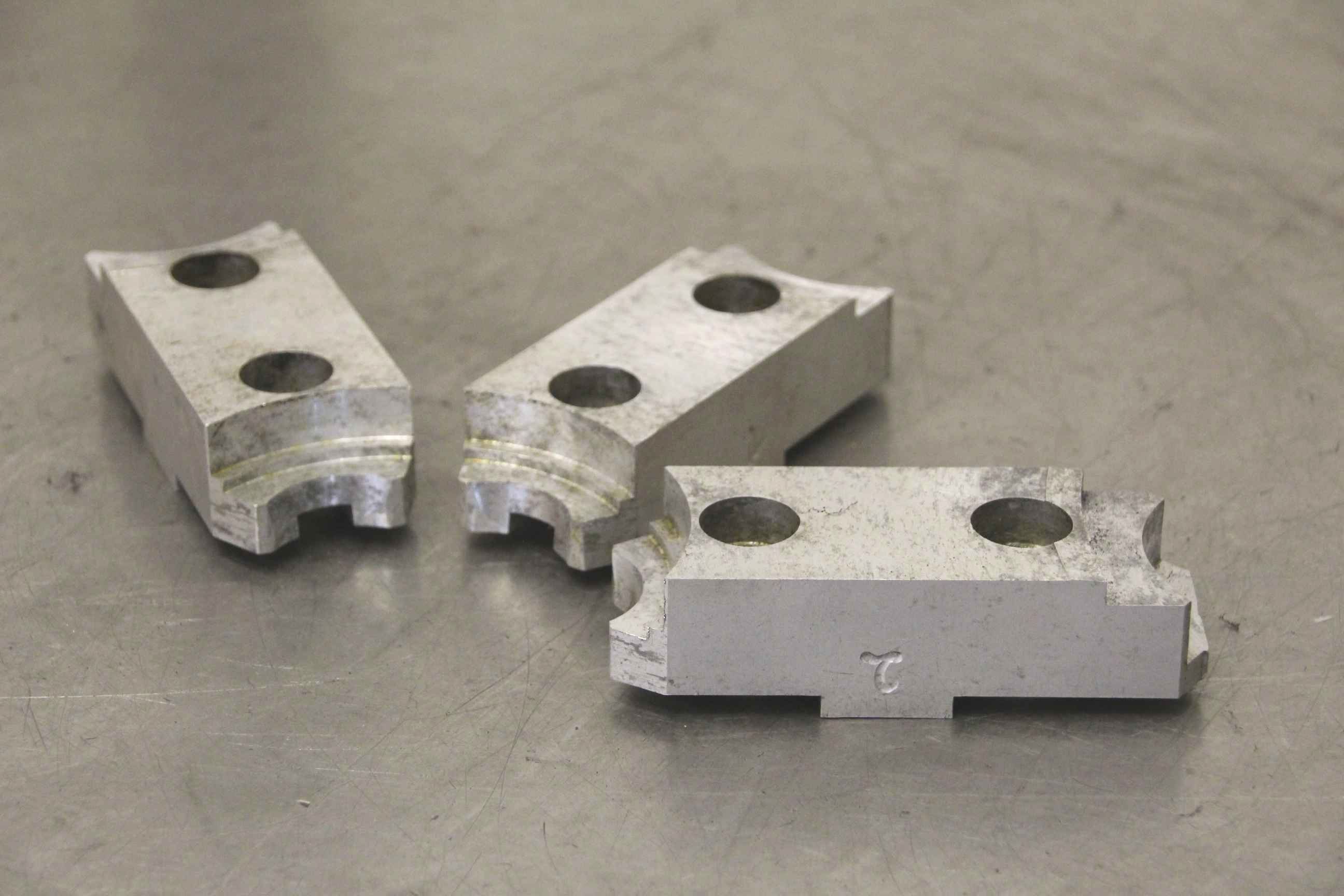 Interchangeable jaws, top jaws, three-jaw chucks, segment jaws, clamping jaws, step block jaws, step top jaws, block jaws, base jaws, interchangeable jaws, wedge bar chucks, interchangeable jaws power chucks-Top jaws: soft top jaws for wedge bar chucks, helical teeth-Jaw width: 20 mm-Dimensions: see photo technical. drawing-Total dimensions: 80/60/H45 mm-Total weight: 1,5 kg
