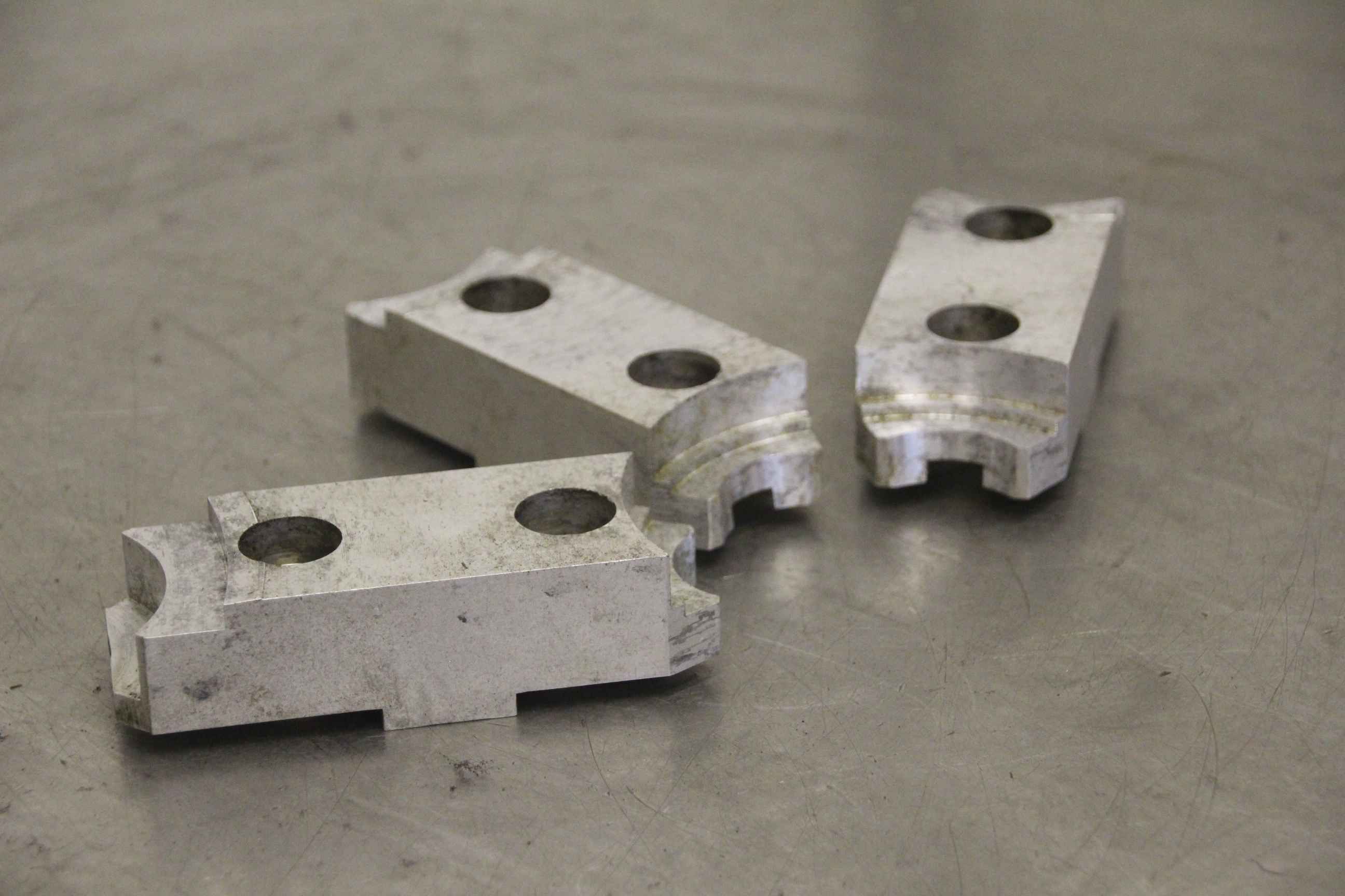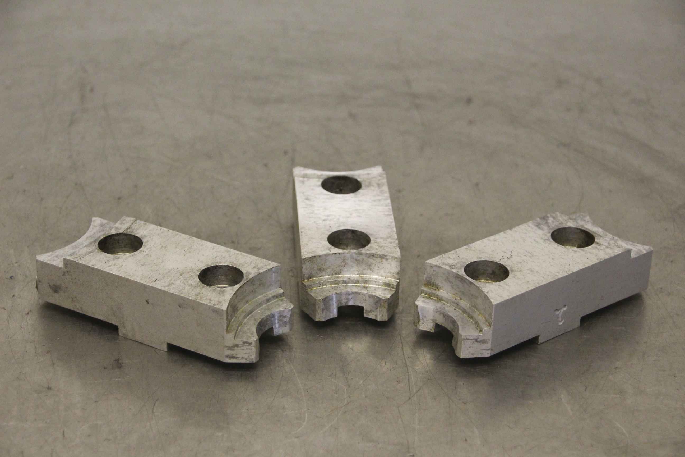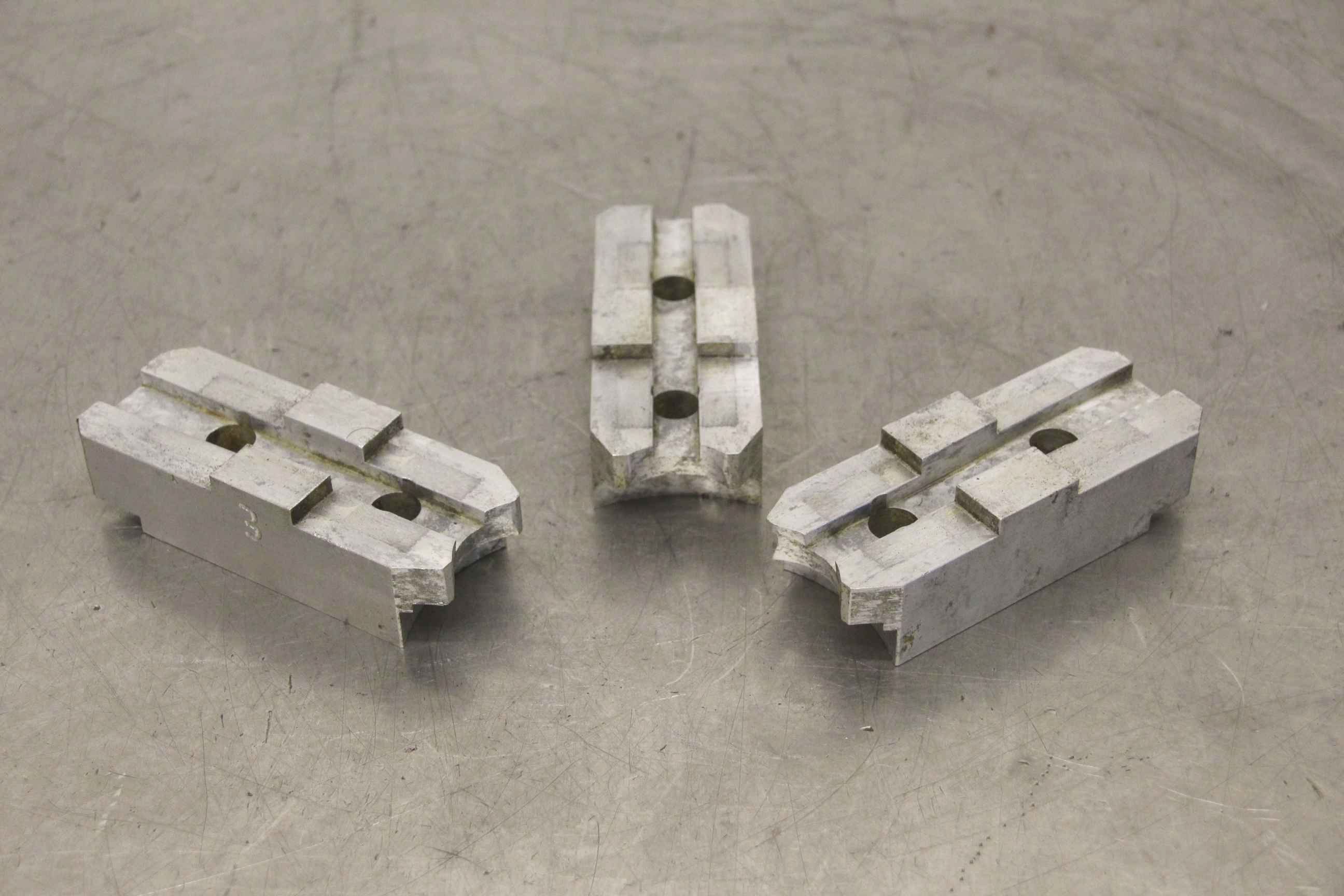 Interchangeable jaws, top jaws, three-jaw chucks, clamping jaws, step block jaws-Top jaws: soft clamping jaws 1 set = 3 pieces-Hole spacing: 54 mm-Width: 45 mm-Dimensions: 135/120/H30 mm-Weight: 0.9 kg