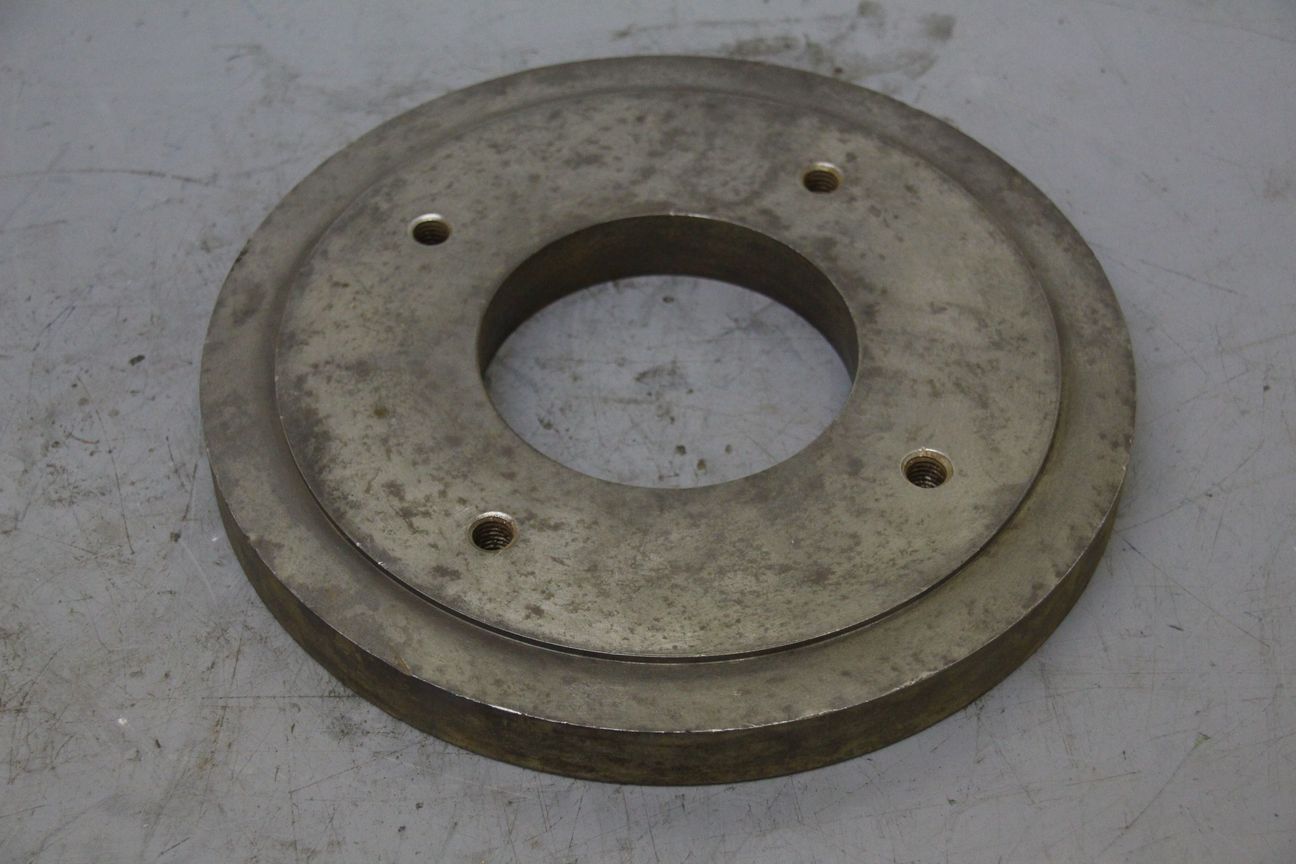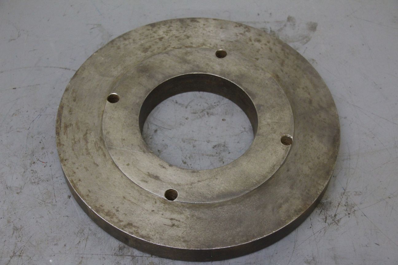 Chuck flange, flange mount, lathe chuck flange, drive flange -Muck flange for: three-jaw chucks, four-jaw chucks, faceplates -Outer diameter: 250 mm -Cone diameter: 106 mm -Bolt circle: Ø 4 x 160 mm -Weight: 8 kg