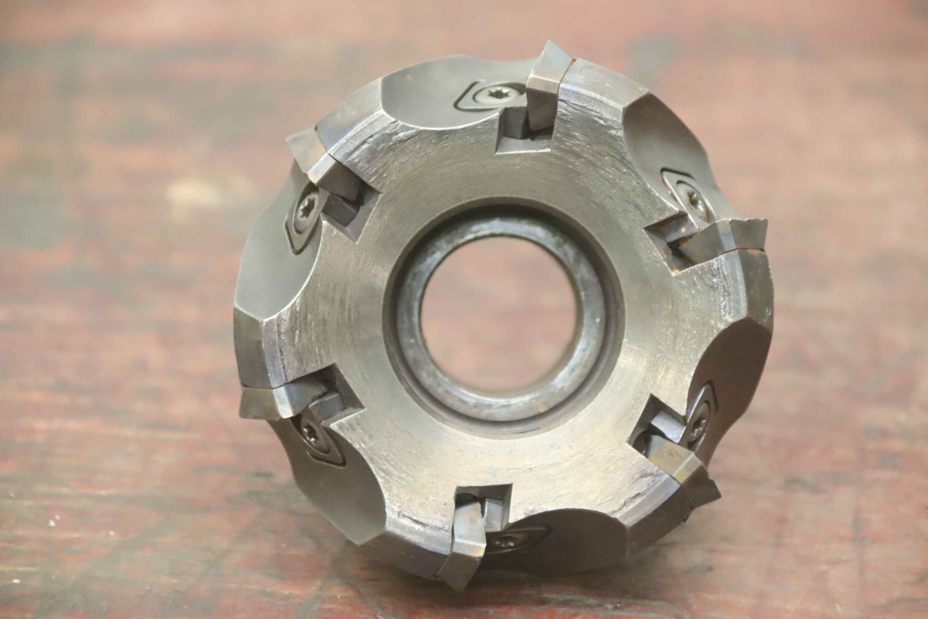Cutter head, milling holder, carbide cutter, indexable cutter, face milling head, milling head, cutter head shell milling cutter, face milling cutter-Handover in the current condition as inspected-Condition see pictures-Cutter head shell milling cutter: Ø 172 mm-Hole: Ø 40 mm-Bolt circle: Ø 155 mm-Total dimensions: Ø 172 x 75 mm-Weight: 7.2 kg