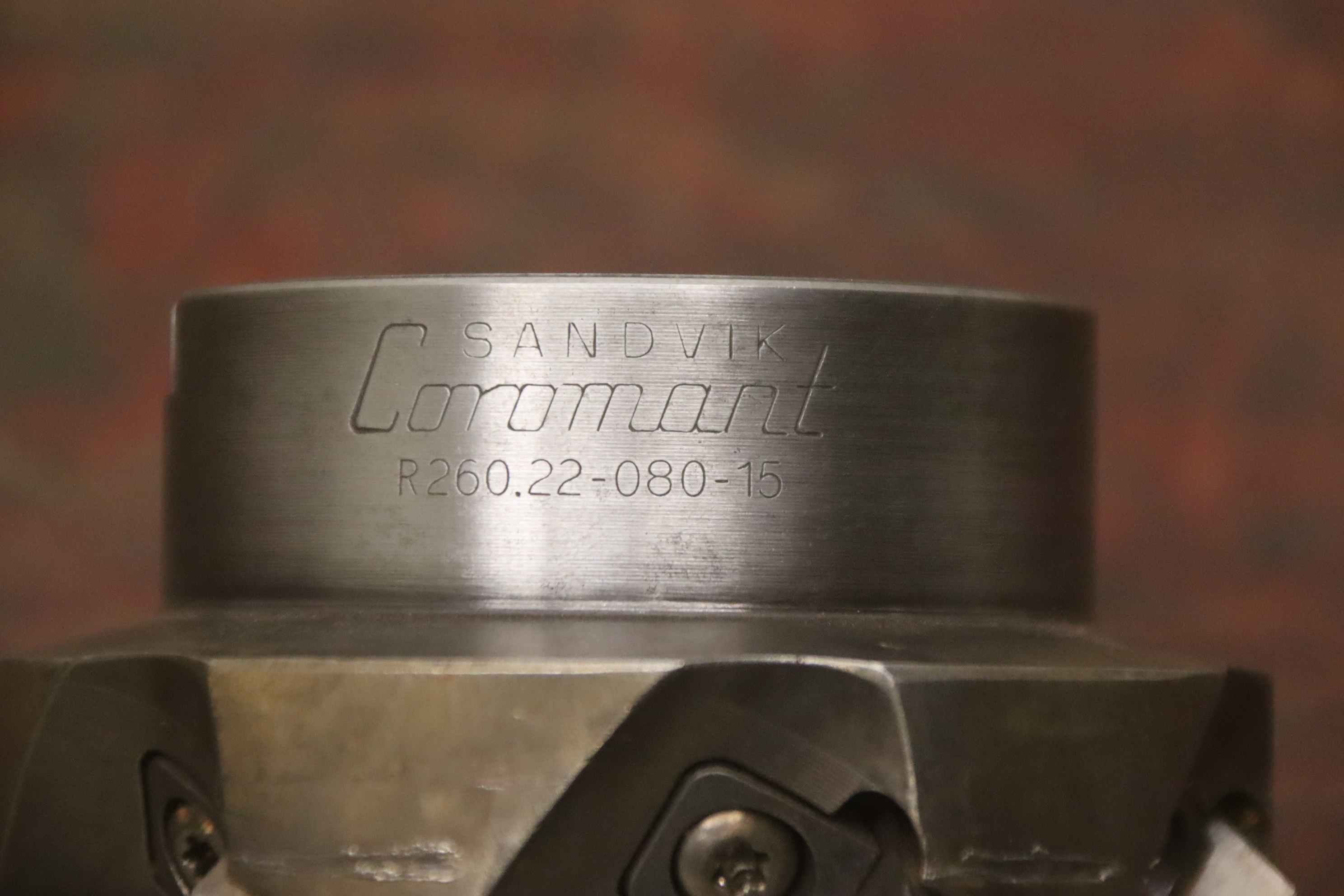 cutter head, milling holder, carbide cutter, indexable insert cutter, face milling head, milling head, cutter head shell milling cutter, face milling cutter, corner milling cutter-Manufacturer: Sandvik Coromant, cutter head milling cutter-Type: R260.22-080-15-Hole: Ø 27 mm-Dimensions: Ø 90 x 50 mm-Weight: 1.3 kg