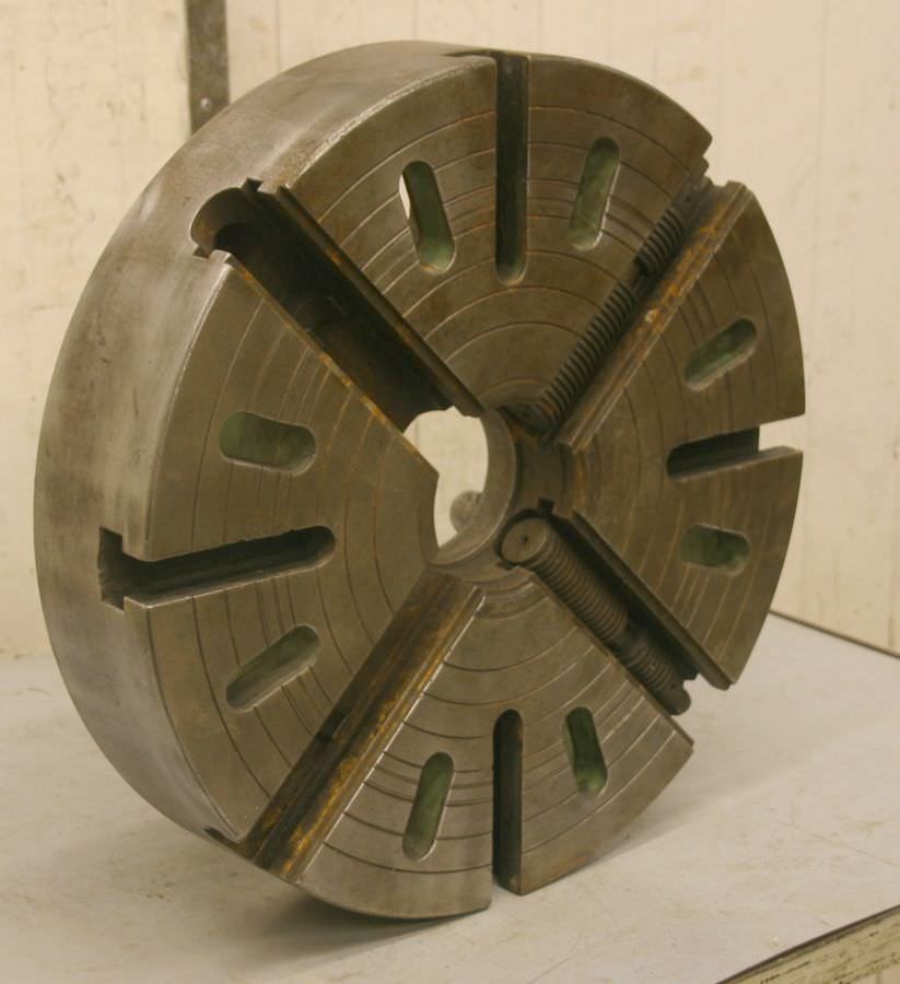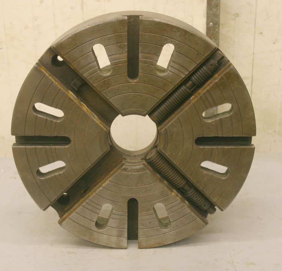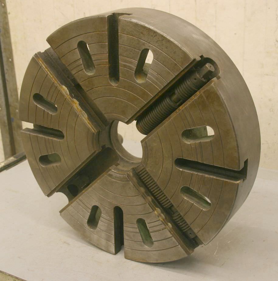 Faceplate, faceplate chuck, four-jaw chuck -Mouth size: Ø 500 mm -without: Baking -Camlock mount: Ø 196 mm short taper 11 -Bolt circle: Ø 204 mm -Weight: 80 kg