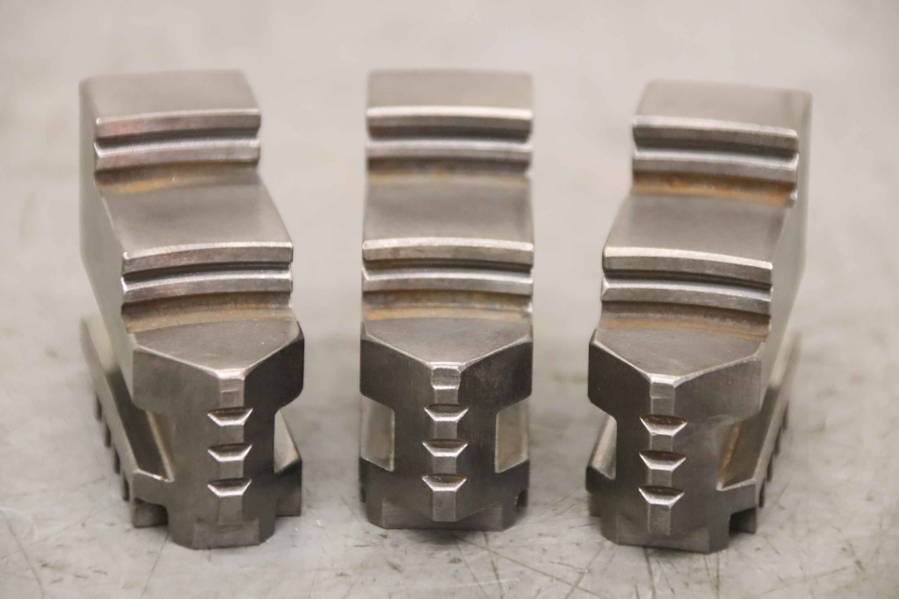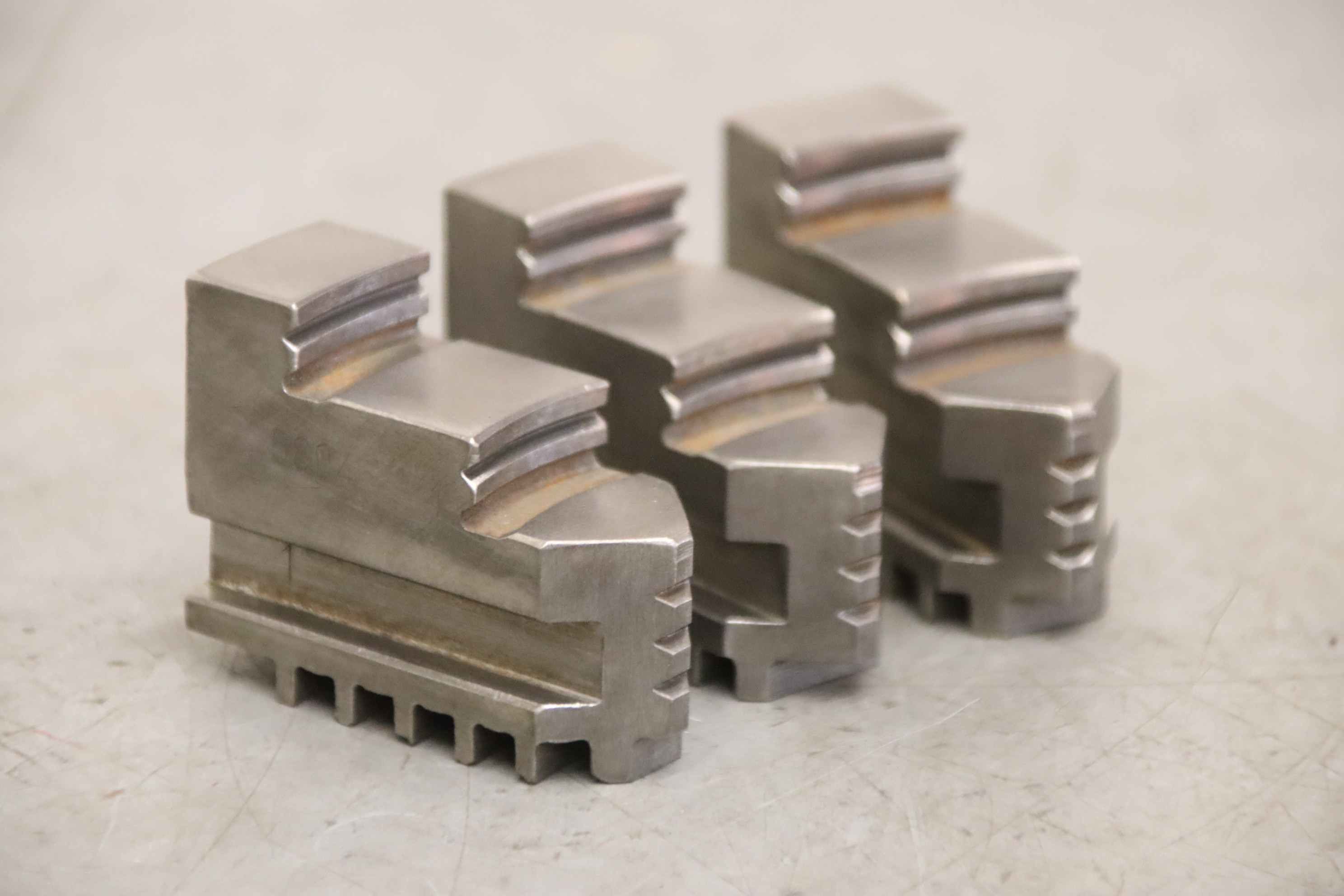 Interchangeable jaws, top jaws, three-jaw chucks, segment jaws, clamping jaws, step block jaws, step top jaws, block jaws-Interchangeable jaws: 3-piece top jaw set-Width: 30mm-Bore: Ø 9 mm, distance 38 mm-Total dimensions: 100/90/H50 mm-Total weight: 2.6 kg