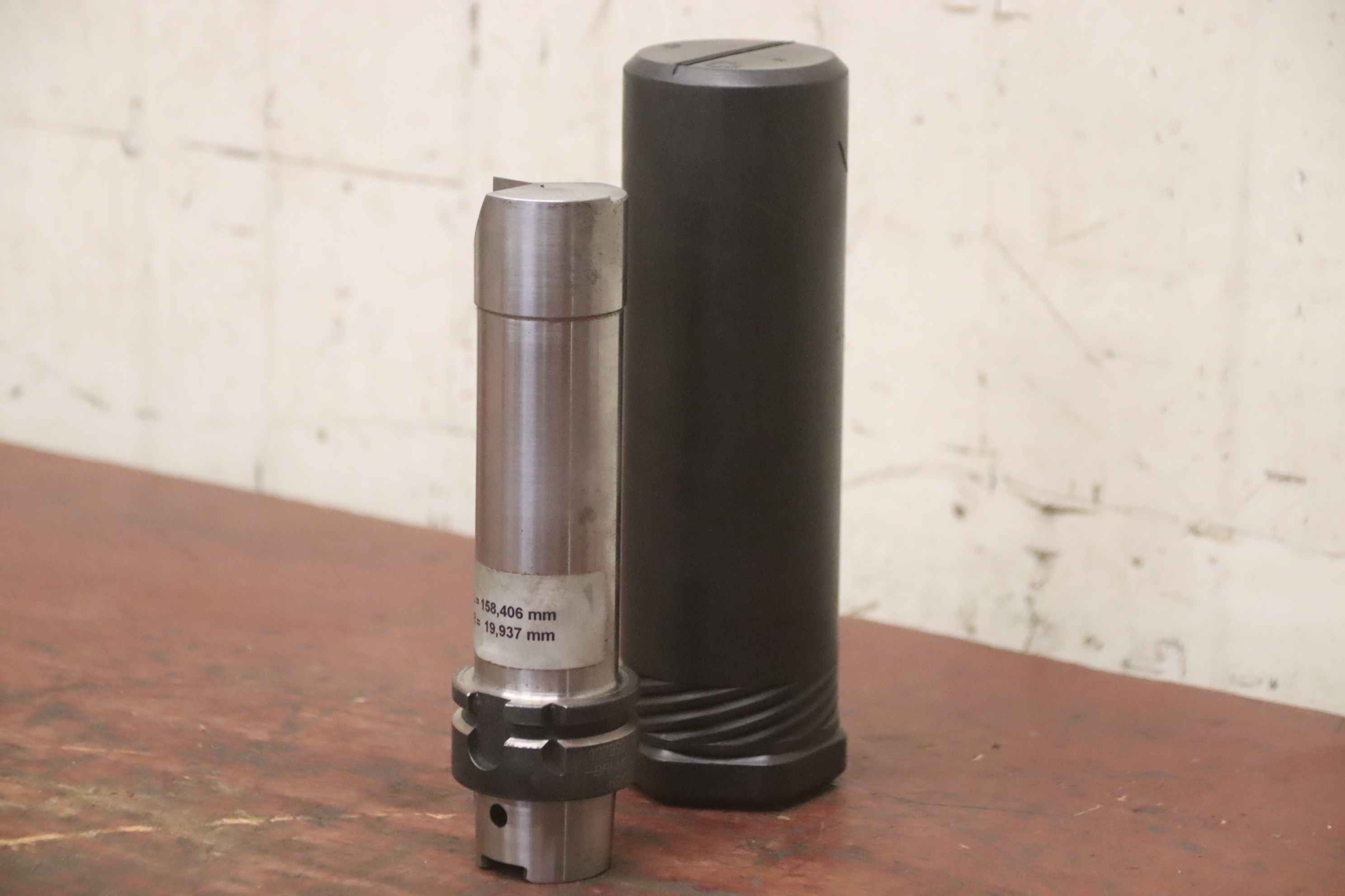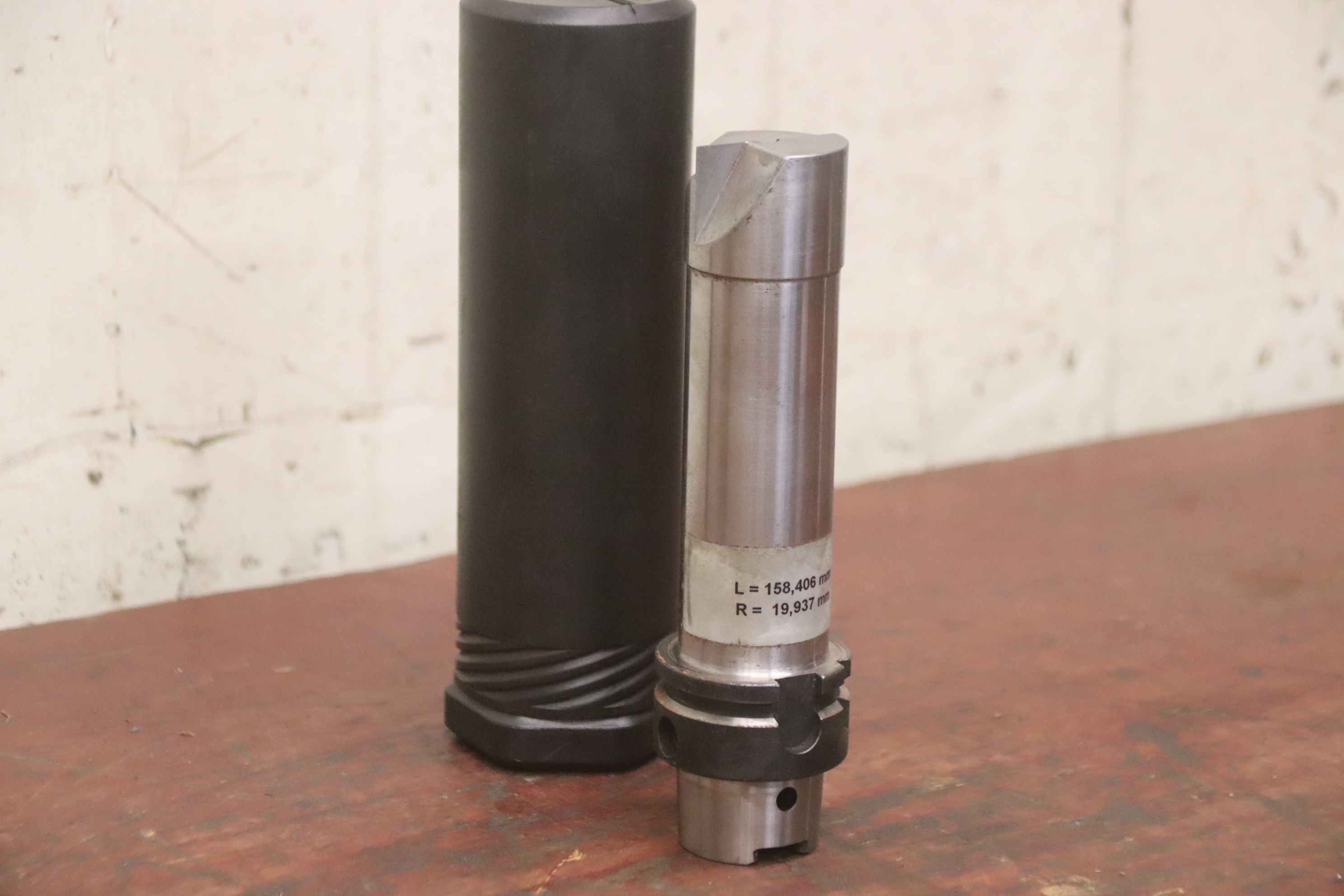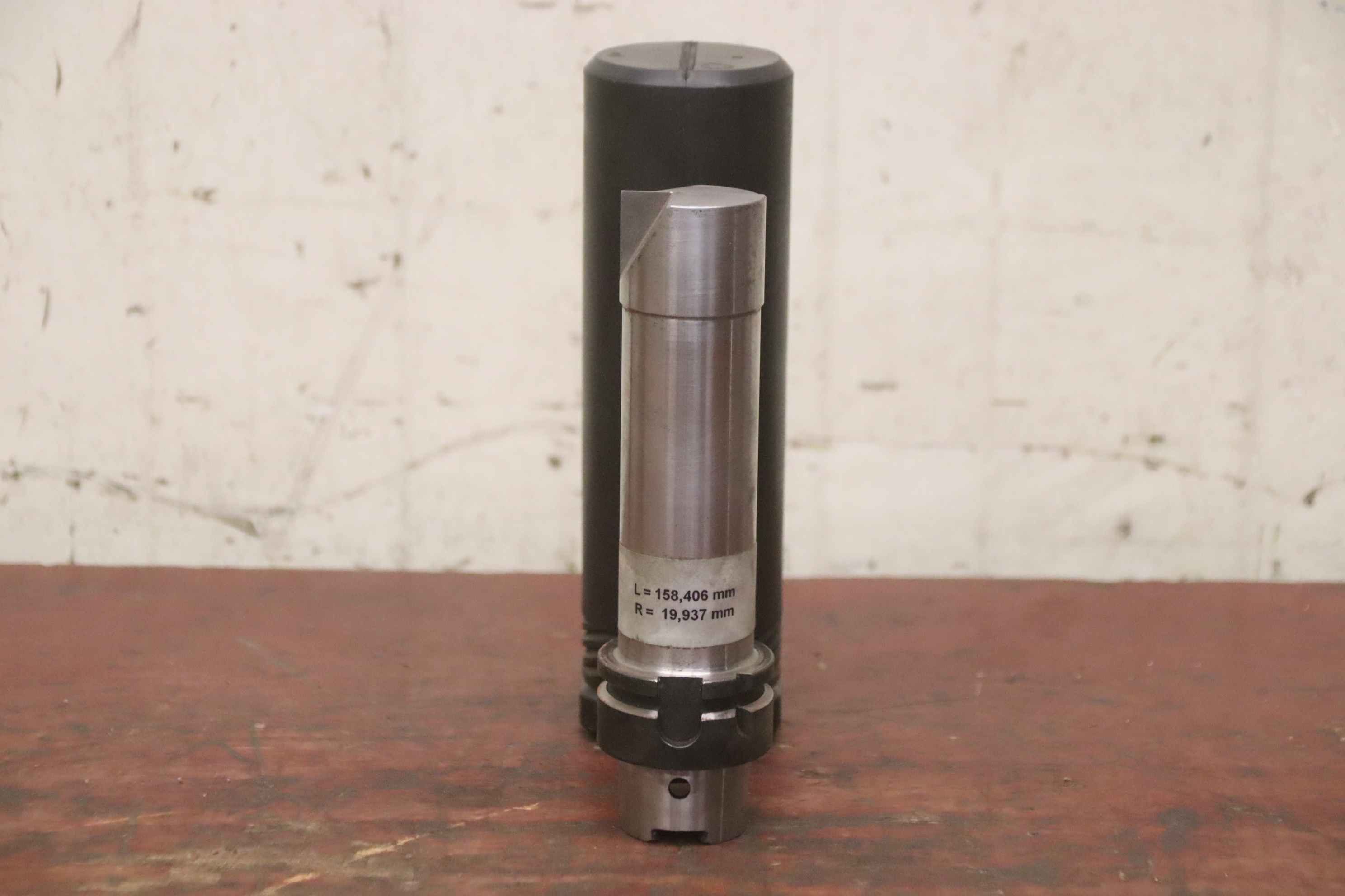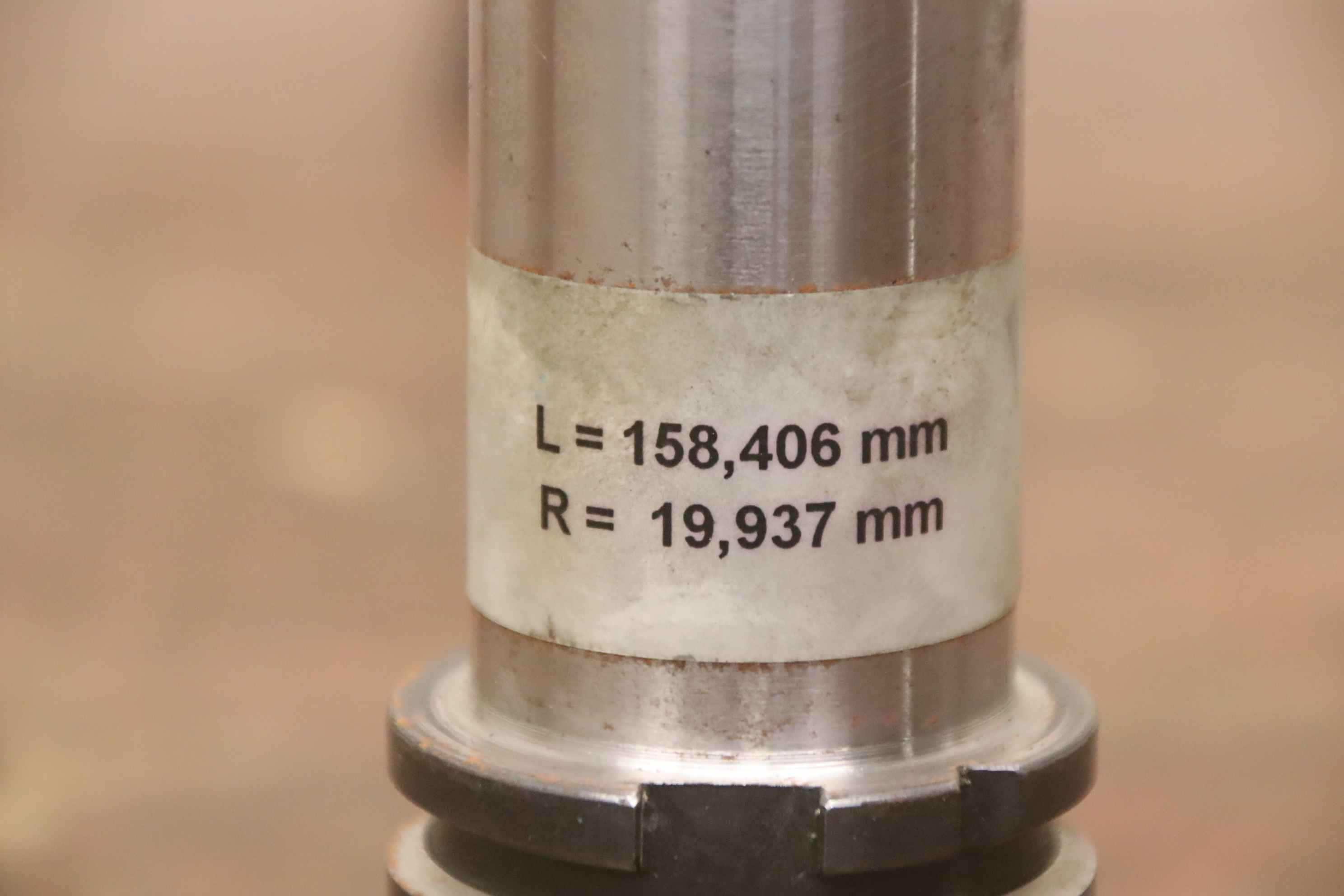 test mandrel, tool holder, milling holder, milling tool -Manufacturer: Bahmüller, boring bar -Length: L= 158.406 mm -Radius: R= 19.937 mm -Recording: HSK50 -Dimensions: Ø 50 x 183 mm -Weight: 1.6 kg