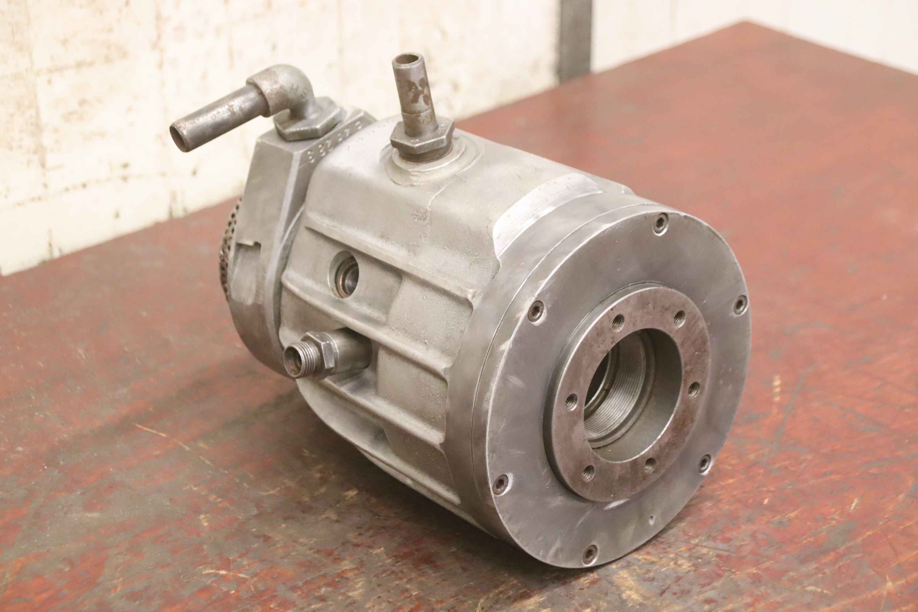 Clamping cylinders, hydraulic clamping cylinders, hydraulic clamps, pneumatic clamps, air cylinders, clamping cylinders for power chucks-Manufacturer: Röhm Gamet, pneumatic clamping cylinder for power chucks-Mounting: Thread M60-Bolt circle: Ø 88 mm / M8-Dimensions: see photos-Dimensions: 267/185/H235 mm-Weight: 18.2 kg
