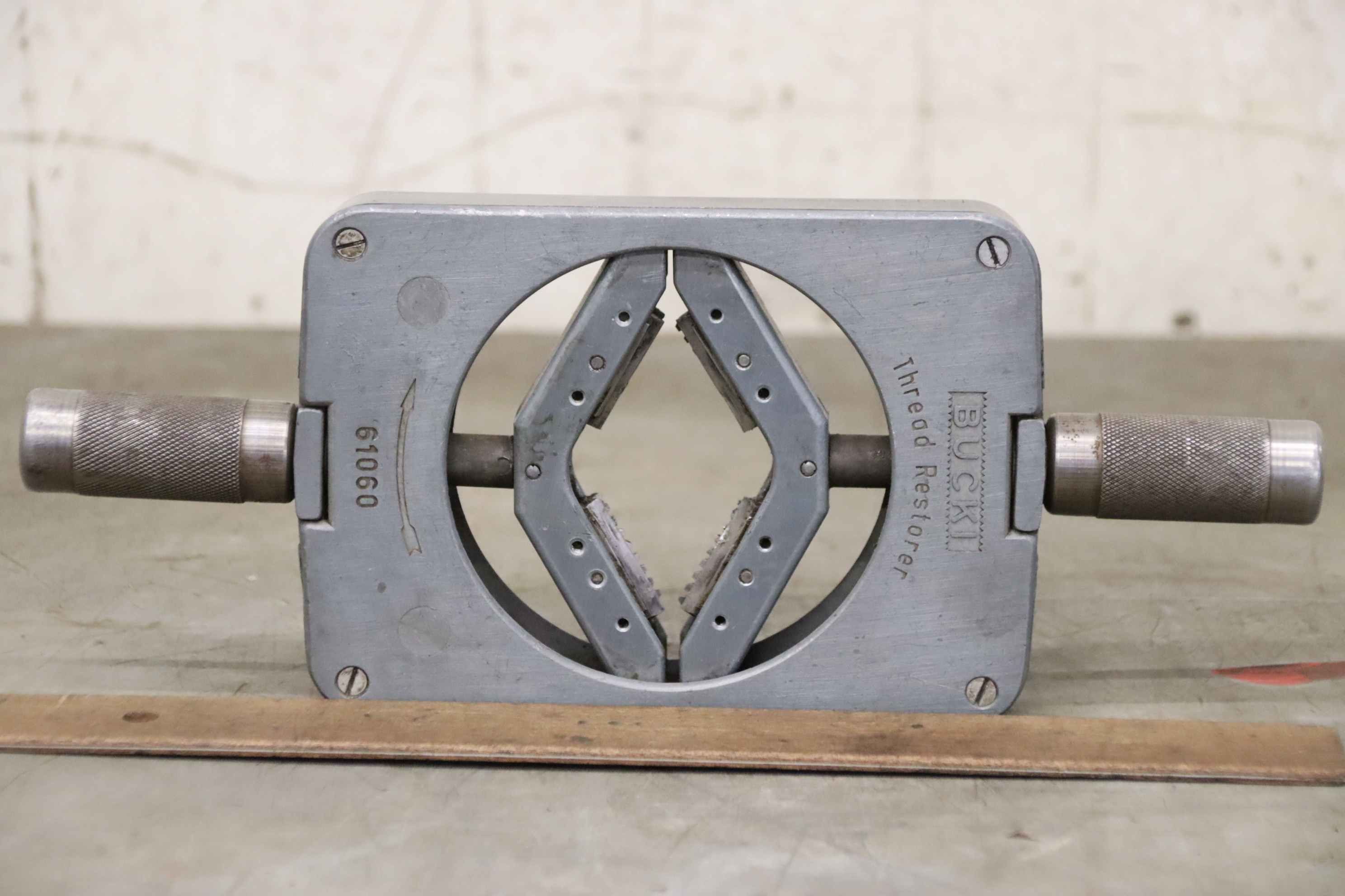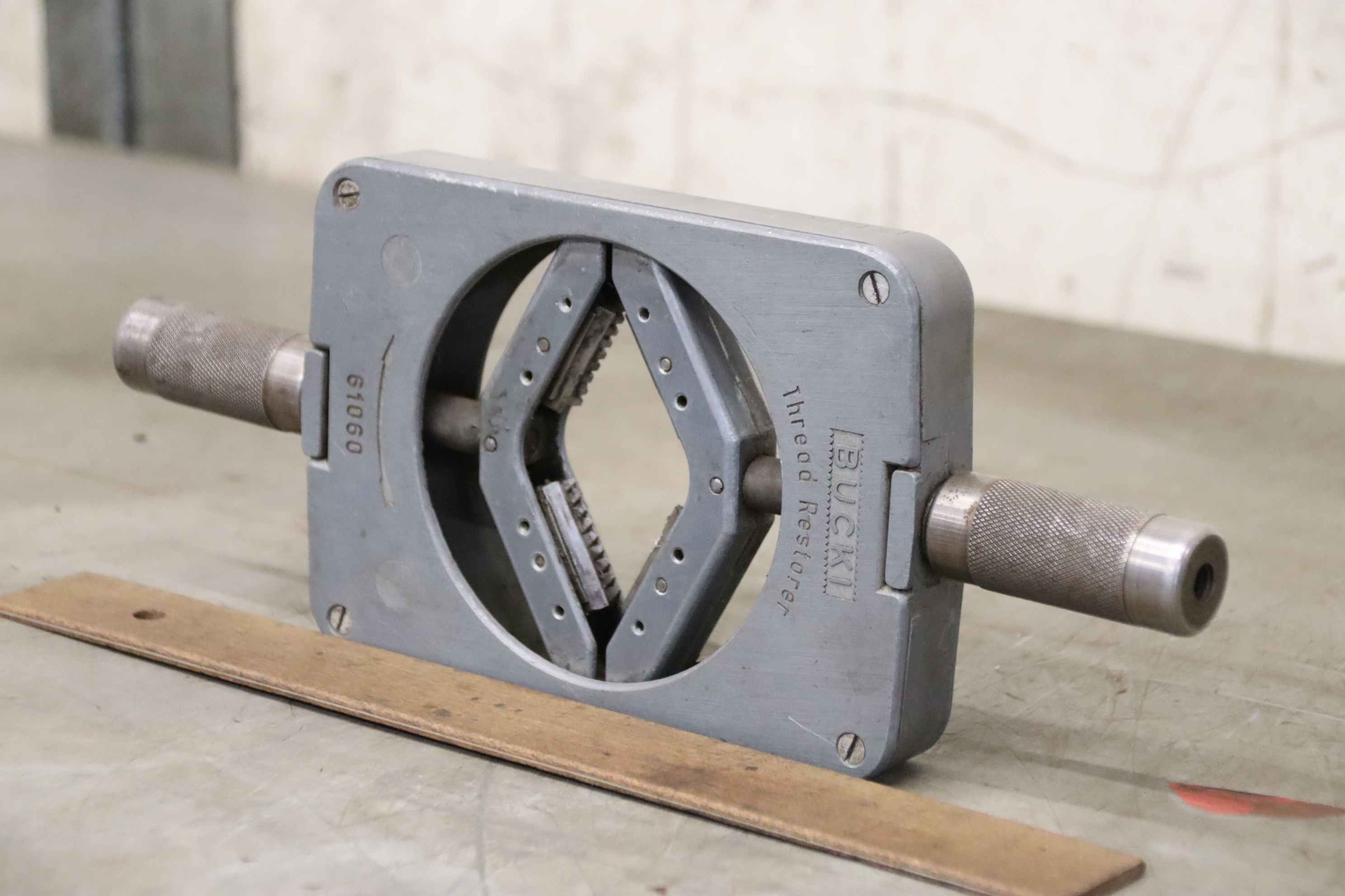 Thread cutting head with chaser jaws, thread cutting stock, die head, thread chaser-Manufacturer: Bucki, Thread Chase Thread Restorer-Type: 61060-Outer Diameter: 1 3/4 to 4-Dimensions: 350/125/27mm-Weight: 1,7 kg