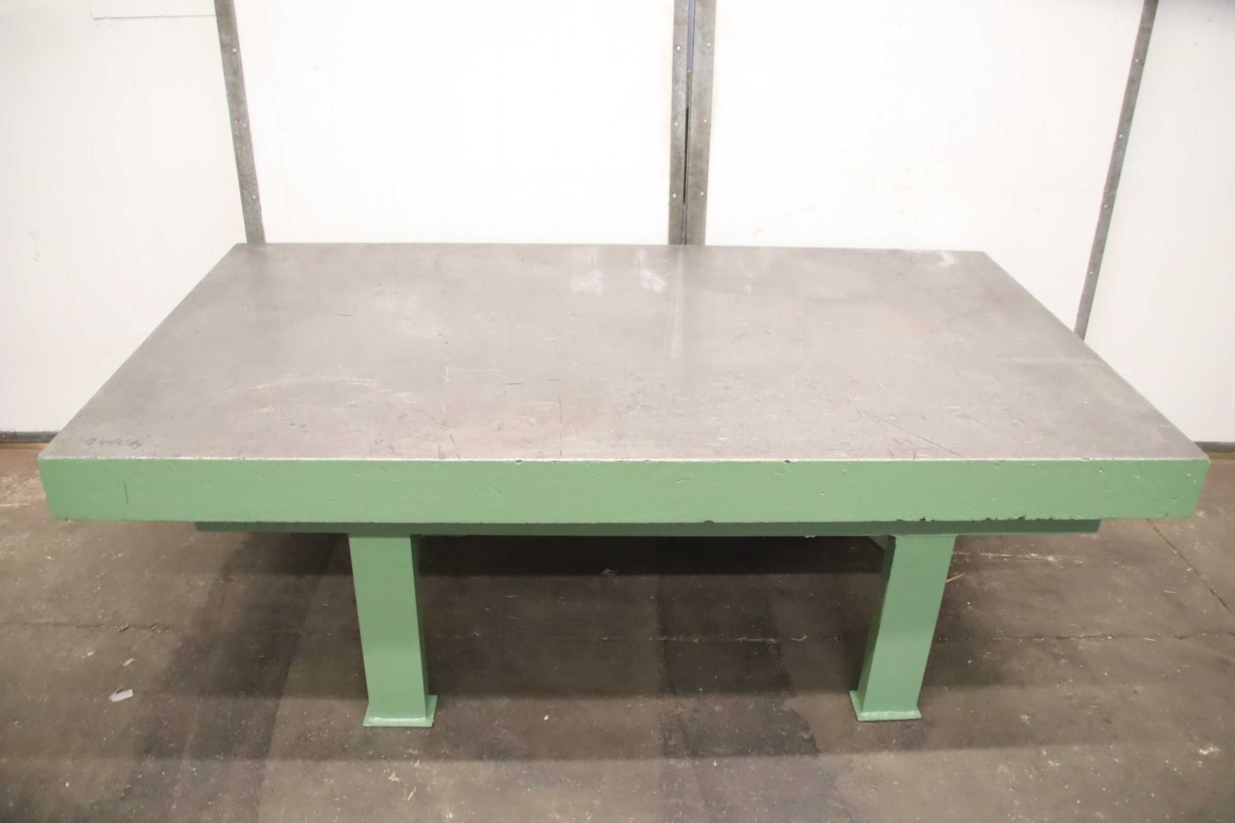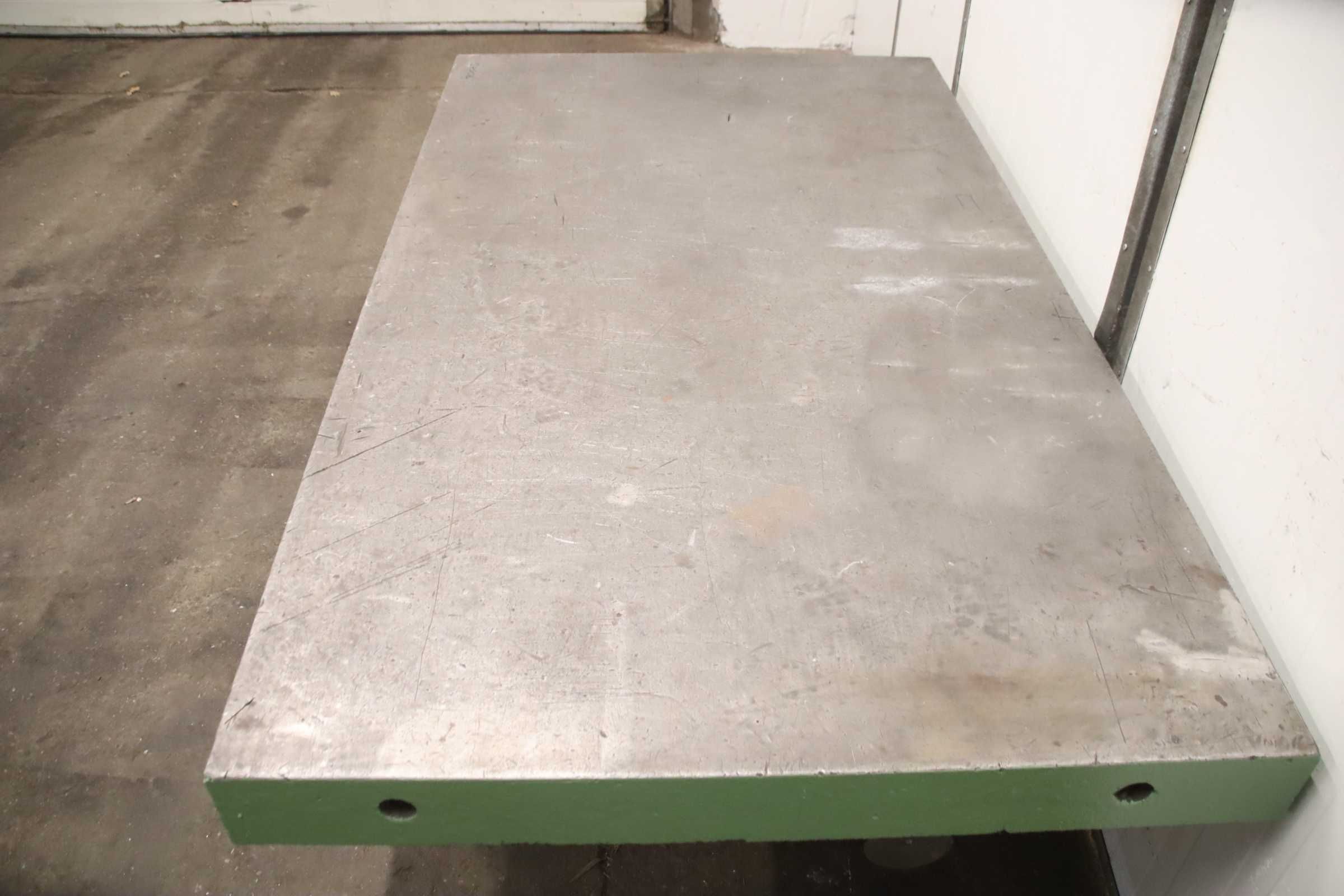 Clamping plate, marking-spotting plate, measuring plate, measuring table, welding table, welding table, straightening plate, marking plate, straightening table -Clamping plate: on solid base frame -Clamping surface: 2100 x 1200 mm -Table height: 740 mm -Plate thickness: 130 mm -Transport dimensions: 2100/1200/H740 mm -Weight: 2400 kg