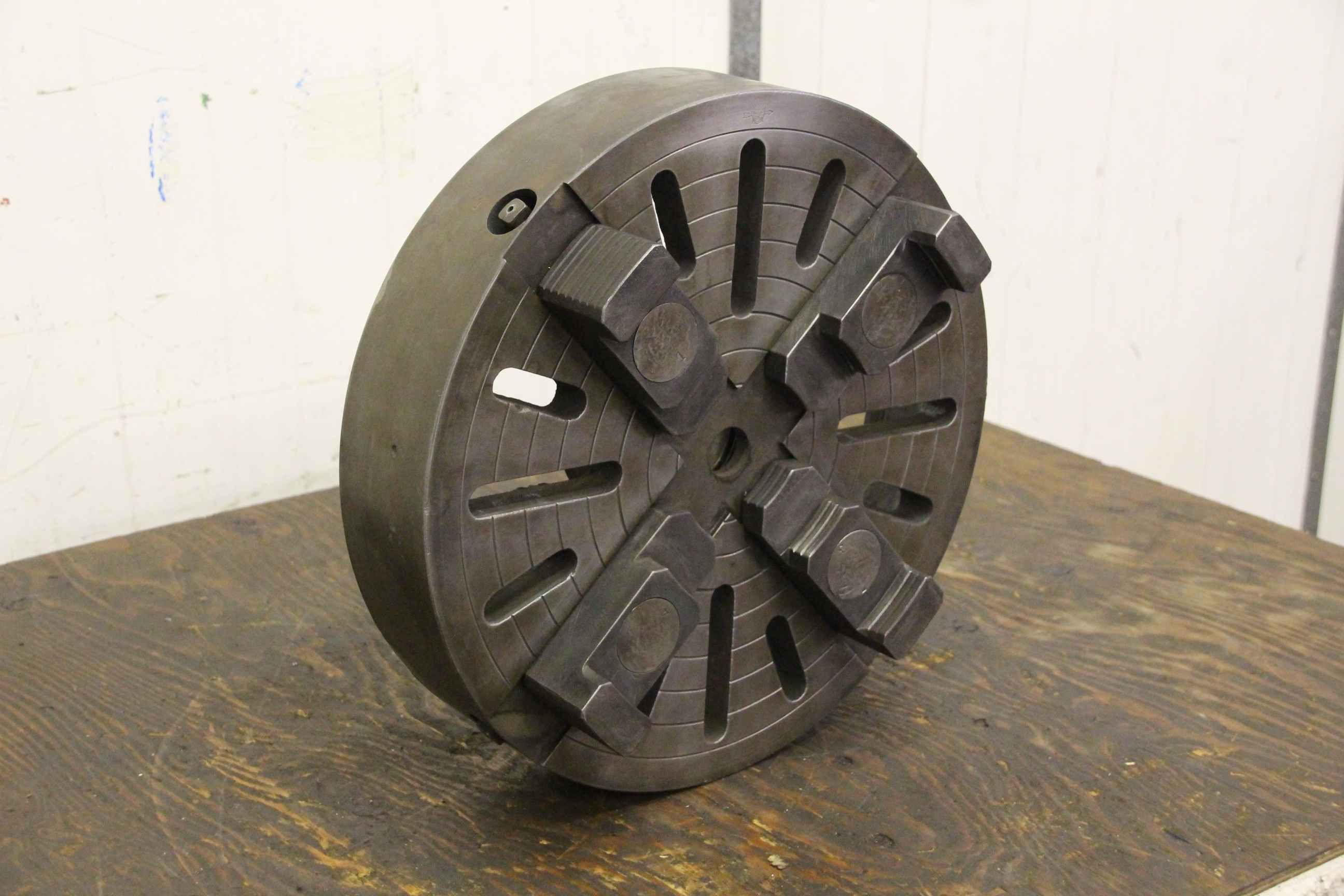 Face plate, face plate chuck, four-jaw chuck, facing chuck -Chuck size: Ø 600 mm -Through hole: Ø 136 mm -Hole circle: Ø 170 mm -Weight: 111 kg