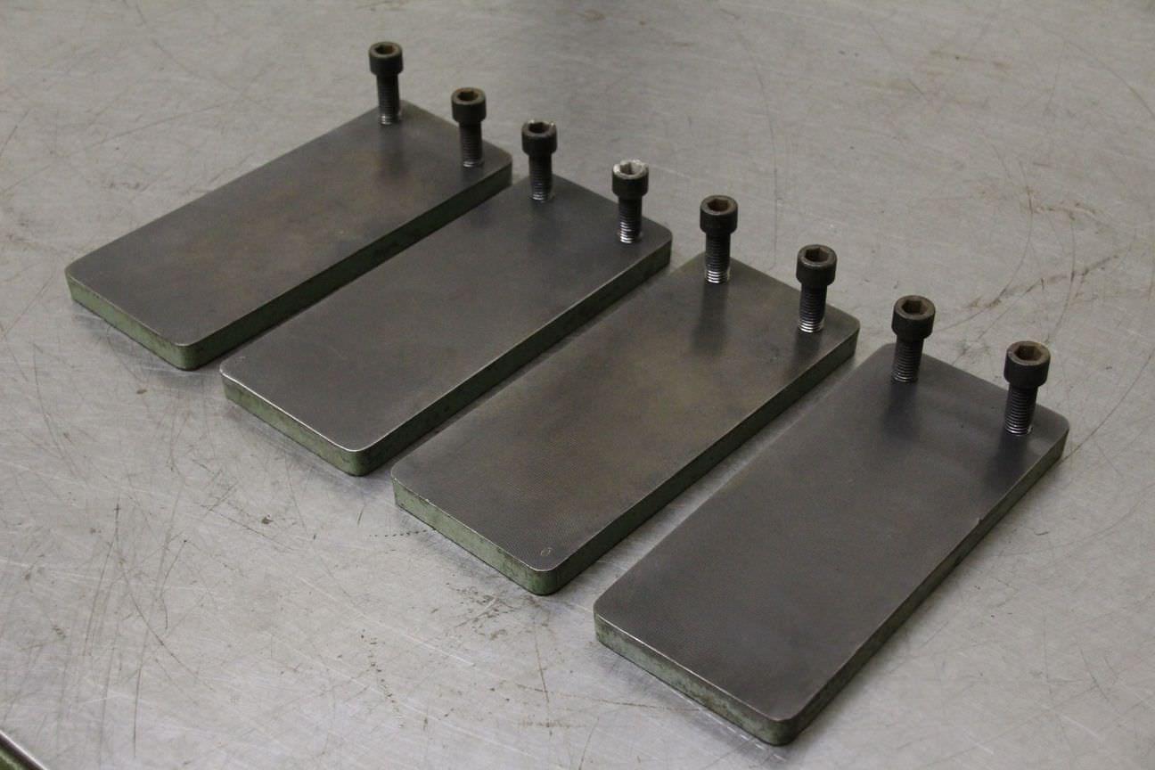 Clamping plate, milling support, plate field, welding table, welding table, plate boring mill, clamping angle, clamping cube, clamping devices, clamping supports, clamping tool, clamping box, clamping tower-Clamping block: for workpiece clamping or placing material under it-Width: 94 mm-Length: 220 mm-Height: 15 mm-Number: 4x milling support available-Price: complete-Weight: 4.7 kg