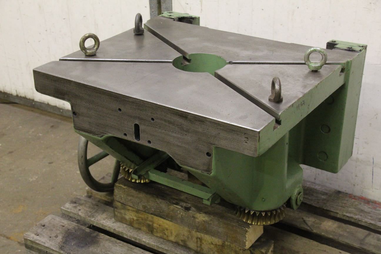 Rotary table, rotary indexing table, dividing head, dividing head -Clamping surface: Ø 320 mm -Bore center: Ø 25/40 mm -Height: 110 mm -Groove width: 14 mm -without transport hook -Dimensions: 540/470/H200 mm -Weight: 64 kg