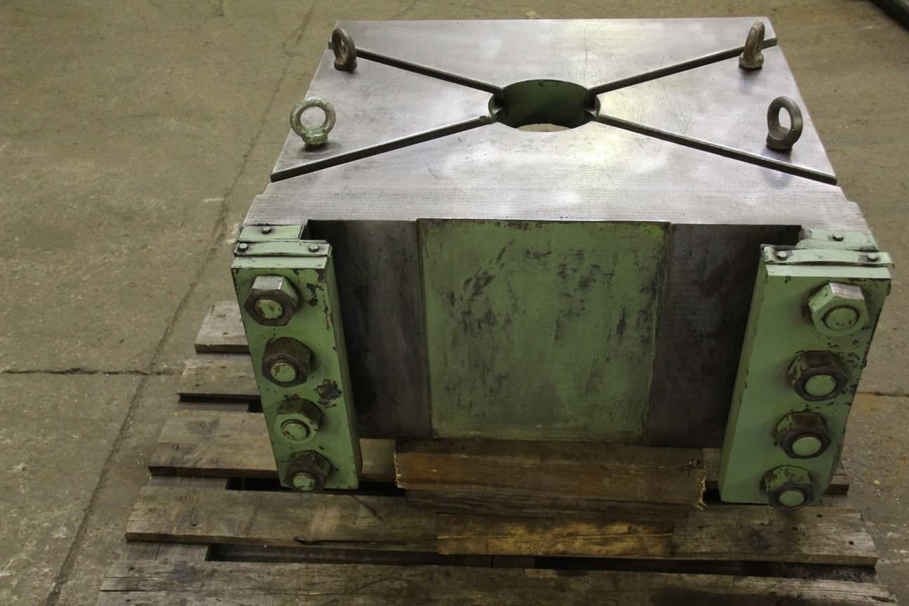 Clamping angle for workpiece clamping, eccentric press-The clamping angle comes from: an eccentric press-Manufacturer Heilbonn Type: REPV60-Clamping surface: 600 x 720 mm-Plate thickness: 75 mm-Groove: mm-Surface: milled-Dimensions: 735/900/H545 mm-Weight: 532 kg
