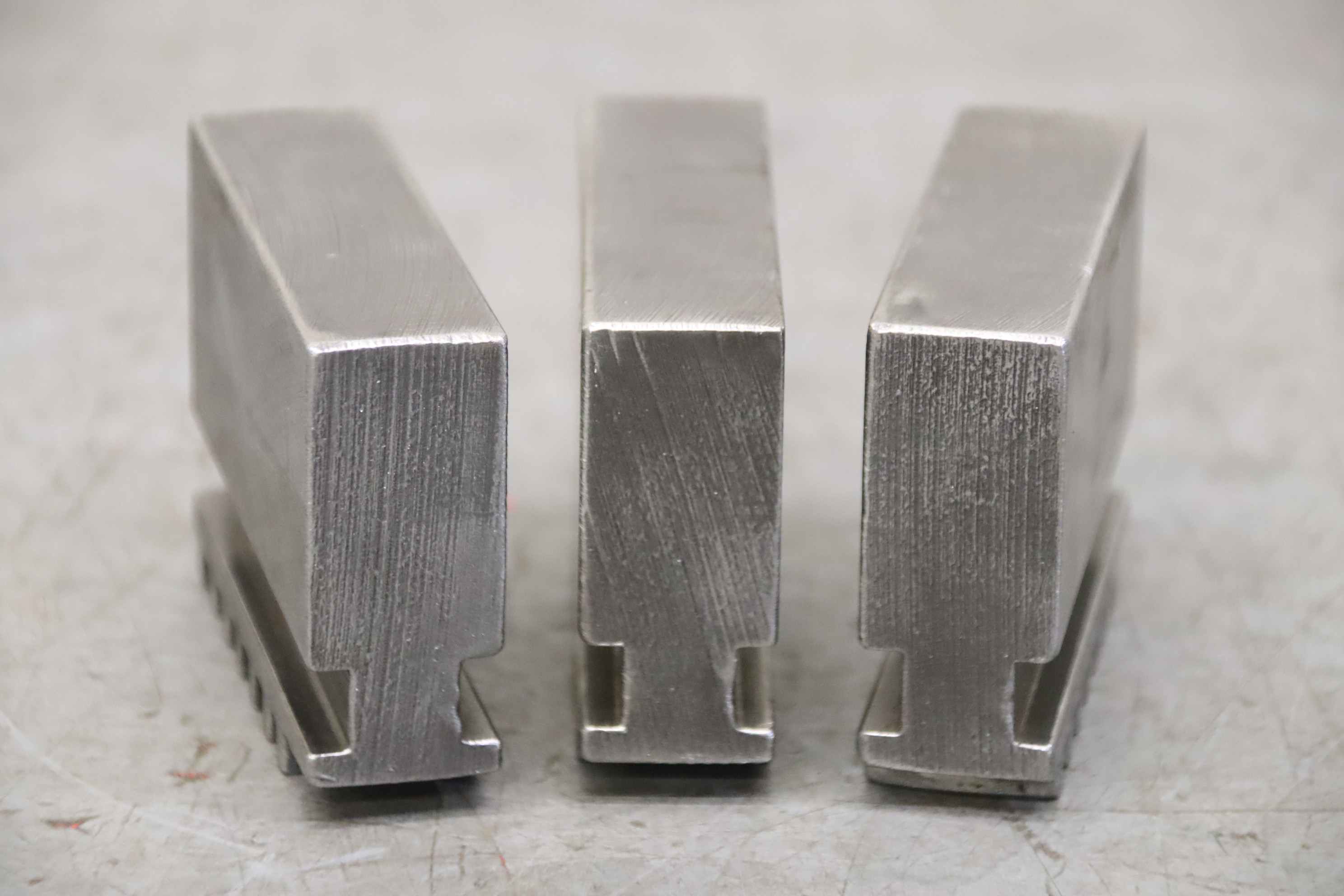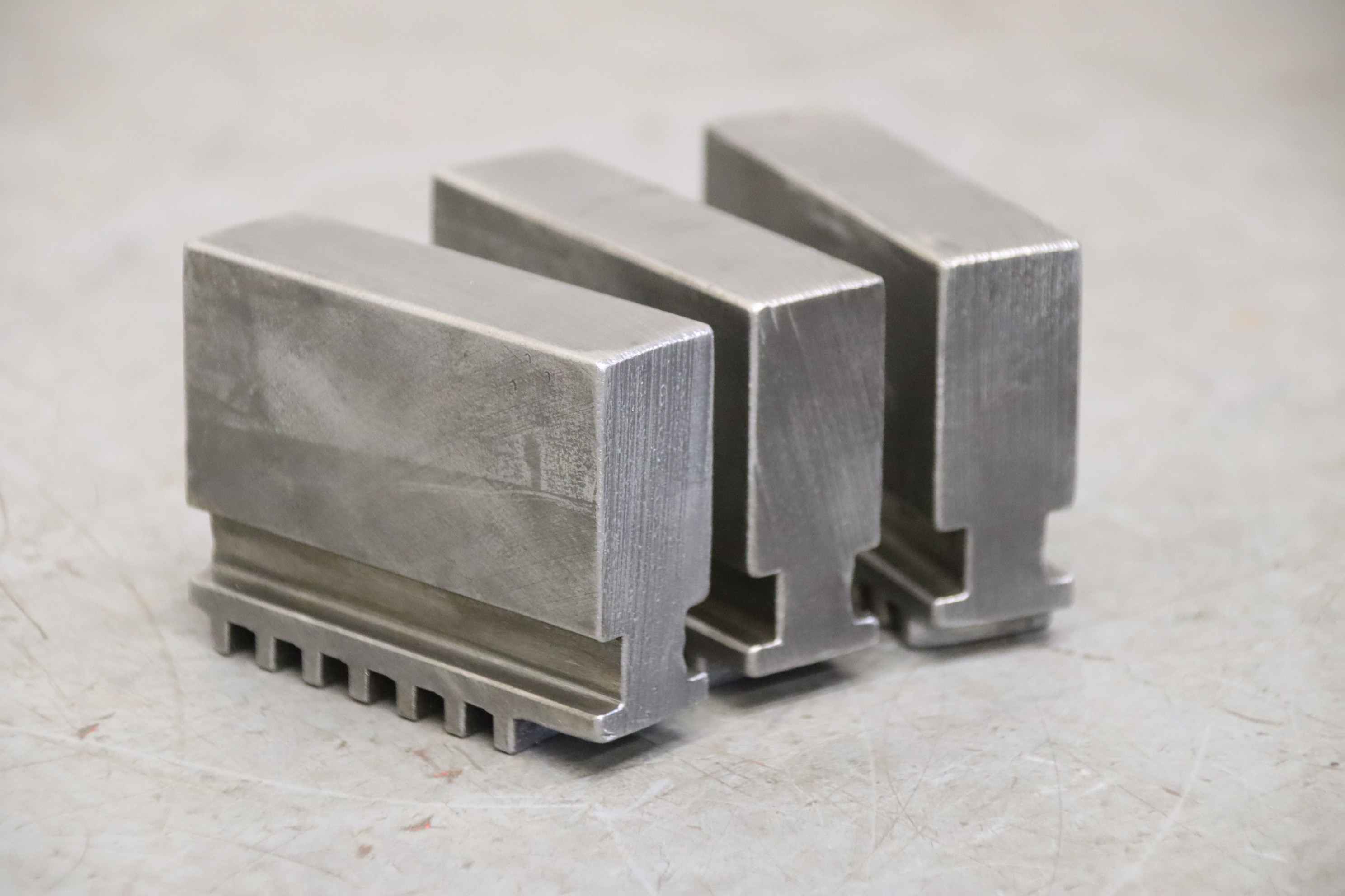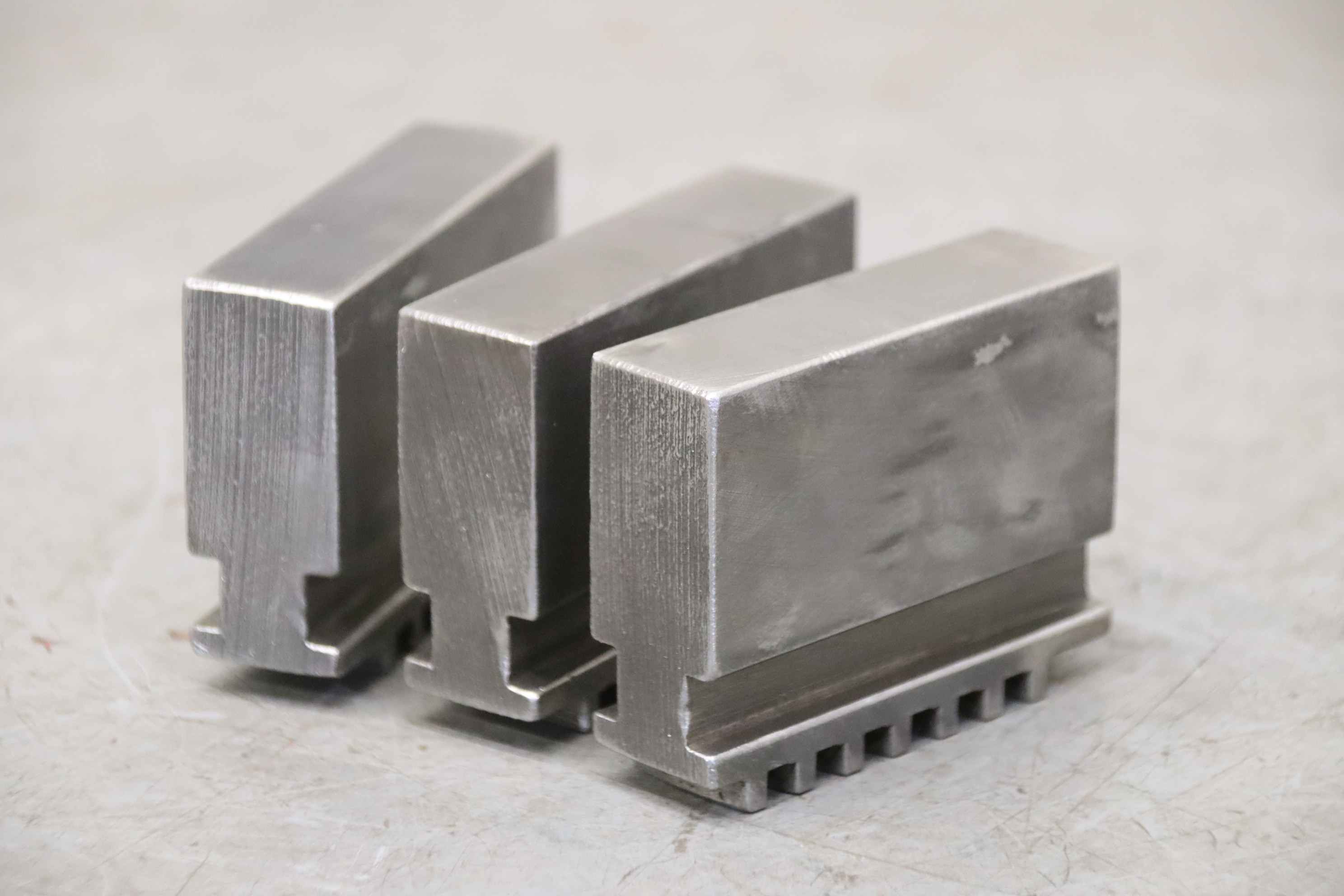 Interchangeable jaws, top jaws, three-jaw chucks, segment jaws, clamping jaws, step block jaws, step top jaws, block jaws, base jaws-Top jaws: Jaw set for three-jaw lathe chucks-Jaw width: 22 mm-Dimensions: see photo technical. drawing-Total dimensions: 75/67/H58 mm -Total weight: 1.9 kg