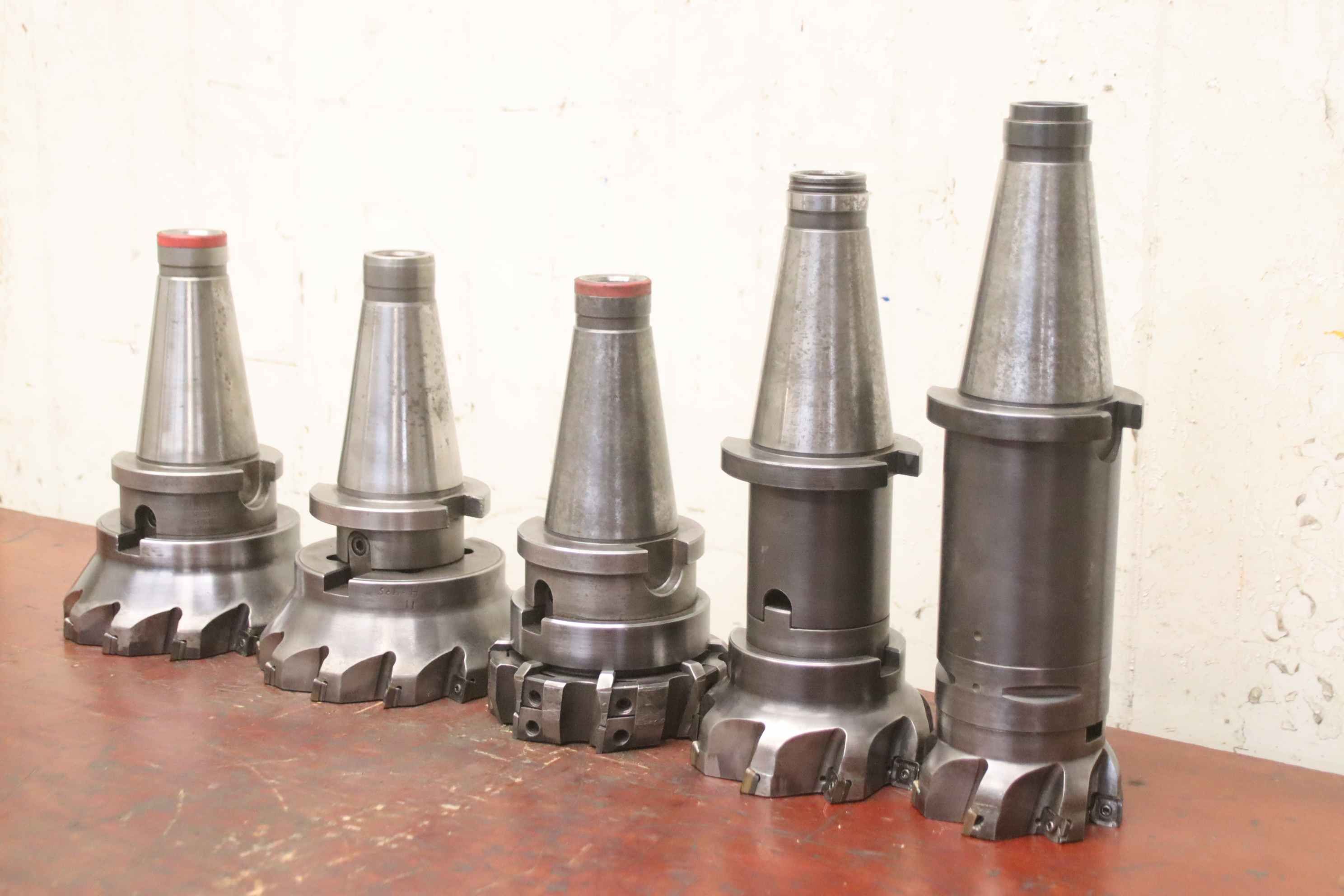 cutter head, milling holder, carbide cutter, indexable insert cutter, face milling head, milling head, cutter head shell milling cutter, face milling cutter, corner milling cutter-Manufacturer: Gewefa Sandvik Coromant, face milling cutter head 5 pieces-Type: 1x Ø100 / 2x Ø125 / 2x Ø160 mm different versions, see photos-Adapter: SK50x40x40-Delivery/Price: complete-Transport dimensions. 280/270/H230mm-Weight: 40 kg