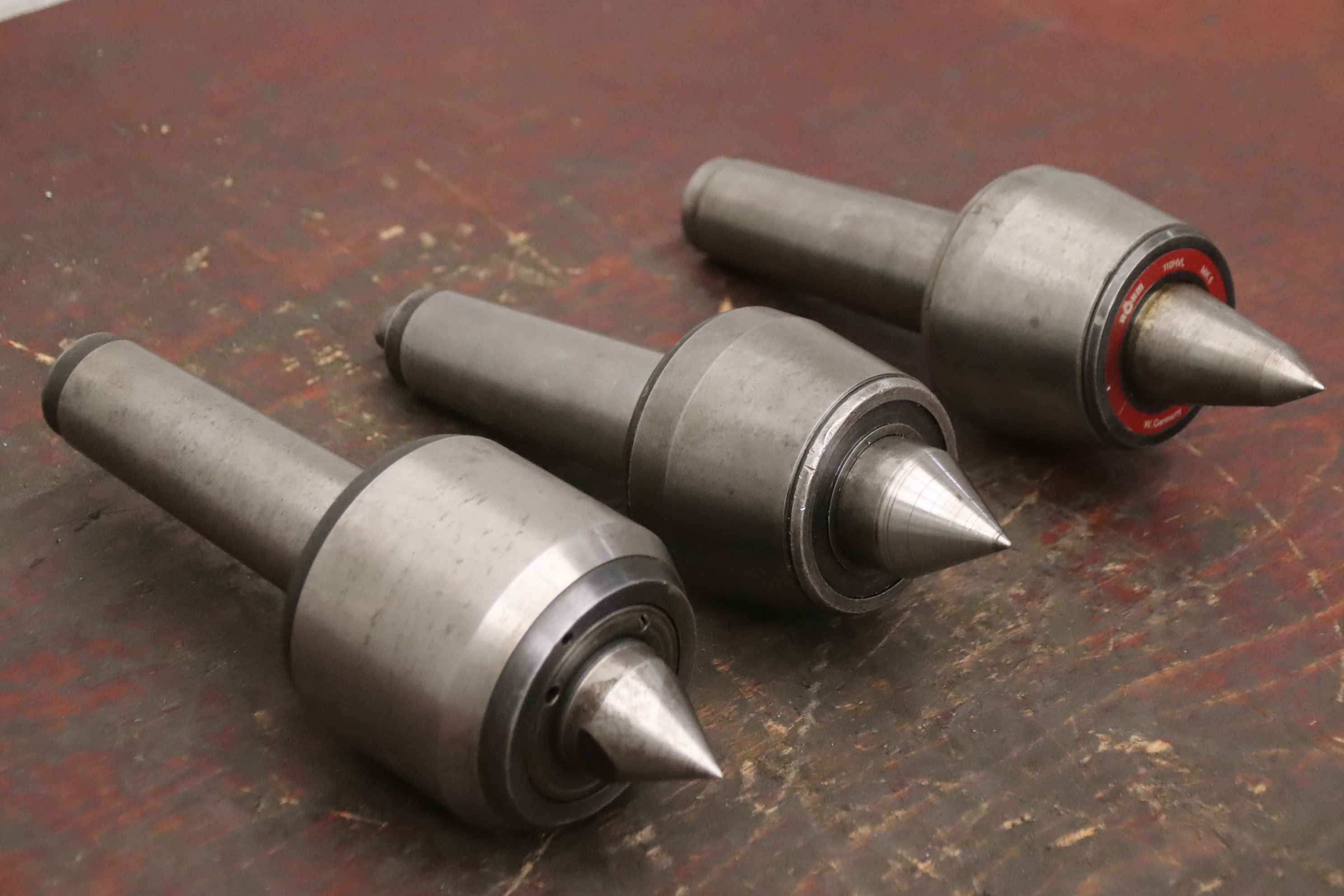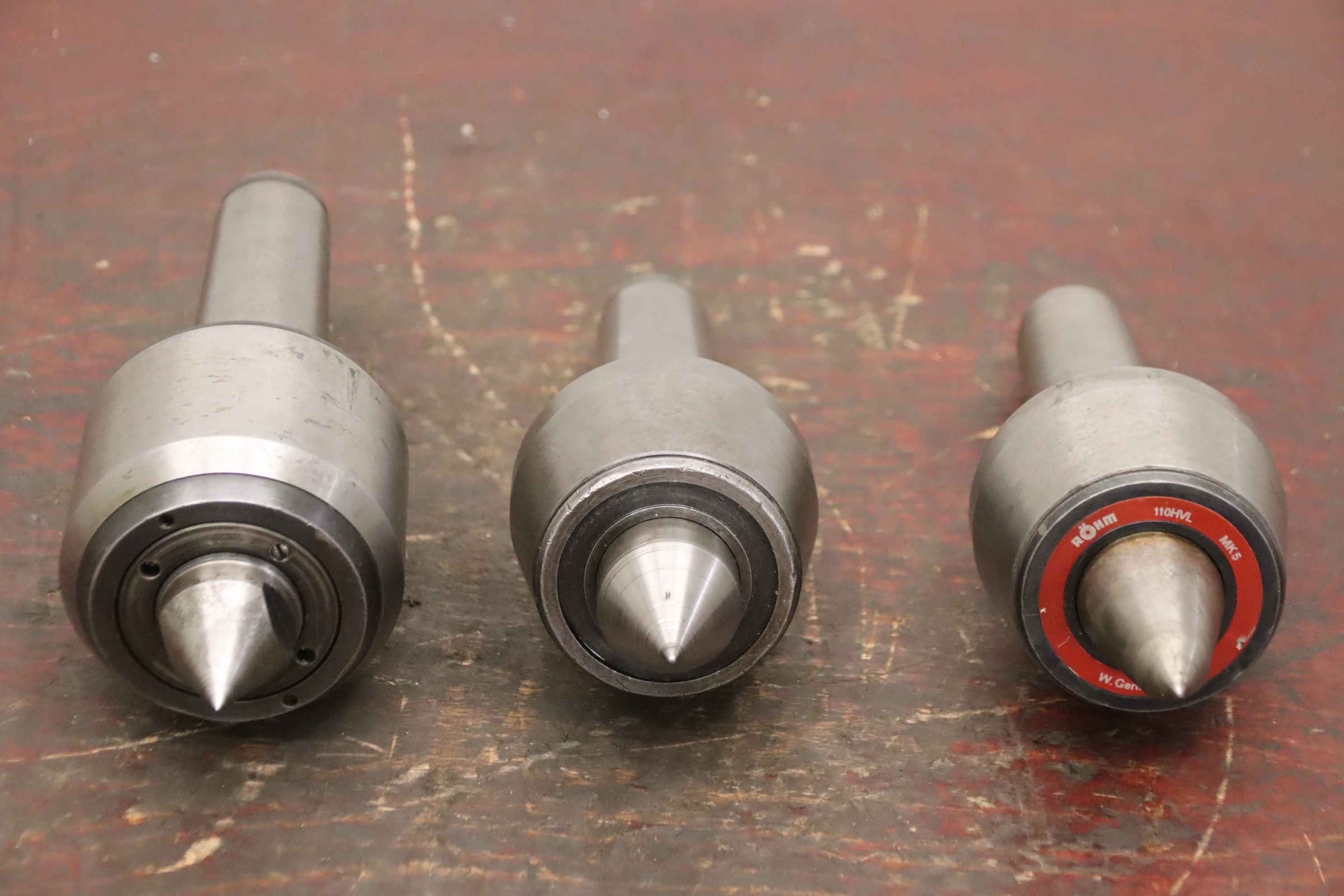 live center, live center, live morse taper, live center, live lathe center, live center, centering cone-Manufacturer: Röhm / unknown, rotating centering points 3 pieces-Type: Röhm 110HVL MK5 / 2x without type designation-Recording: MK5-Price/Delivery: complete-Transport dimensions: 280/270/H95 mm-Total weight: 14.3 kg