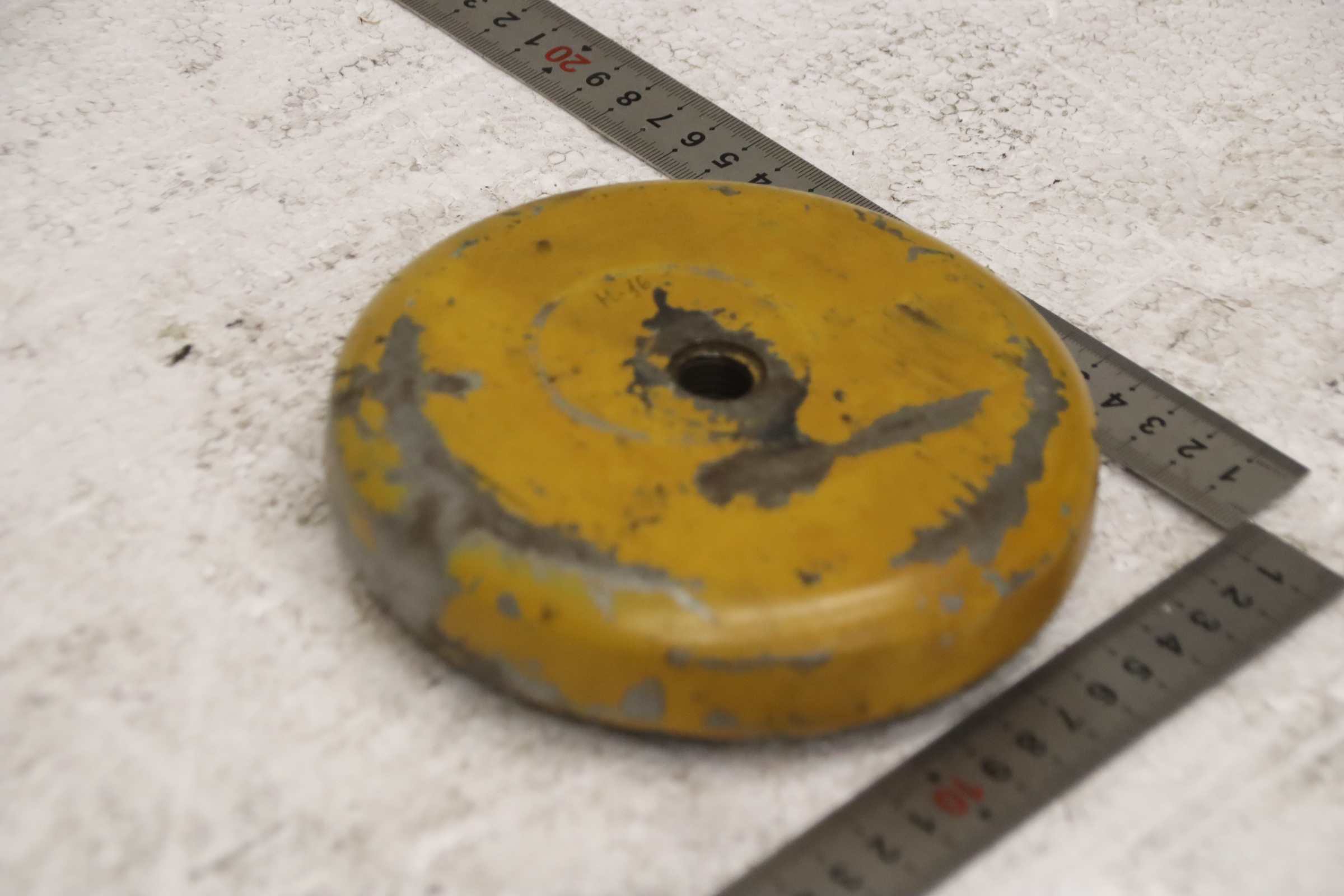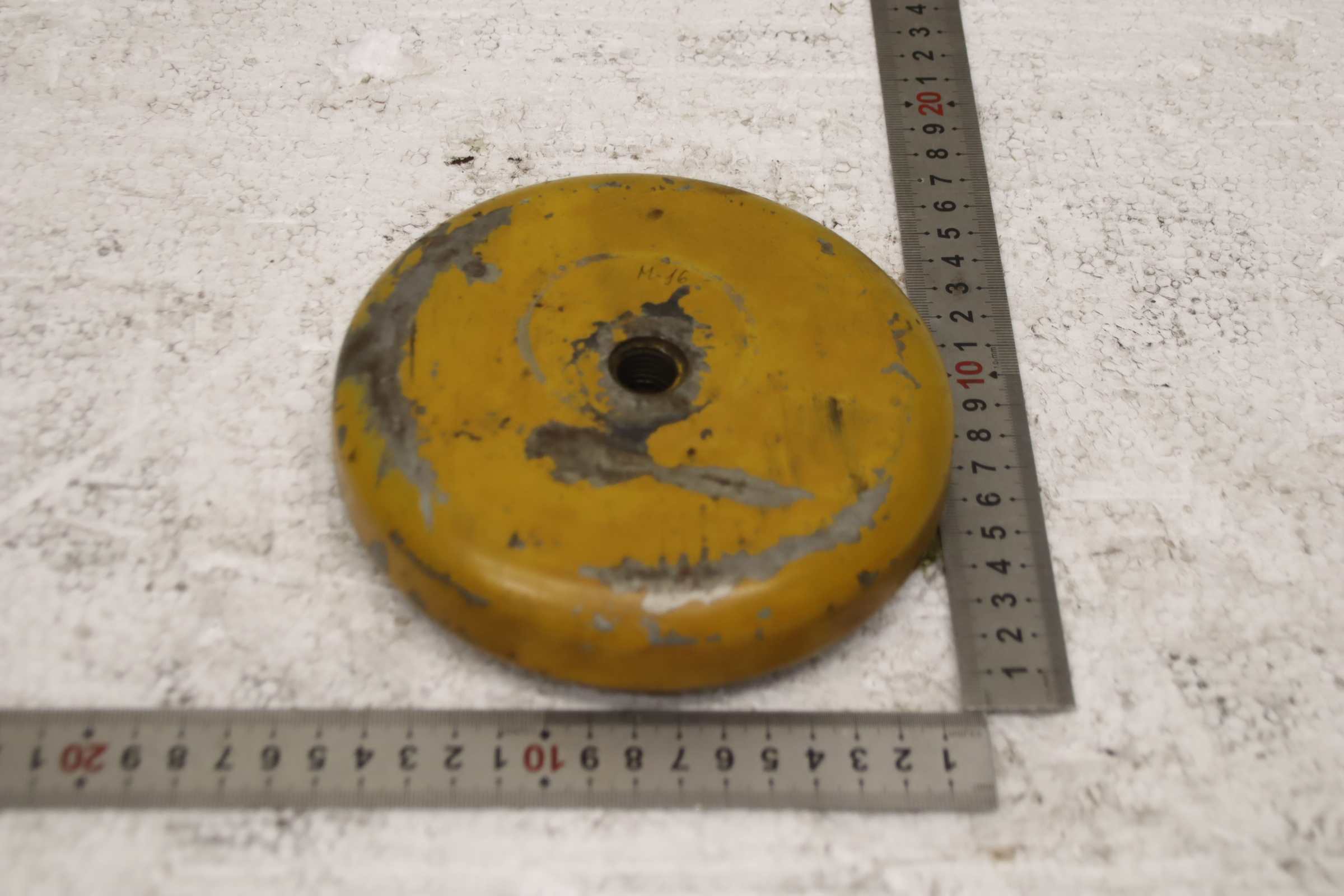 Fixators, leveling units, leveling elements, machine foot, machine feet, leveling shoes, machine foundation, leveling shoe, wedge shoe, machine support, leveling foot, spring elements -Spring element: for machine tools and systems Ø 150 mm -Mounting hole: M16 -Quantity: 1 piece available -Dimensions: Ø 150 x 40 mm -Weight: 1.1 kg/piece