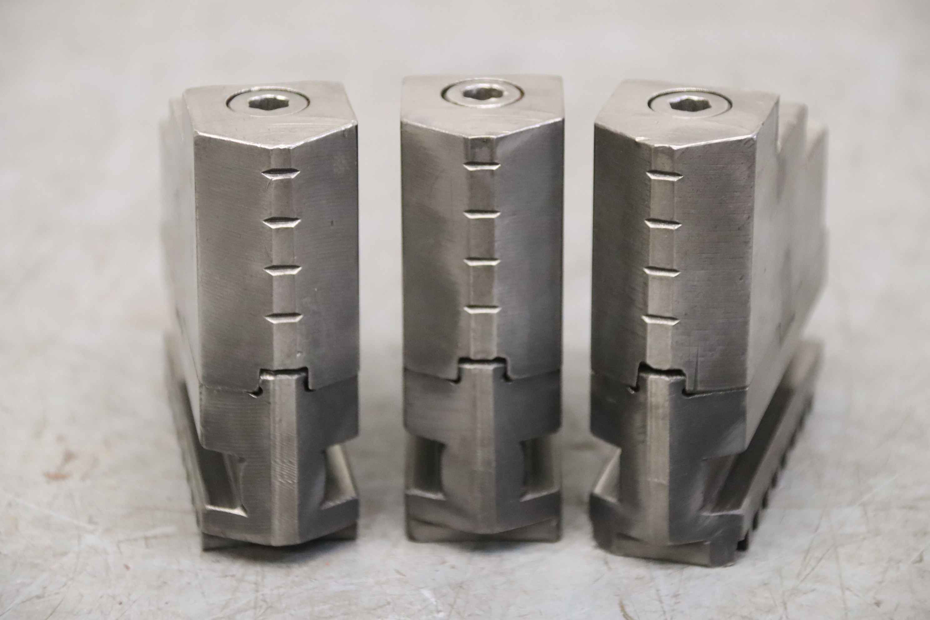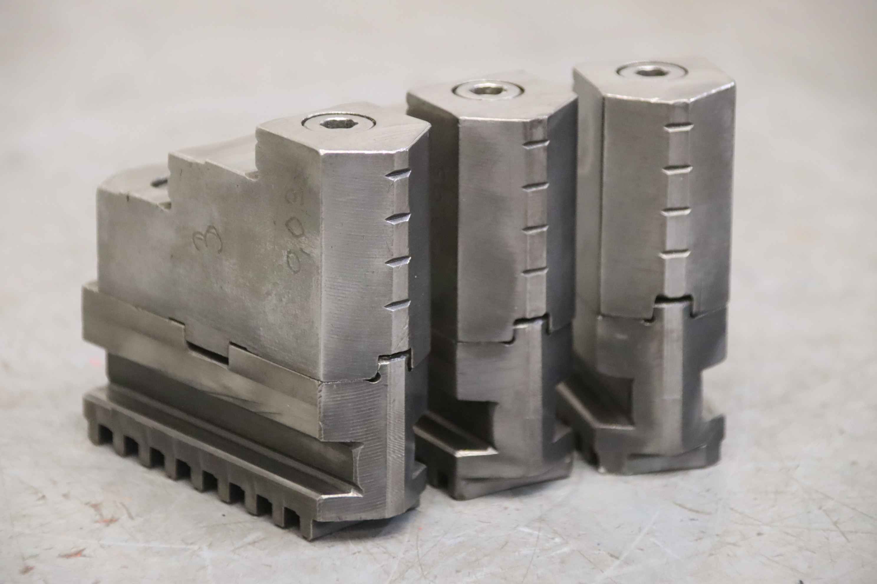 Interchangeable jaws, top jaws, three-jaw chucks, segment jaws, clamping jaws, stepped block jaws, stepped top jaws, block jaws, base jaws -Top jaws: Jaw set for three-jaw lathe chuck, hard -Jaw width: 26 mm -Dimensions: see photo technical drawing -Number: 1 set of interchangeable jaws available -Dimensions total: 78/78/H75 mm -Total weight: 2.5 kg/set