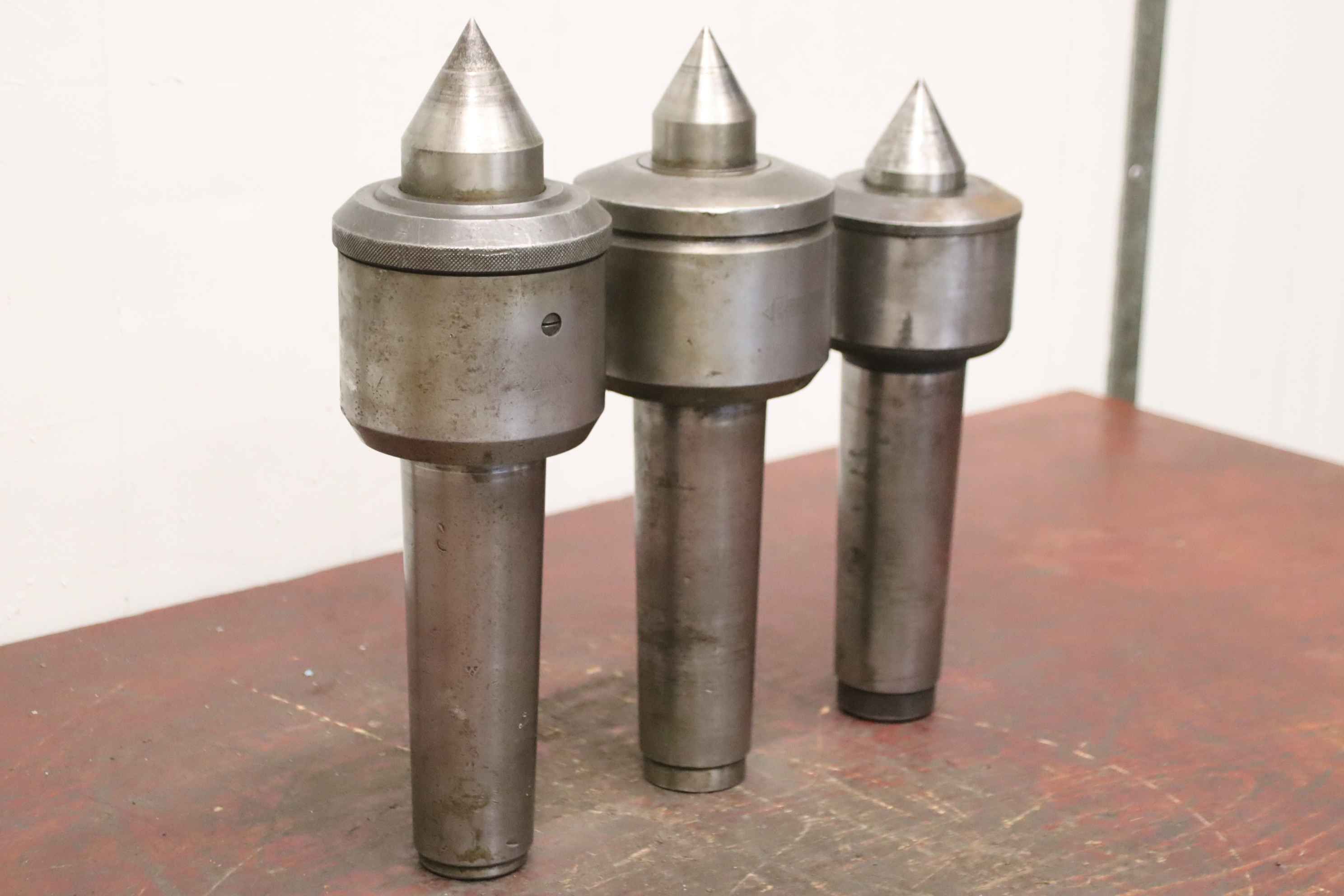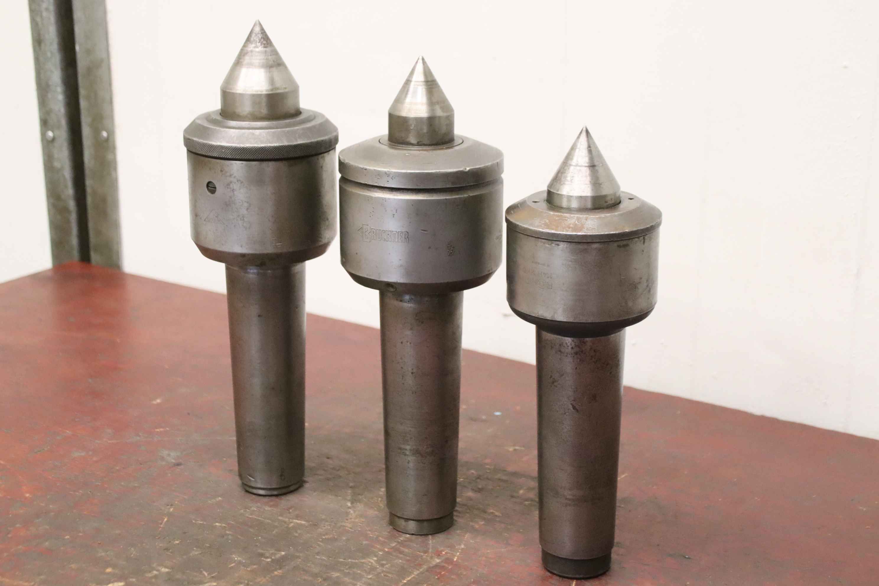 live center, live center, live morse taper, live center, live lathe center, live center, centering cone-Manufacturer: Haack / Bruckner / Röhm, rotating centering points 3 pieces-Type: Röhm 114H MK6 / 2x without type designation-Recording: MK6-Price/Delivery: complete-Transport dimensions: 390/360/H120 mm-Total weight: 33.1 kg