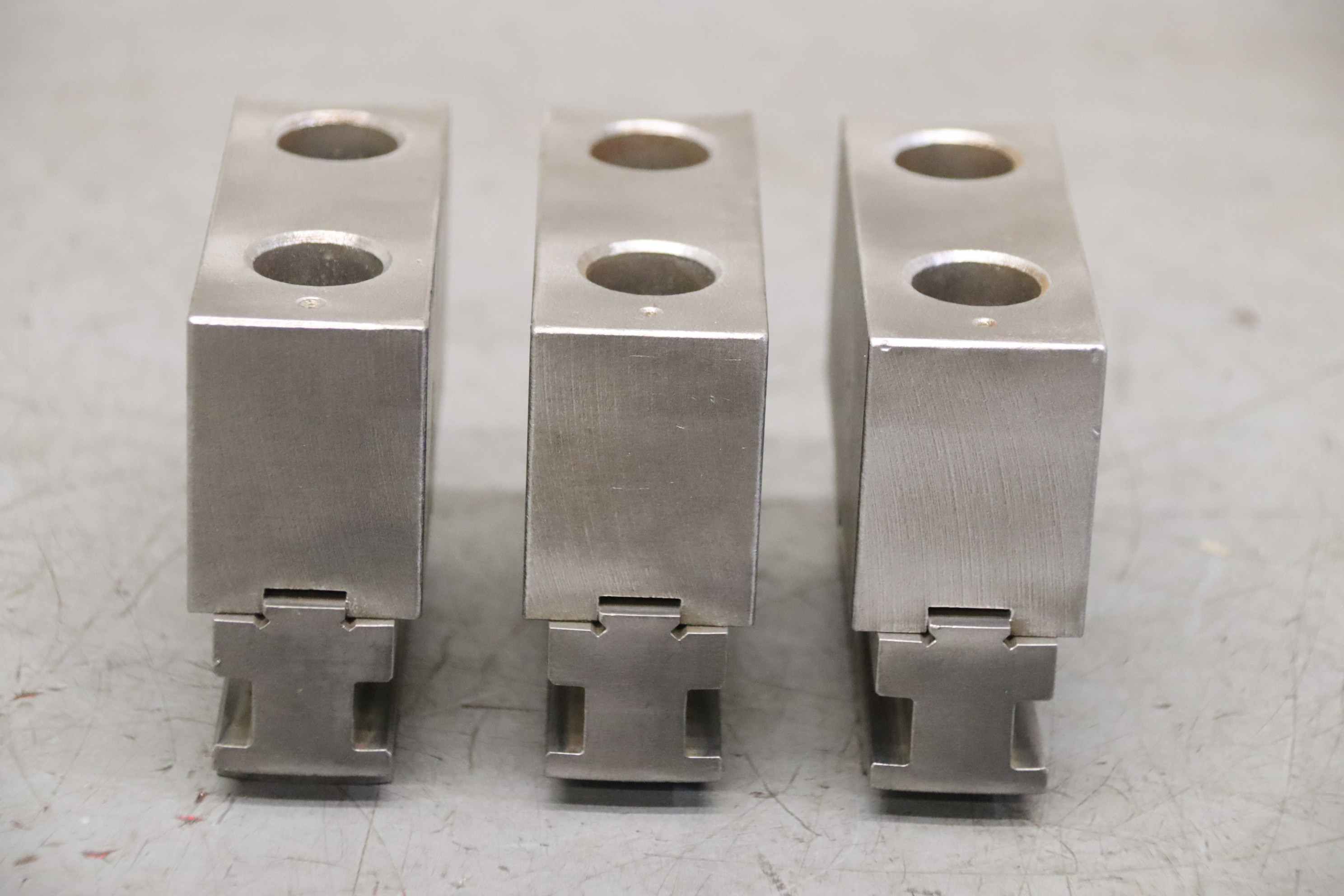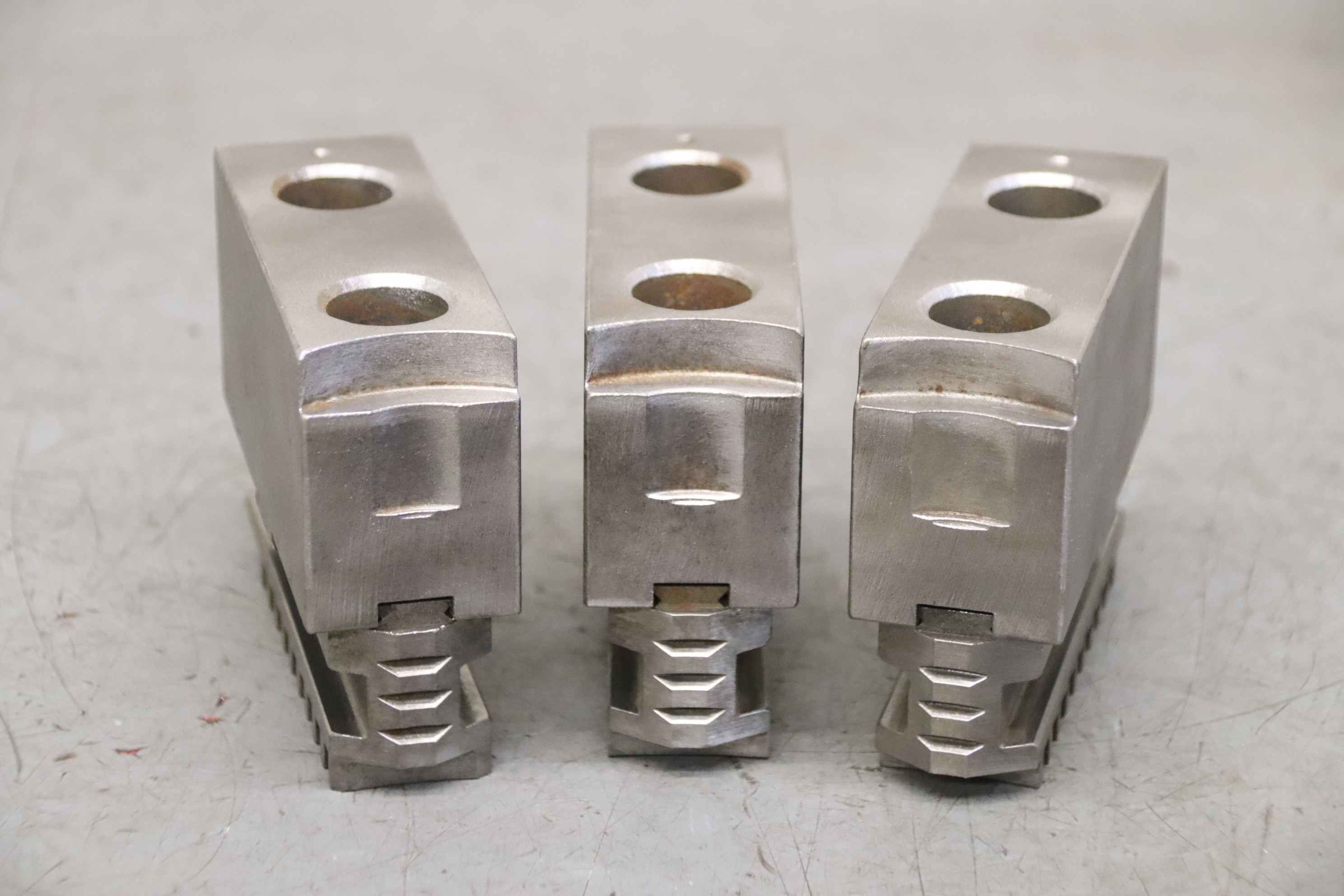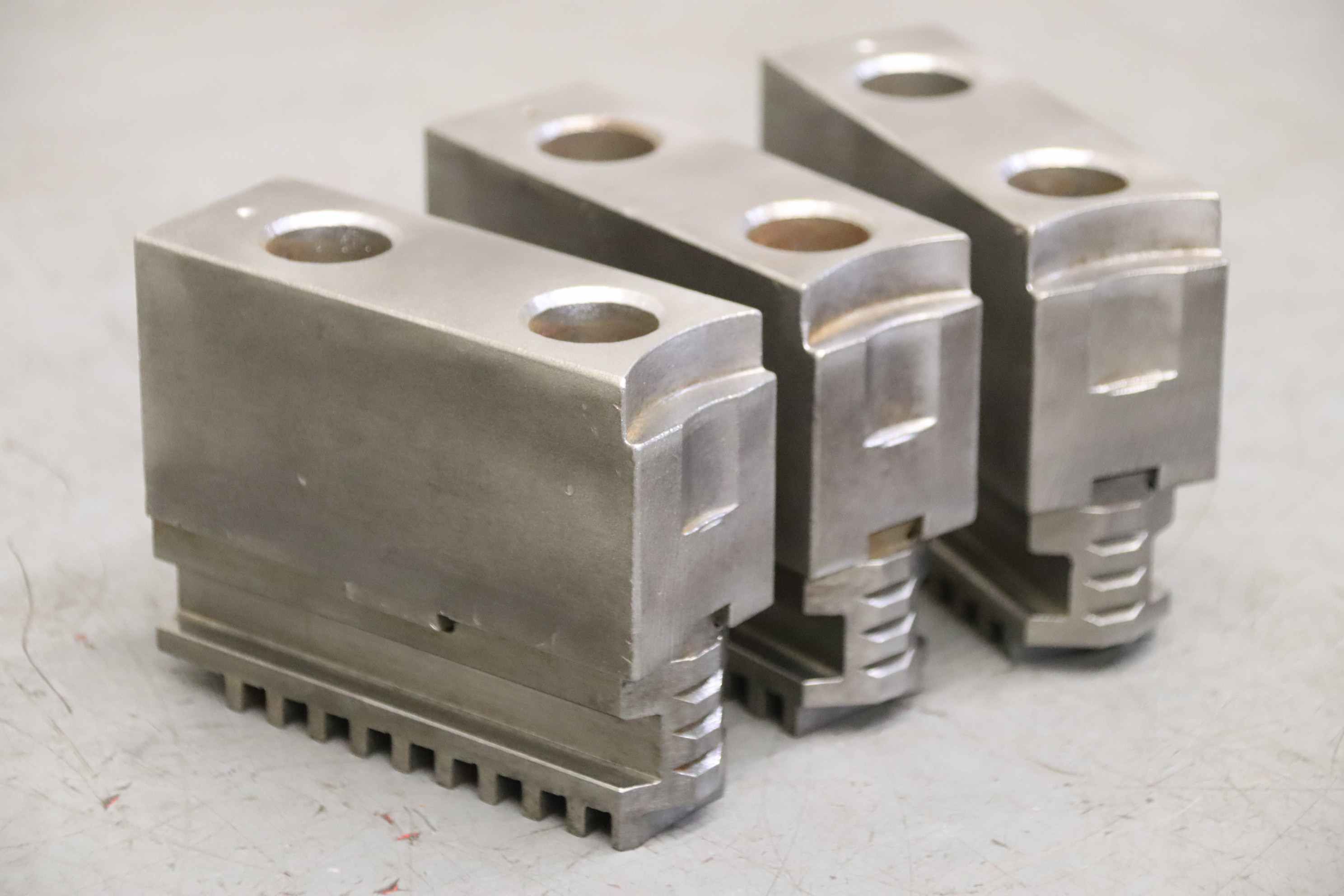 Interchangeable jaws, top jaws, three-jaw chucks, segment jaws, clamping jaws, step block jaws, step top jaws, block jaws, base jaws-Top jaws: Jaw set for three-jaw lathe chucks, soft-Jaw width: 28 mm-Dimensions: see photo technical. drawing-Total dimensions: 104/110/H83 mm-Total weight: 5.2 kg