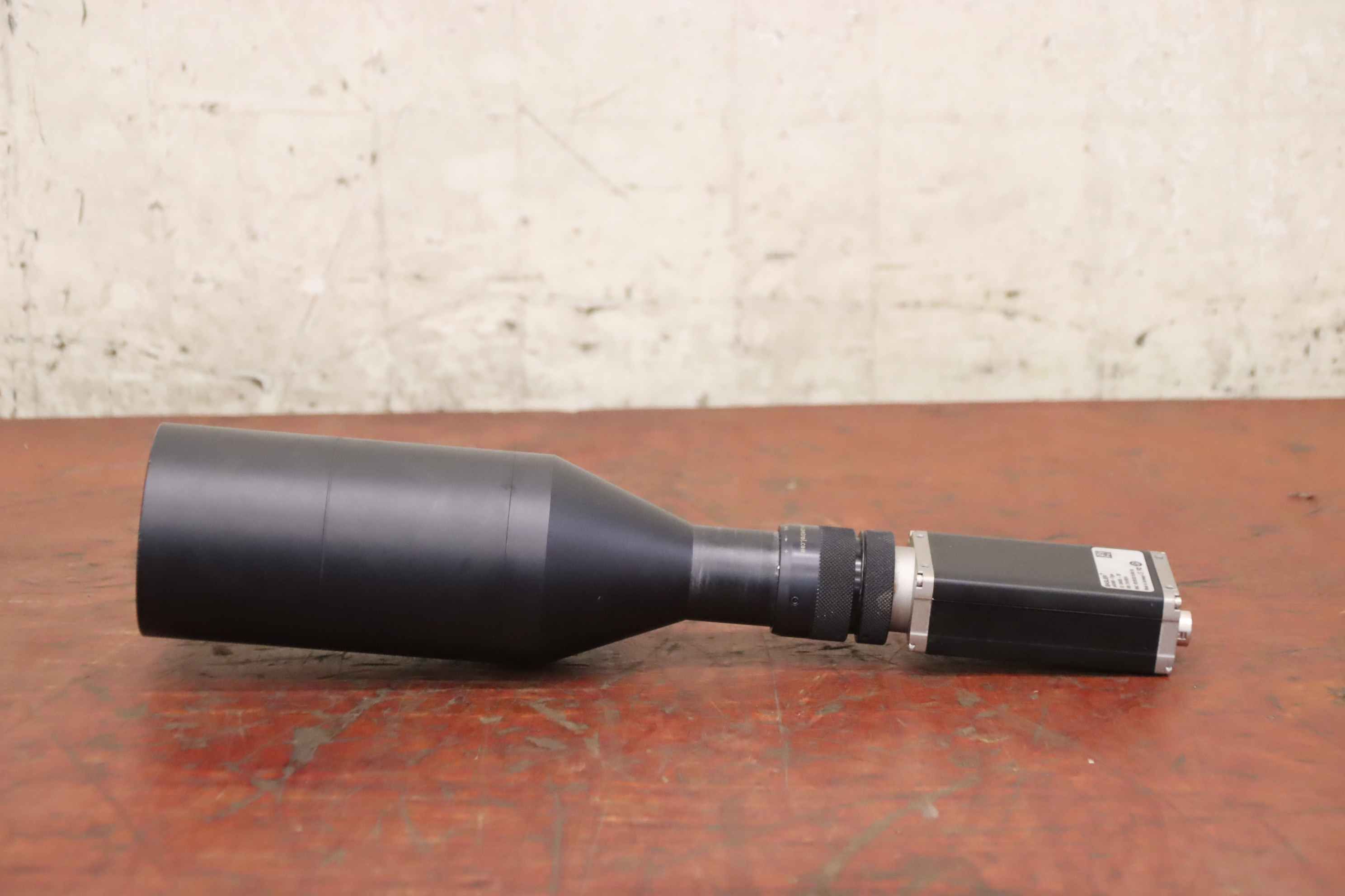 Telecentric lighting, LED lighting, Telecentric lens, Measuring lens, Industrial camera-Manufacturer: Basler Vision Control, industrial camera with telecentric lens-Camera: Basler Type piA2400-17gm-Lens: type vicotar T201/0.15-Total dimensions: Ø 70 x 345 mm-Weight: 1.2 kg