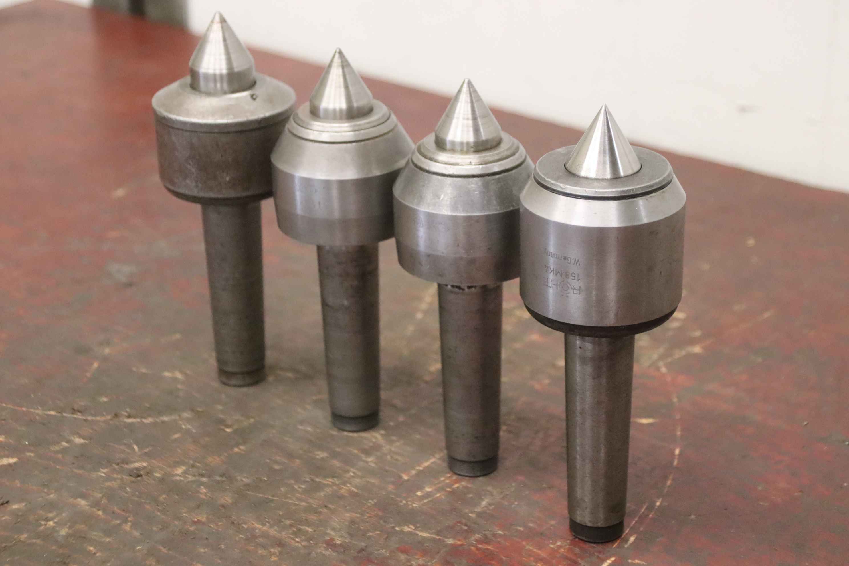 live center, live center, live morse taper, live center, live lathe center, live center, centering cone-Manufacturer: Haack / Bruckner / Röhm, revolving centering points 4 pieces-Type: Röhm 158 MK4 / Bokö Perfekt 4P / 2x without type designation-Recording: MK4-Price/Delivery: complete-Transport dimensions: 230/210/H70 mm-Total weight: 8.2 kg