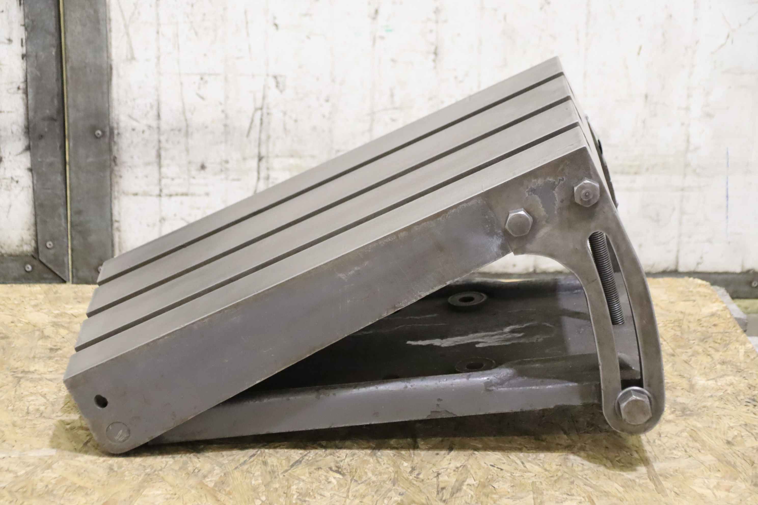 Clamping table, clamping angle, T-slot table, milling machine table for shaping machine, shaping machine, high-speed planer, broaching machine, slotting machine, slotting machine, slotting tool, broaching machine, shaping machine, horizontal shaping machine, planing machine, Schepping -T-slot plate: Mounting plate with adjustable angle of inclination -Groove width: 20 mm -Slot spacing: 105 mm -Overall dimensions: 640/400/H360 mm -Weight: 103 kg