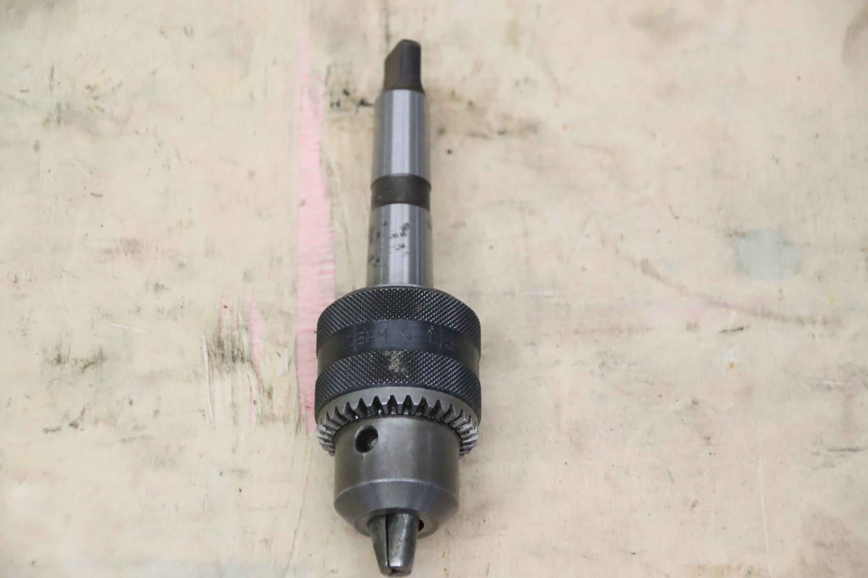 Drill chuck, keyed drill chuck-Manufacturer: Röhm, drill chuck Gear ring drill chuck MK2-Type: S 1.5-13 1/16-1/2 J2 S2-Clamping range: 1.5-13 mm 1/16-1/2-Dimension: Ø 44 x 150 mm-Weight: 0.5 kg