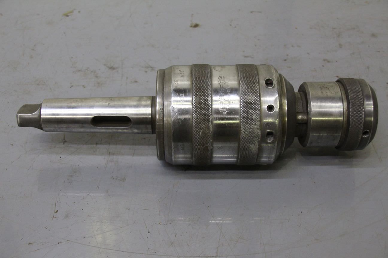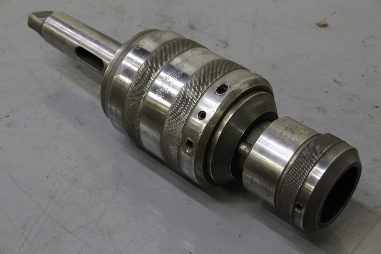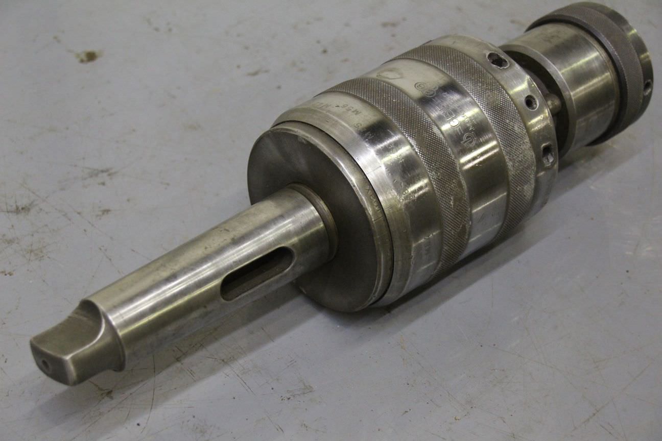 Thread cutting chuck, thread chuck, tap chuck -Handover in its current condition as inspected -Thread cutting chuck without collets -with slip clutch -Cutting capacity: M24-M64 -Recording: MK5 -Quantity: 1x threading chuck available -Weight: 13 kg
